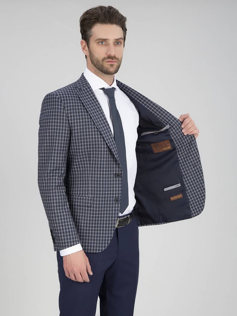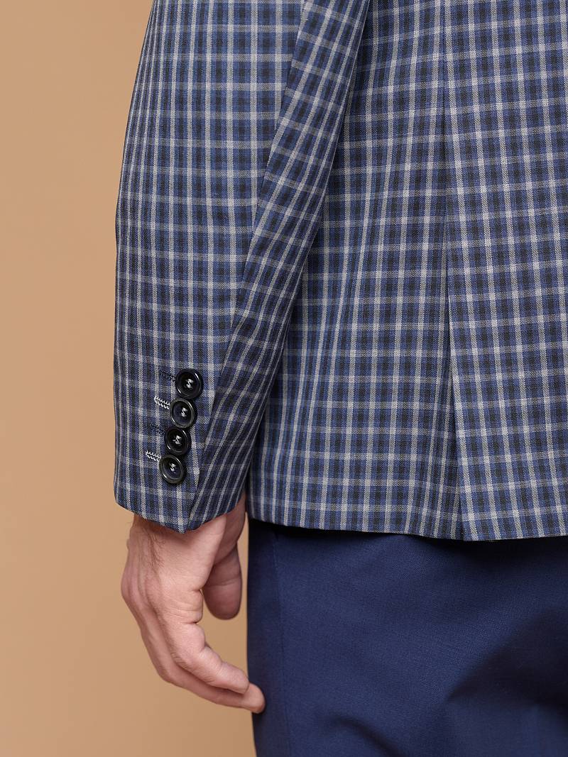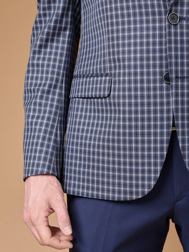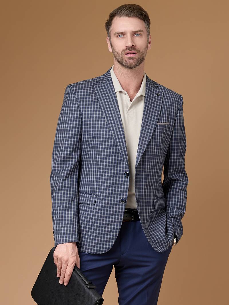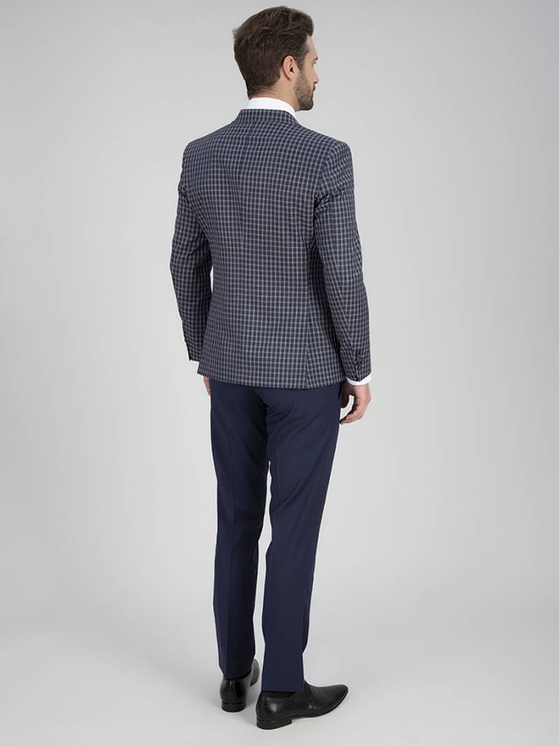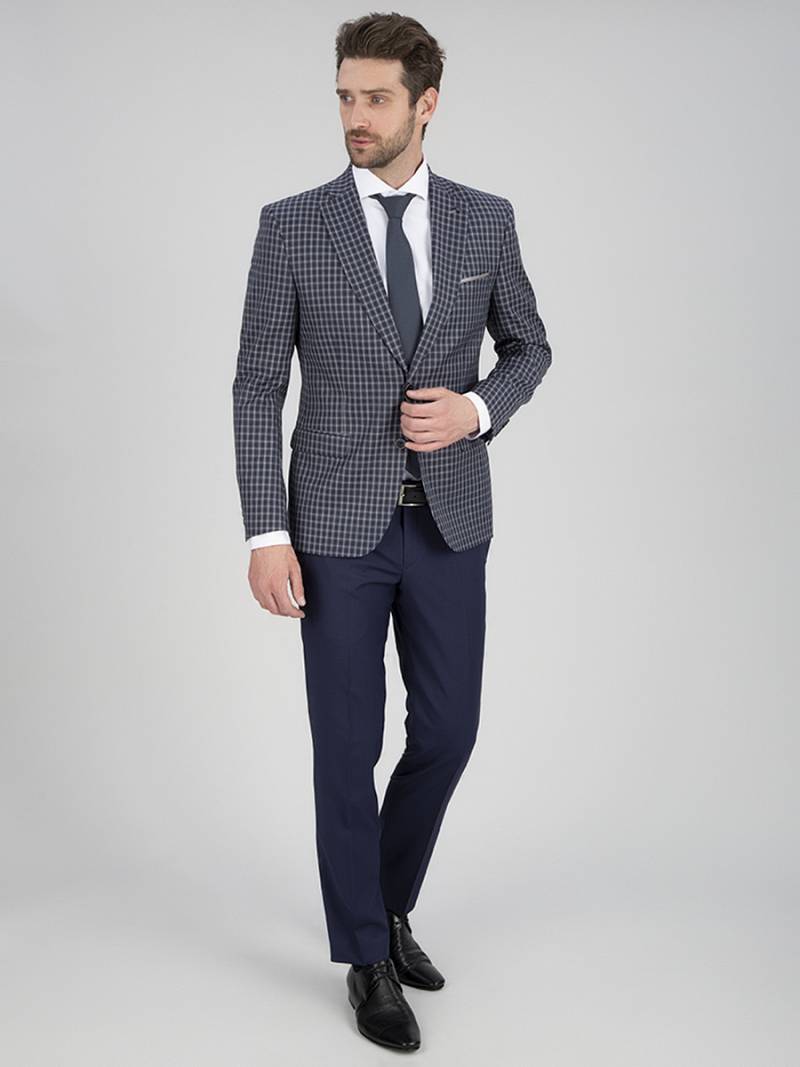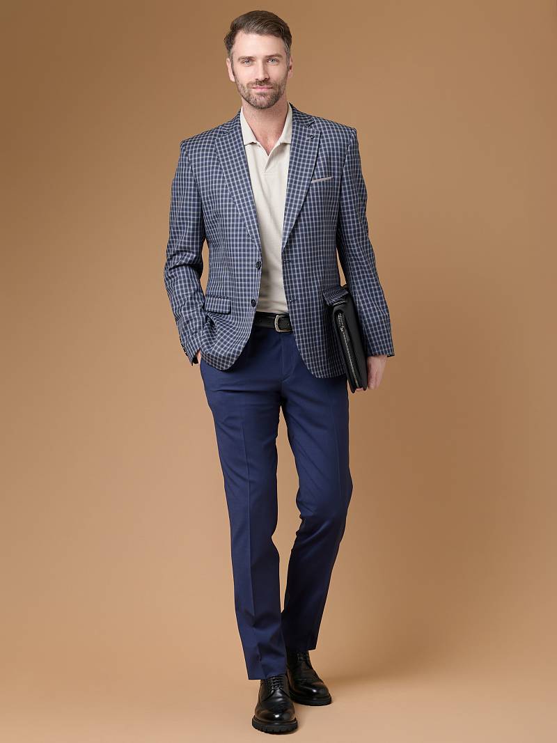 Классический костюм двойка Slim fit. Пиджак на две пуговицы, с боковыми и нагрудным карманами, по спинке две шлицы. Брюки без защипов с боковыми и двумя задними карманами, выполнены из ткани компаньона.