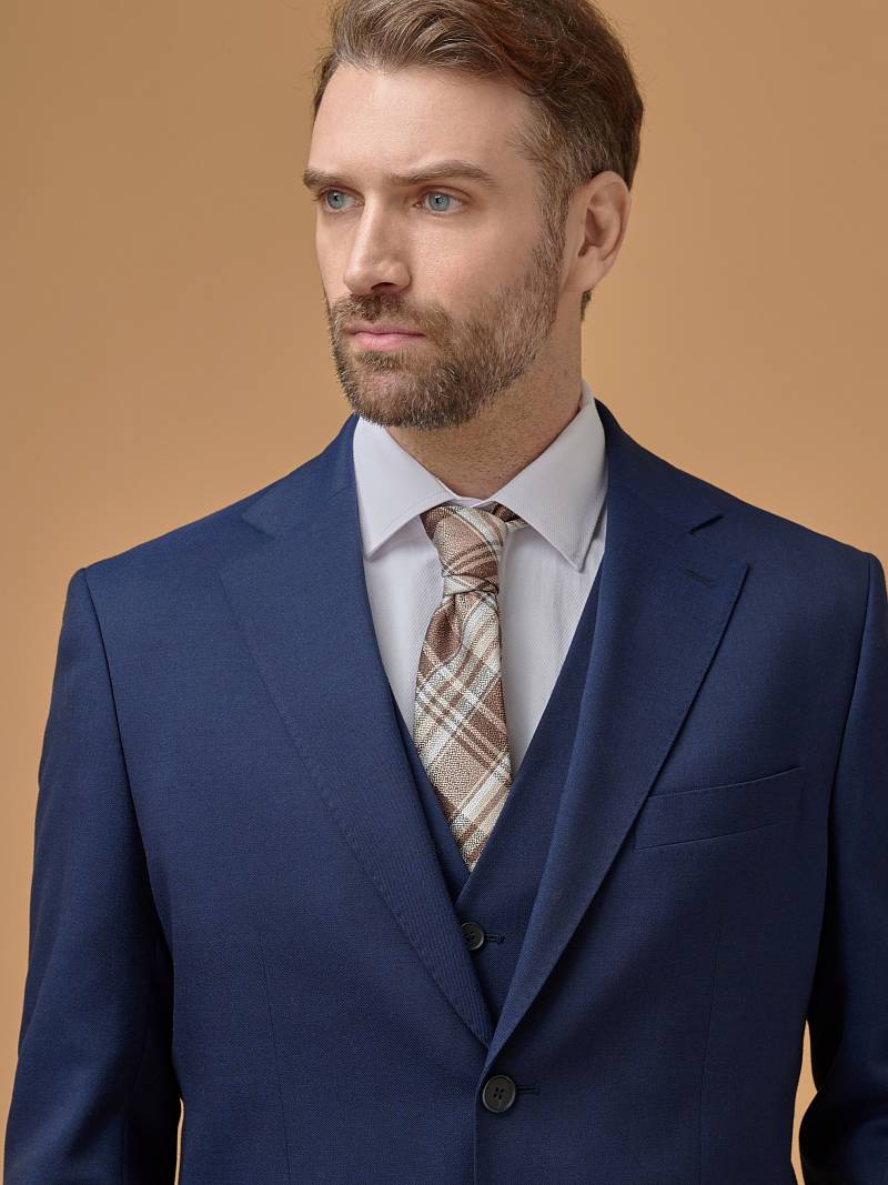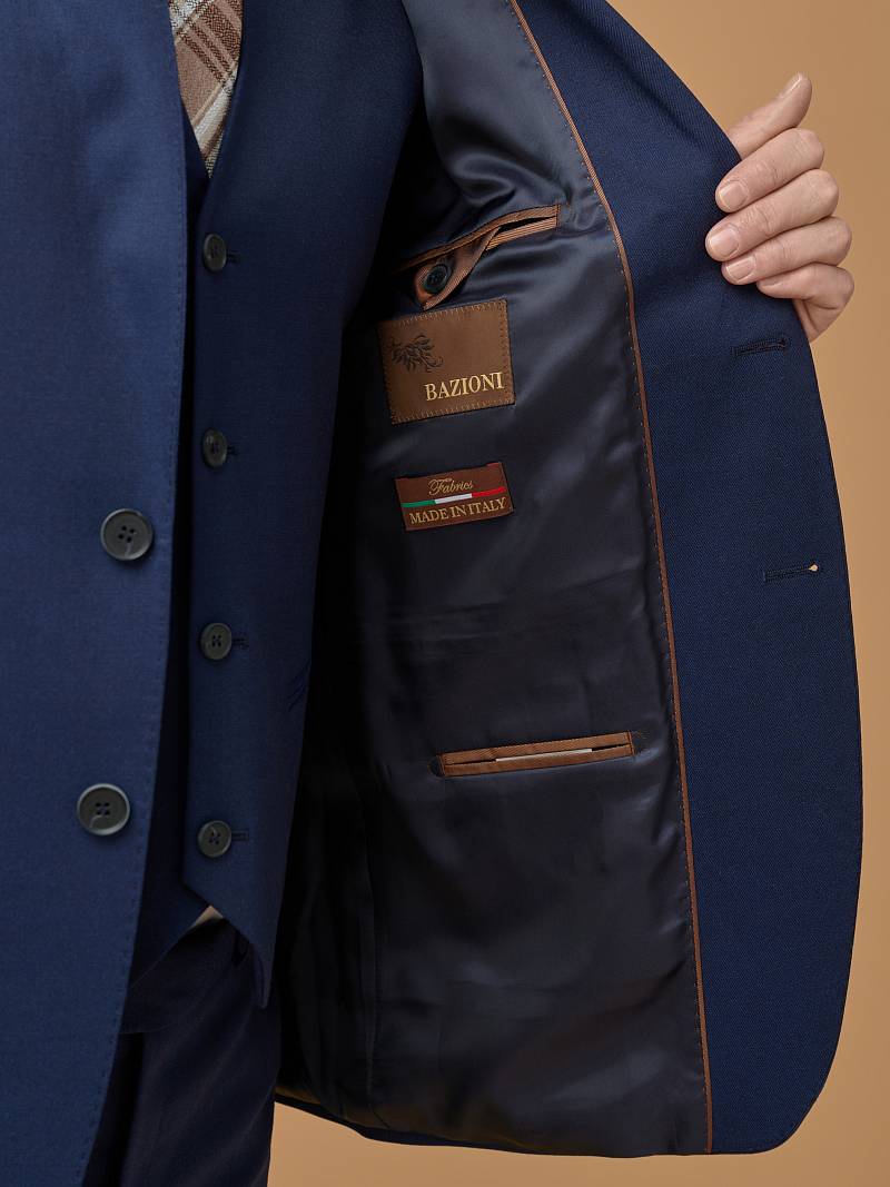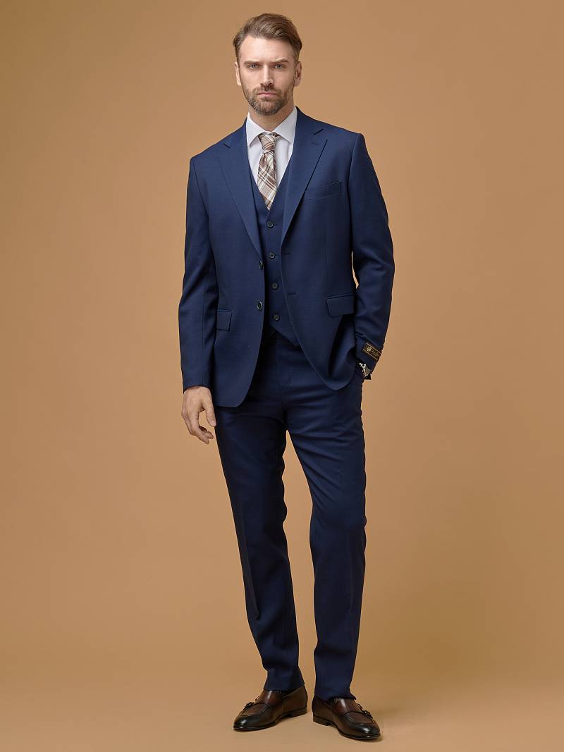 Классический костюм тройка марки BAZIONI позволит составлять офисные образы разной степени формальности, выводя строгость на максимум с помощью жилета. Однобортный пиджак на двух пуговицах, с двумя боковыми карманами с клапаном и нагрудной листочкой, обработан пиджак шелковой подкладкой с двумя внутренними карманами. Расположенные по спинке две шлицы обеспечивают свободу движения. Для придания образу торжественности подкладку нагрудного кармана можно использовать как платок-паше. Брюки прямого кроя со стрелками и заниженной посадкой, с боковыми наклонными карманами и двумя задними карманами "в рамку".. Верхний срез брюк обработан поясом с корсажной лентой и шлевками под ремень. Жилет с двумя боковыми карманами, по спинке расположен хлястик для регулировки объема в области талии. Дизайнеры марки BAZIONI тщательно подходят к выбору материалов. Пуговицы подбираются и красятся индивидуально под каждую ткань, а прикладные материалы используют только от передовых производителей. Костюм мужской, тройка, с жилеткой, классический, нарядный, повседневный, молодежный, для работы в офисе, модный, для мужа, сына, брата, на праздник.