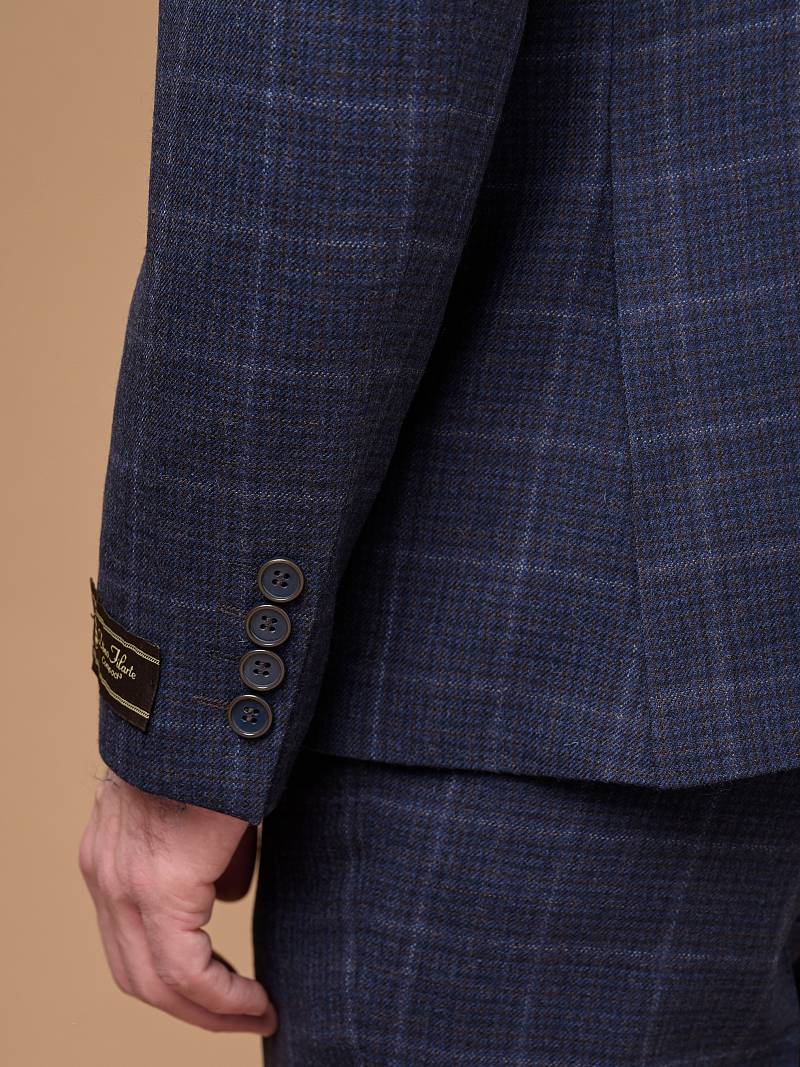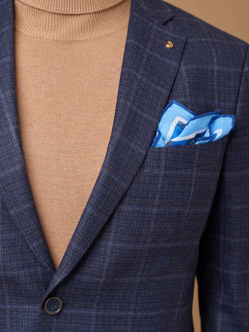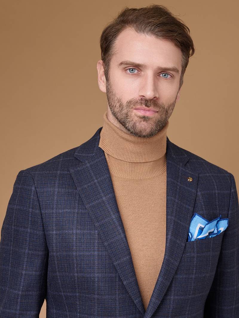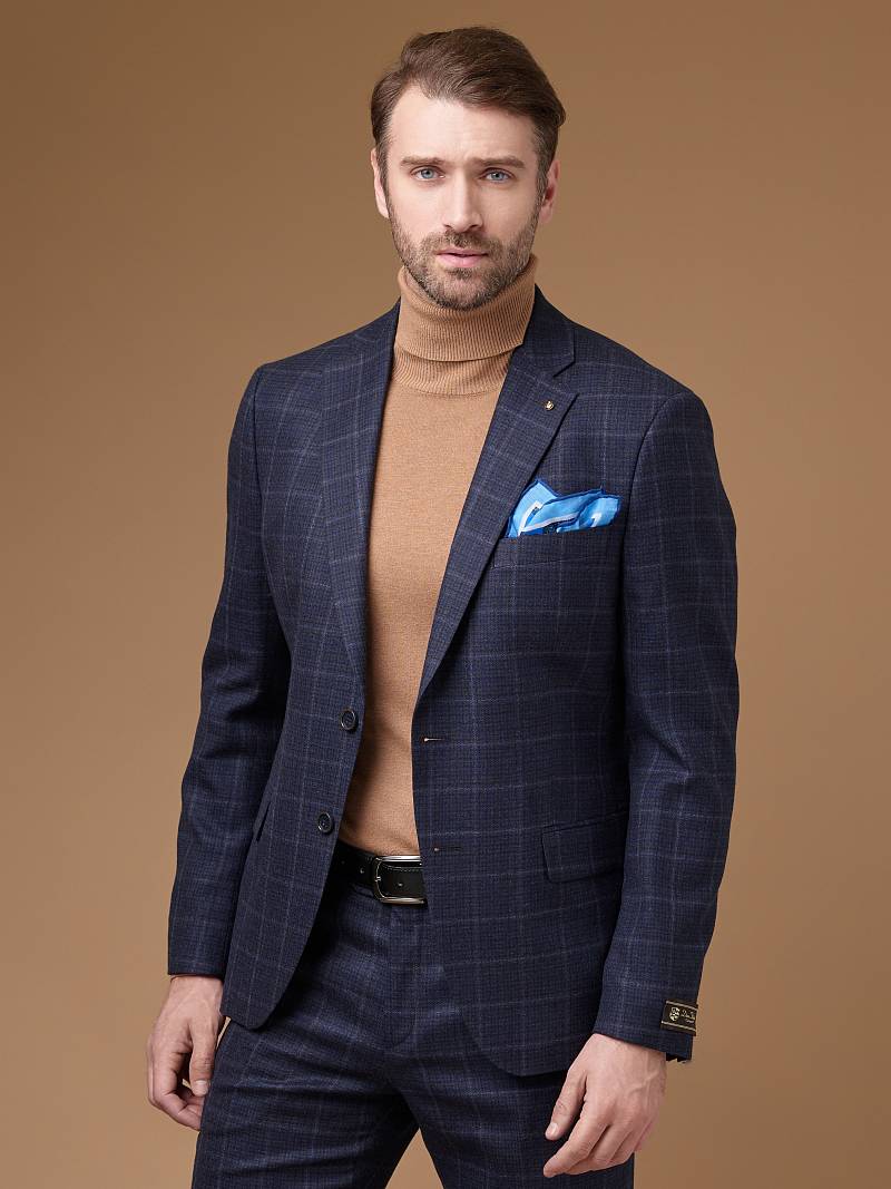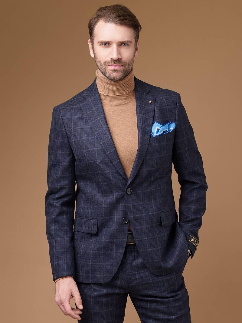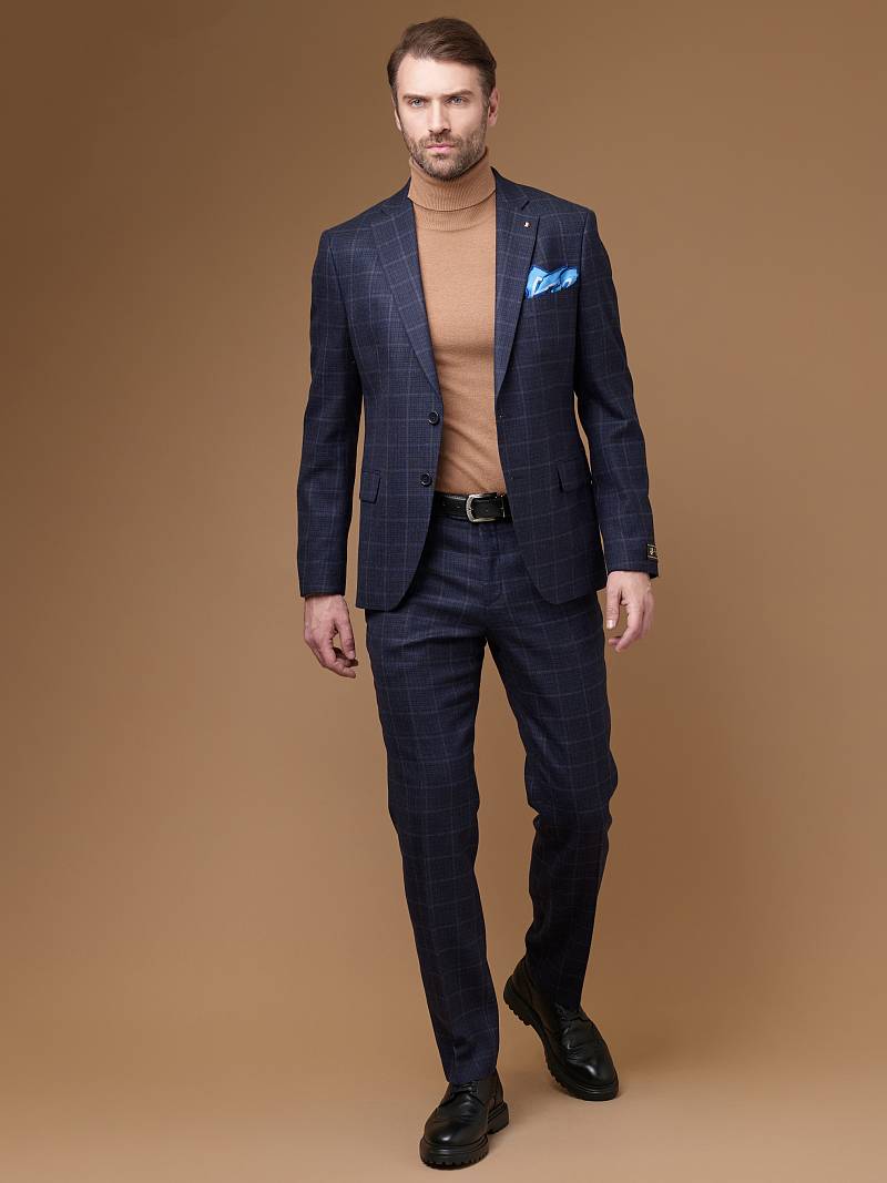 Классический костюм двойка Slim fit (ПРИЛЕГАЮЩИЙ СИЛУЭТ), рекомендуется брать на размер больше. Темно-синий костюм двойка марки BAZIONI– это идеальное сочетание стиля и комфорта для мужчин. Характер шерстяному костюму делает клетчатый узор, который выглядит выразительным благодаря фактурной ткани. Пиджак с классической шириной лацкана и мягкой линией плеч отлично сядет по фигуре и подойдет для любого случая в жизни. Обработан пиджак шелковой подкладкой с двумя внутренними карманами. Для придания образу торжественности подкладку нагрудного кармана можно использовать как платок-паше. Брюки прямого кроя со стрелками и заниженной посадкой, с боковыми наклонными карманами и двумя задними карманами "в рамку". Верхний срез брюк обработан поясом с корсажной лентой и шлевками под ремень. Дизайнеры марки BAZIONI тщательно подходят к выбору материалов. Пуговицы подбираются и красятся индивидуально под каждую ткань, а прикладные материалы используют только от передовых производителей. Костюм мужской, классический, нарядный, повседневный, молодежный, casual, для работы в офисе, модный, для мужа, сына, брата, на праздник.