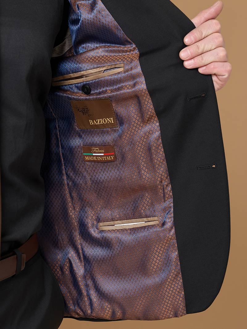 Классический костюм двойка марки BAZIONI– это идеальное сочетание стиля и комфорта для мужчин. Для пошива лаконичного черного, однотонного костюма использовали премиальную шерсть с содержанием прочных волокон лайкры, которые не сковывают движение и обеспечивает дополнительный комфорт и удобство. Пиджак с классической шириной лацкана и мягкой линией плеч отлично сядет по фигуре, а расположенные по спинке две шлицы обеспечат дополнительный комфорт и свободу движения. Для придания образу торжественности подкладку нагрудного кармана можно использовать как платок-паше. Лацканы украсили небольшим значком в виде эмблемы бренда. Обработан пиджак шелковой подкладкой с двумя внутренними карманами. Брюки прямого кроя со стрелками и заниженной посадкой, с боковыми наклонными карманами и двумя задними карманами "в рамку". Верхний срез брюк обработан поясом с корсажной лентой и шлевками под ремень. Дизайнеры марки BAZIONI тщательно подходят к выбору материалов. Пуговицы подбираются и красятся индивидуально под каждую ткань, а прикладные материалы используют только от передовых производителей. Костюм мужской, большие размеры, классический, нарядный, повседневный, молодежный, для работы в офисе, модный, для мужа, сына, брата, на праздник.