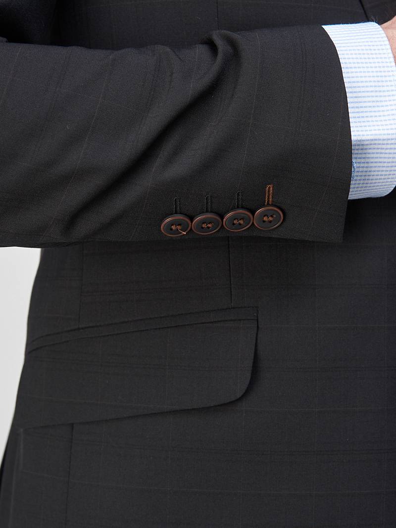 Классический костюм двойка Ultra slim fit. Пиджак на две пуговицы, с боковыми и нагрудным карманами, по спинке две шлицы. Брюки без защипов с боковыми и одним задним карманом.