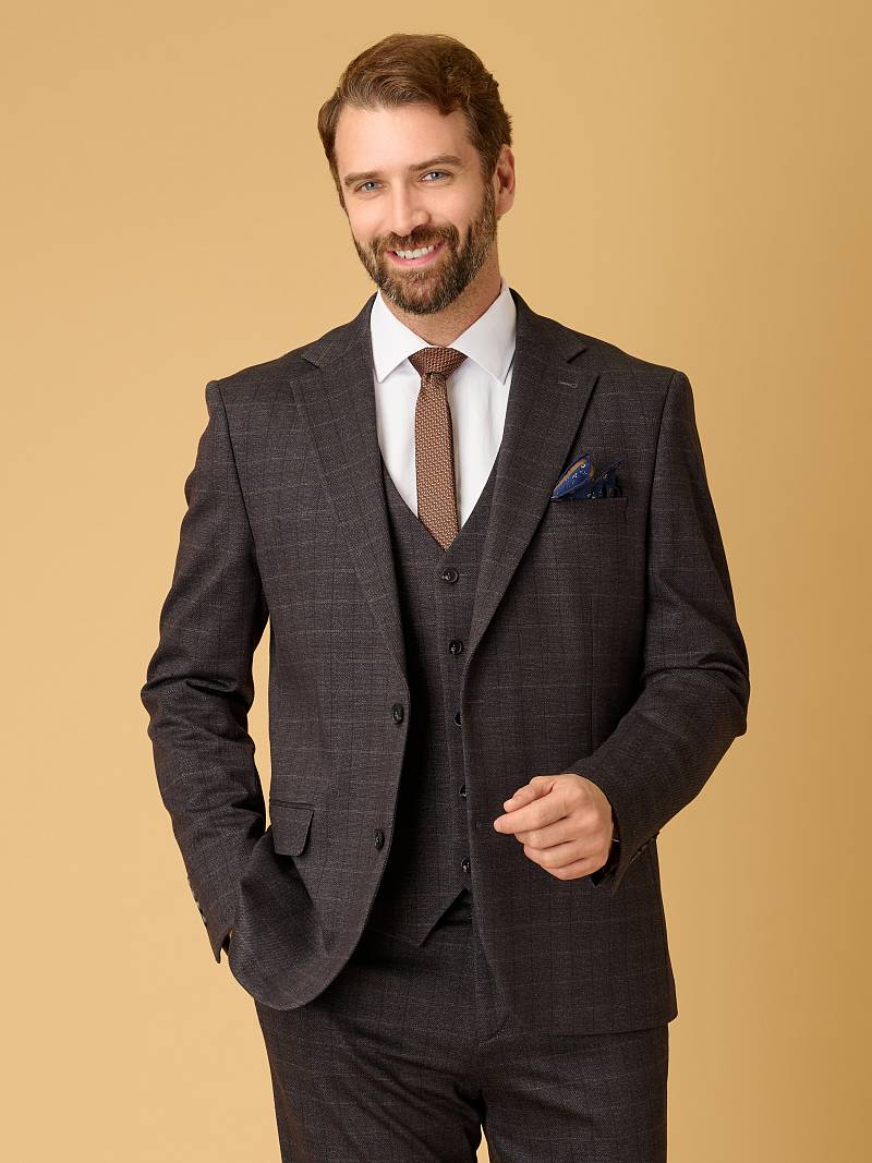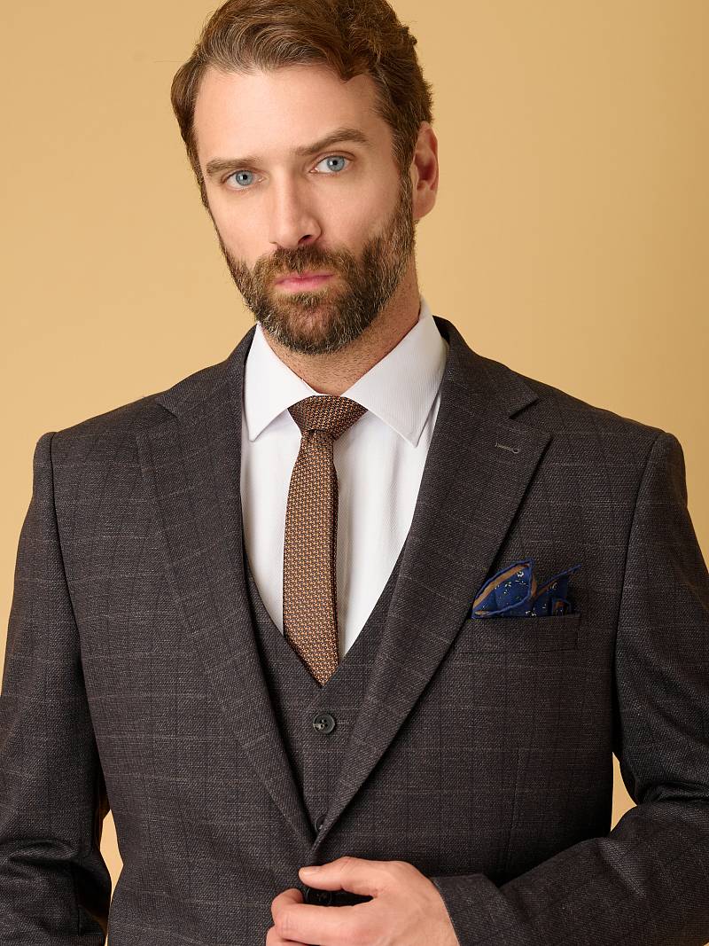 Костюм мужской тройка из трикотажной ткани - неотъемлемая часть делового образа. Костюм тройка мужской классический изготовлен из качественного материала. Включает в себя прямые брюки, пиджак на пуговицах и жилет. За счет того, что силуэт приталенный садится хорошо на любой тип фигуры и визуально делает плечи шире, а также модные зауженные брюки подчеркнут все достоинства фигуры. У пиджака красивая подкладка, пуговицы на рукавах и две шлицы. Жилет однобортный и регулируется хлястиком. Брюки идеально садятся на любой тип фигуры, а колени не вытягиваются за счет подкладки. Деловой стиль одежды, мужская классика подойдет для всех мужчин. Костюмы мужские классические идеальны в подарок любимому мужу, другу или папе на день рождения, юбилей или свадьбу. Костюм брючный 3 в 1 является универсальным предметом гардероба и подходит как повседневный для мужчин на работу в офис, как школьный для мальчика школьника в школу, как молодежный для подростков в институт, а также на выпускной и последний звонок. Стильный и неповторимый костюм мужской тройка создаст незабываемый образ. Он станет вашим верным спутником в любой ситуации, добавив роскоши и шарма.