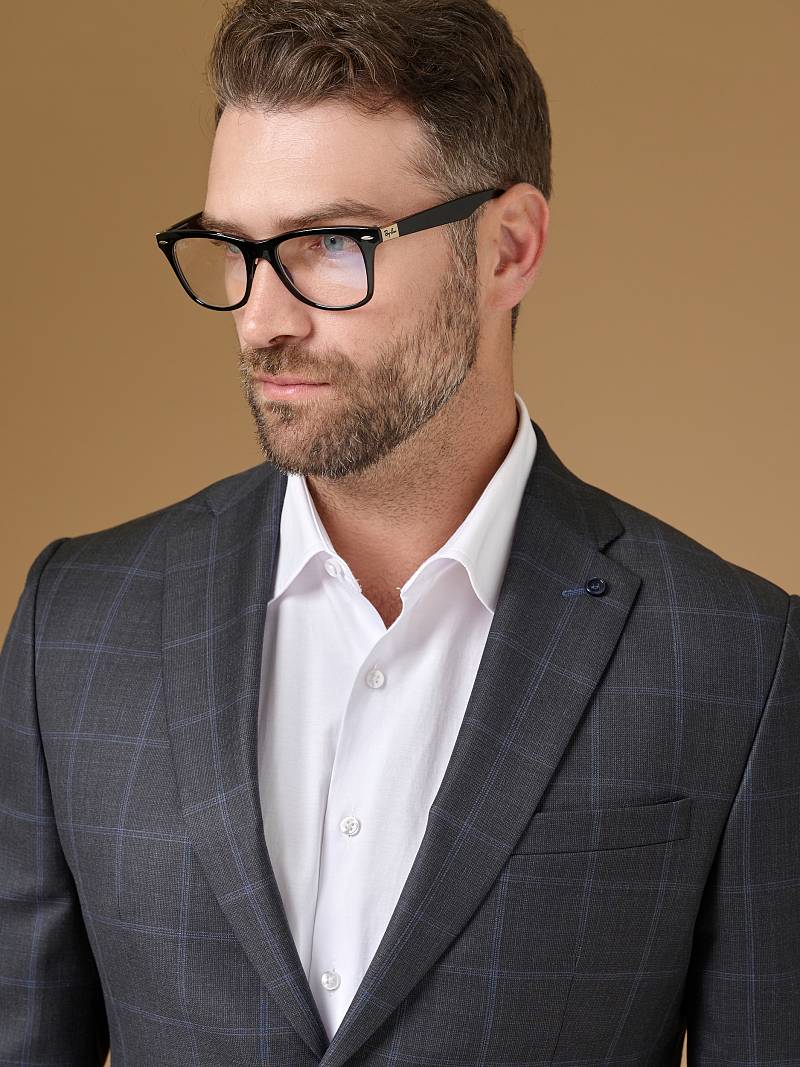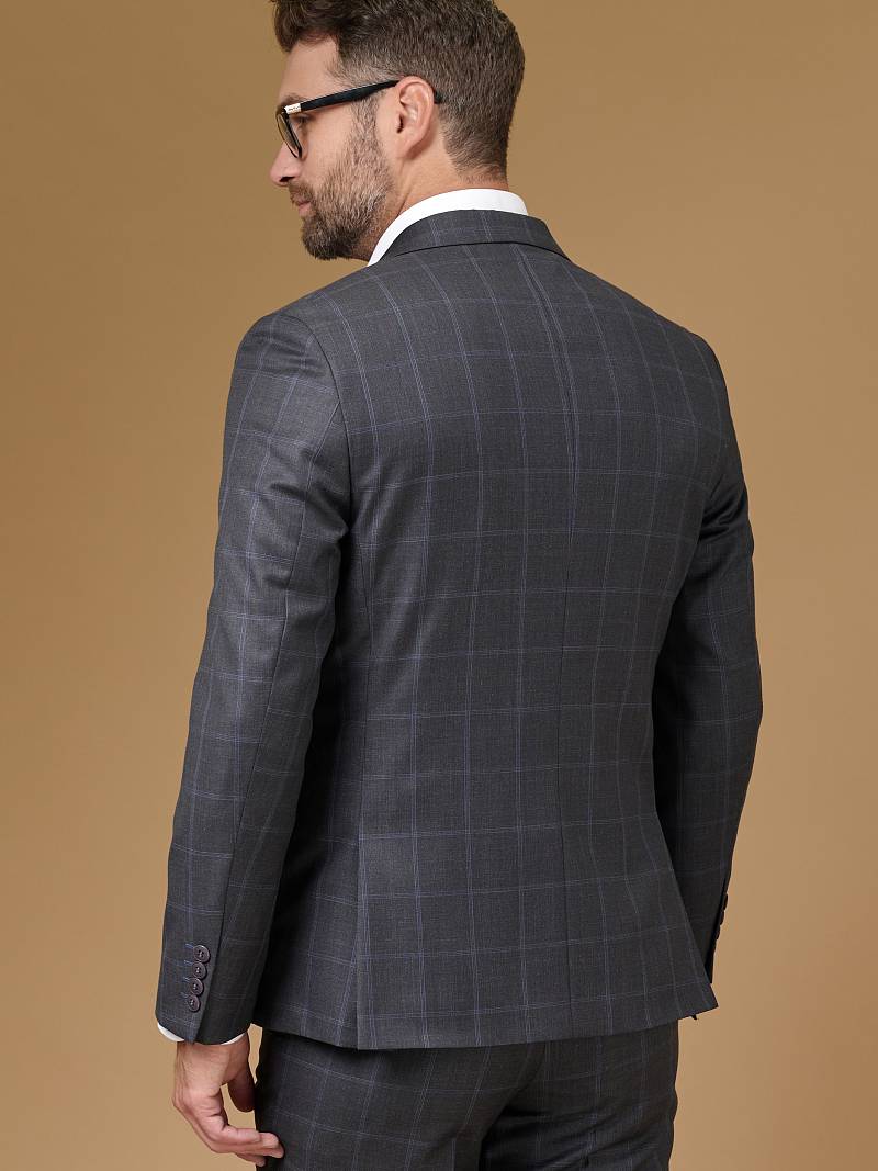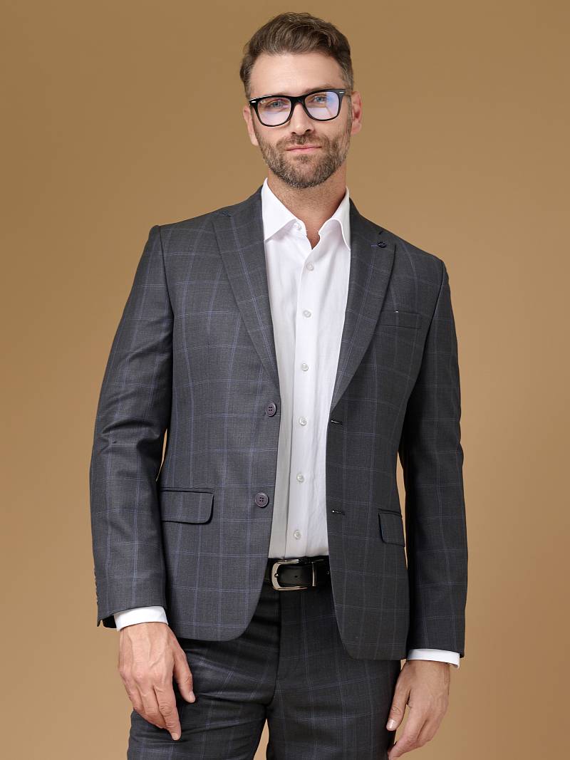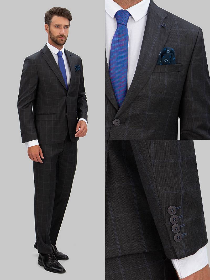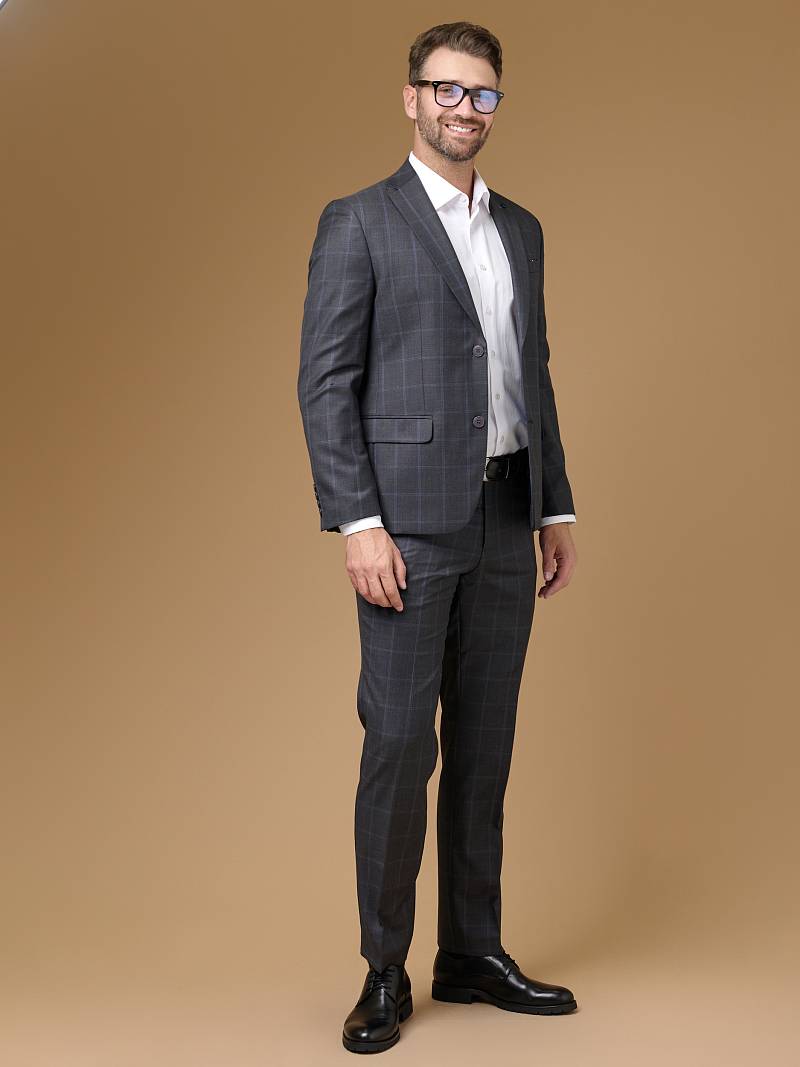 Классический костюм двойка Classic fit . Пиджак на две пуговицы, с боковыми и нагрудным карманами, по спинке две шлицы. Брюки без защипов с боковыми и одним задним карманом.