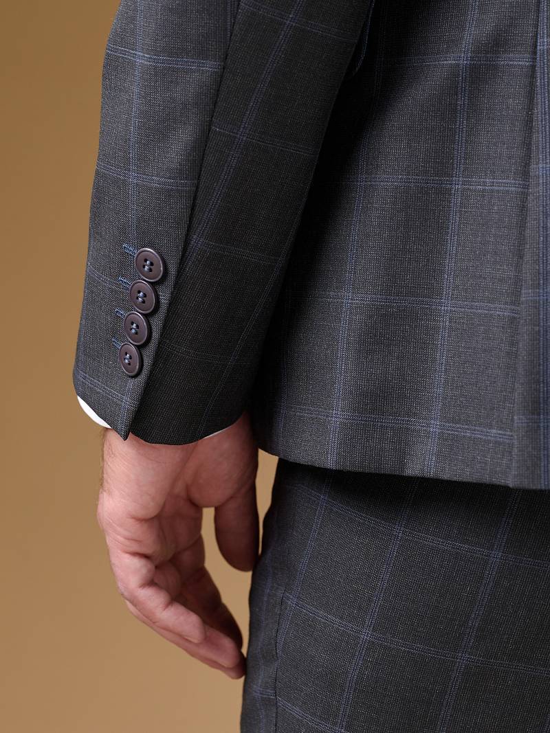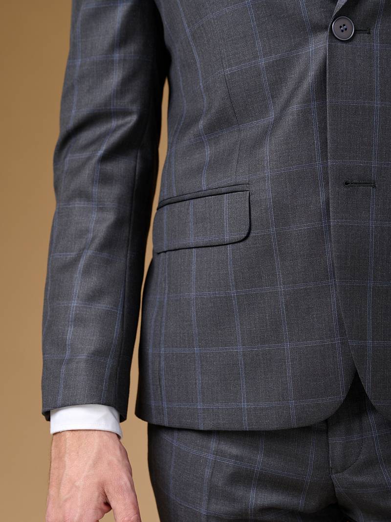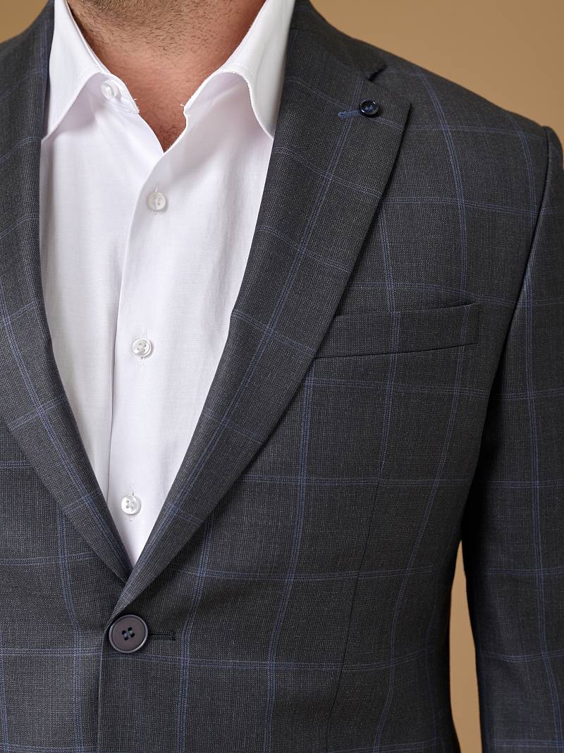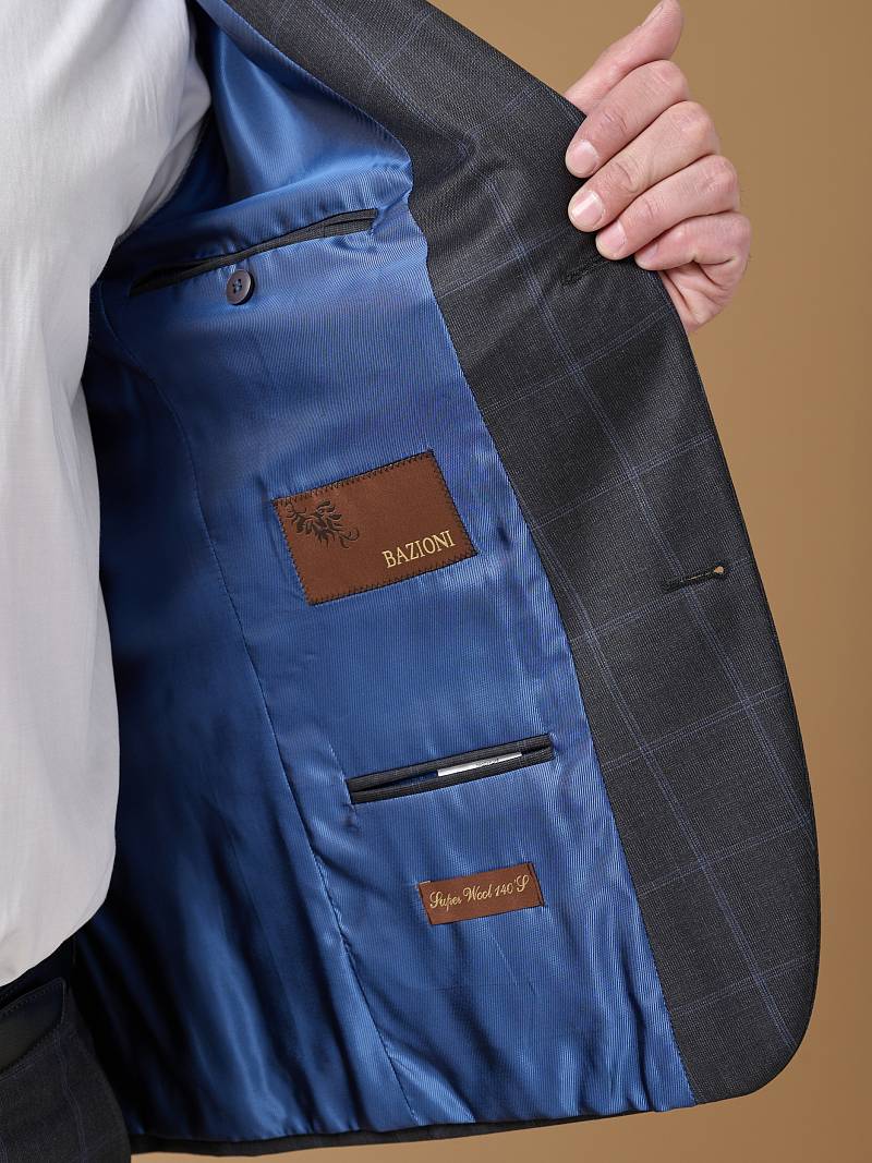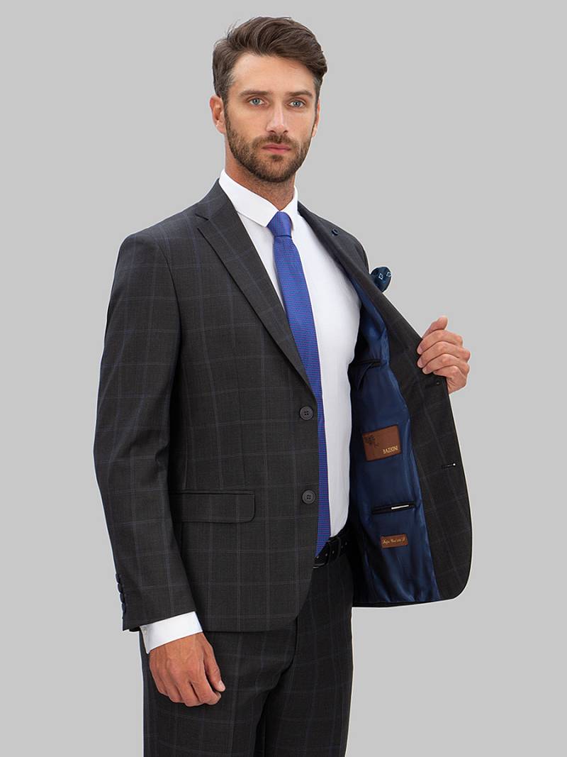 Классический костюм двойка Classic fit . Пиджак на две пуговицы, с боковыми и нагрудным карманами, по спинке две шлицы. Брюки без защипов с боковыми и одним задним карманом.