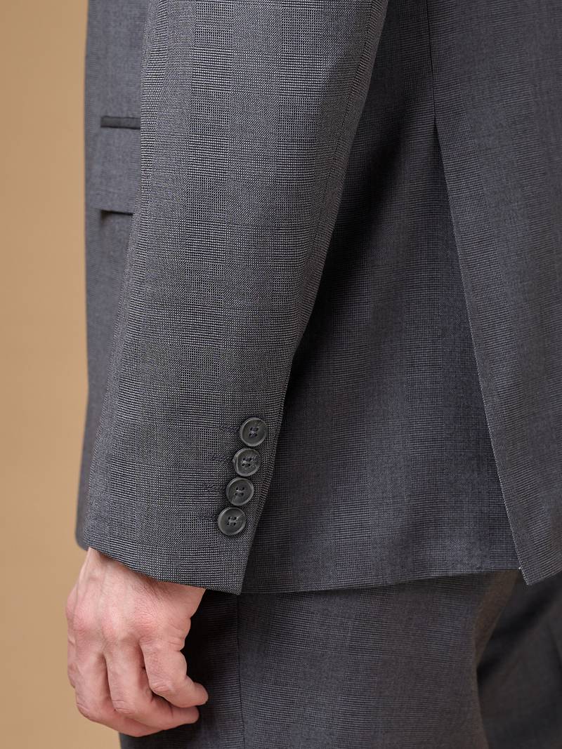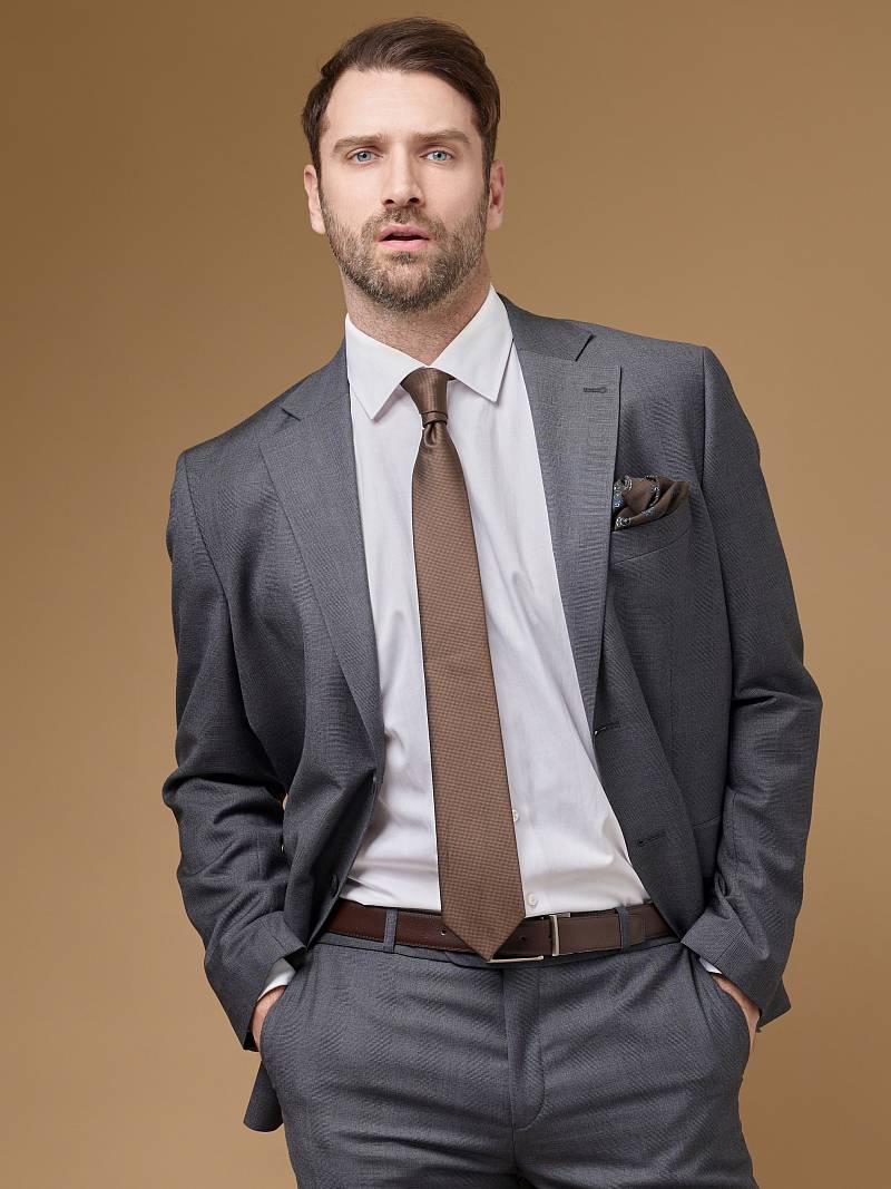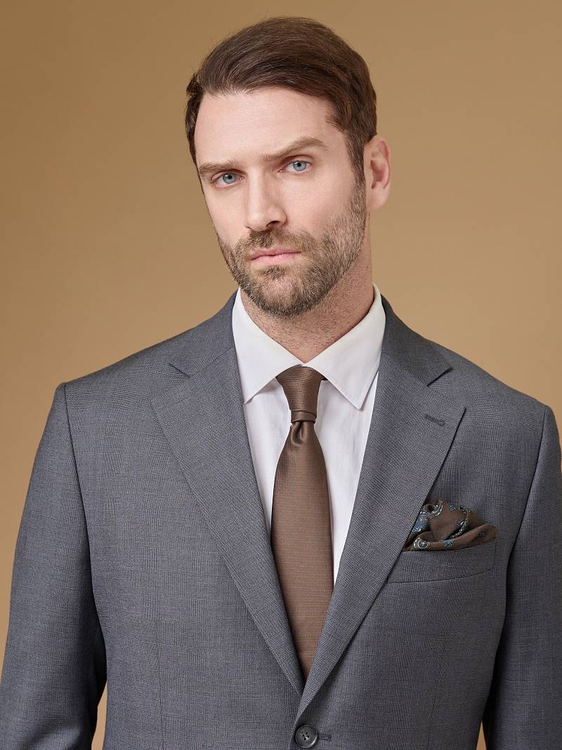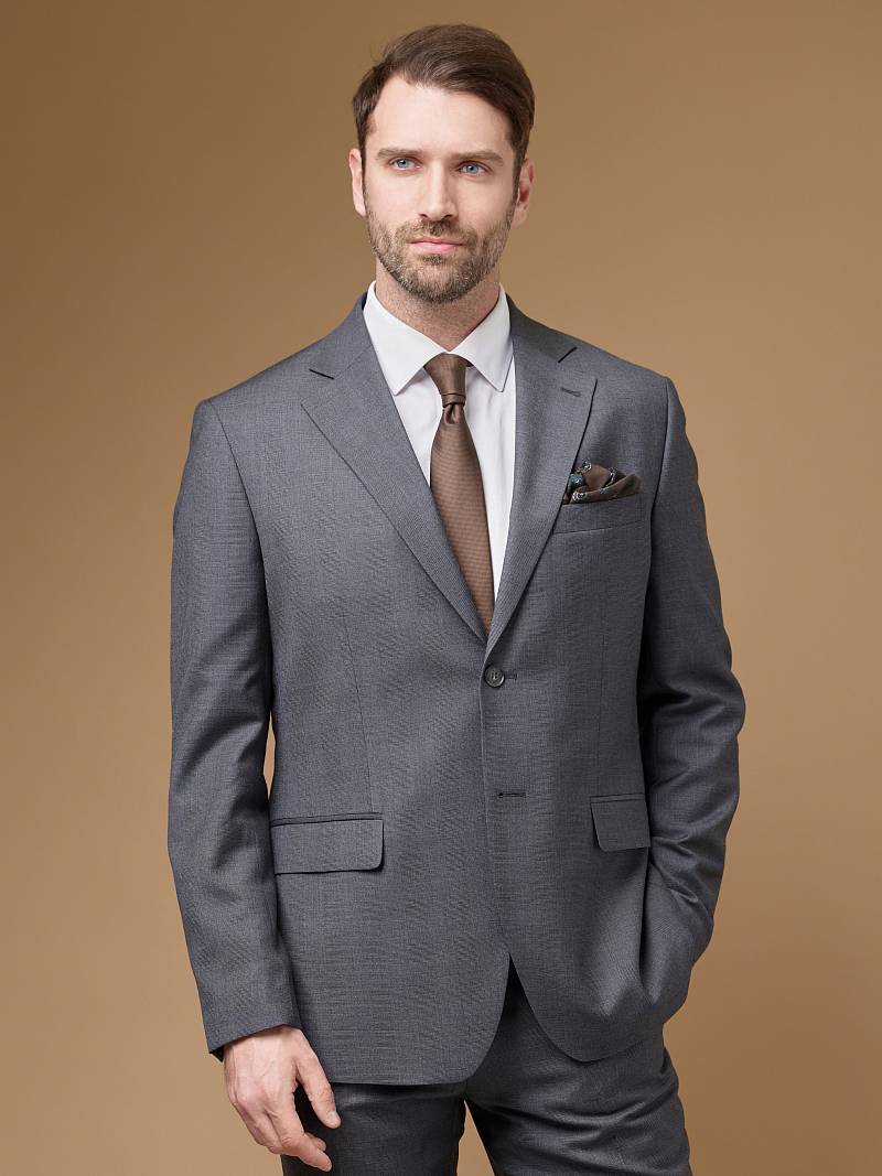 Classic fit (ПОЛУПРИЛЕГАЮЩИЙ СИЛУЭТ). Универсальный костюм двойка марки LACONI– это идеальный баланс между внешним видом и комфортом. Слегка приталенная однобортная модель на две пуговицы сшита из ткани спокойного серого цвета и ненавязчивой клетки. Пиджак с широкими лацканами и мягкой линией плеч дополнили сзади двумя шлицами, поэтому он садится точно по фигуре. Внутри пиджак обработан на подкладке с двумя внутренними карманами. Для придания образу торжественности подкладку нагрудного кармана можно использовать как платок. Брюки прямого кроя со стрелками и классической посадкой, с боковыми наклонными карманами и одним задним карманом "в рамку". Верхний срез брюк обработан поясом с корсажной лентой и шлевками под ремень. Дизайнеры марки LACONI тщательно подходят к выбору материалов. Пуговицы подбираются и красятся индивидуально под каждую ткань, а прикладные материалы используют только от передовых производителей.