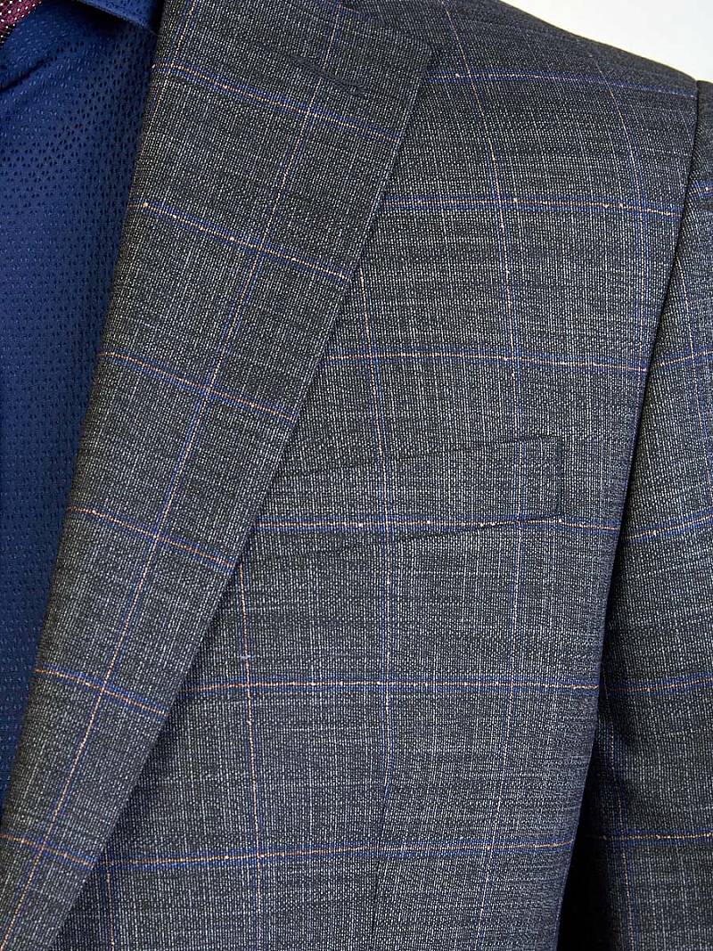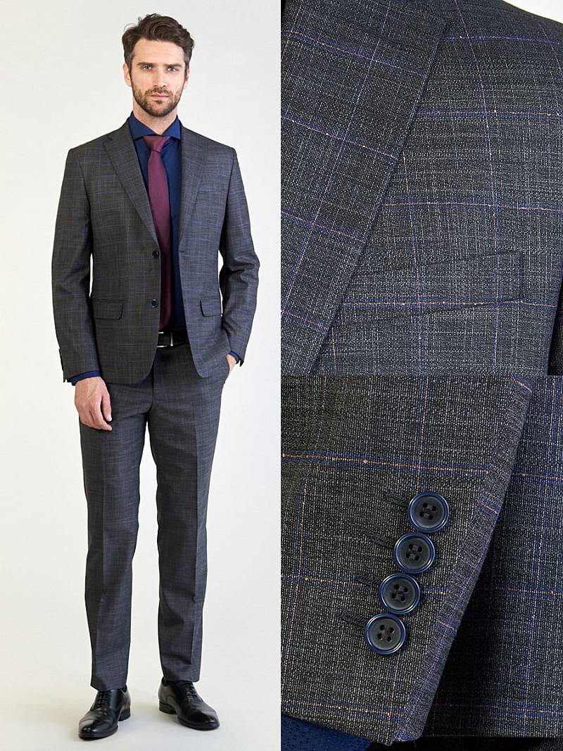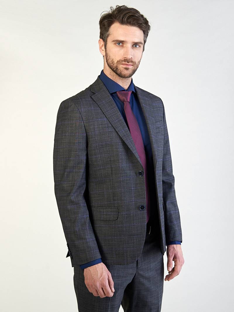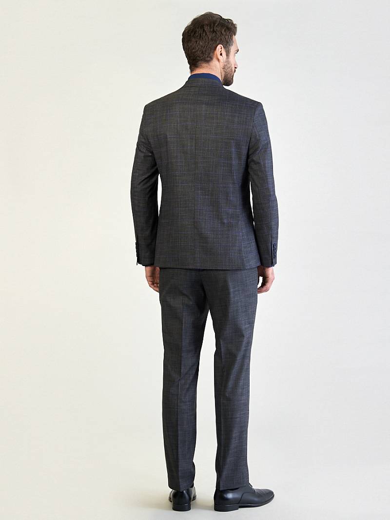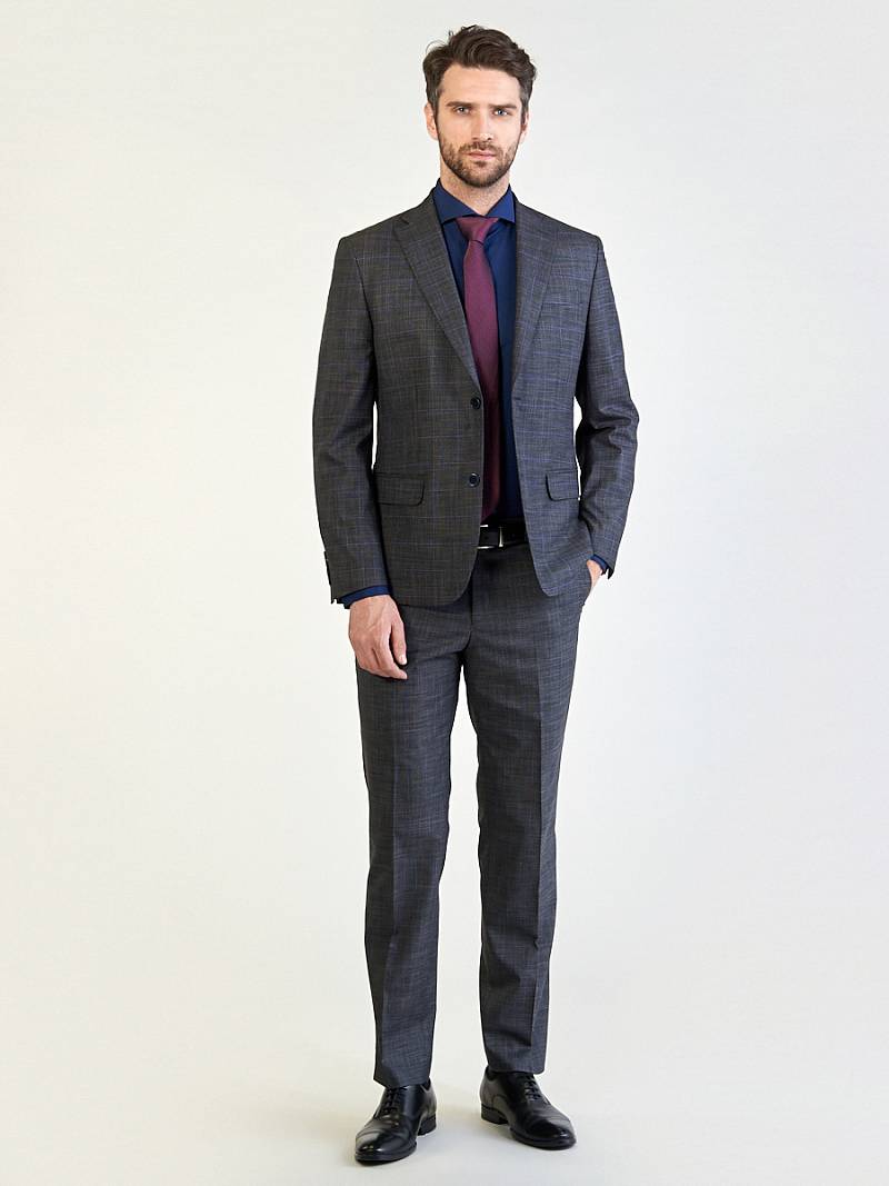 Классический костюм двойка Classic fit. Пиджак на две пуговицы, с боковыми и нагрудным карманами, по спинке две шлицы. Брюки без защипов с боковыми и одним задним карманом.