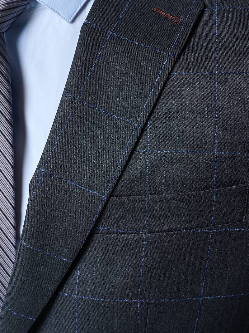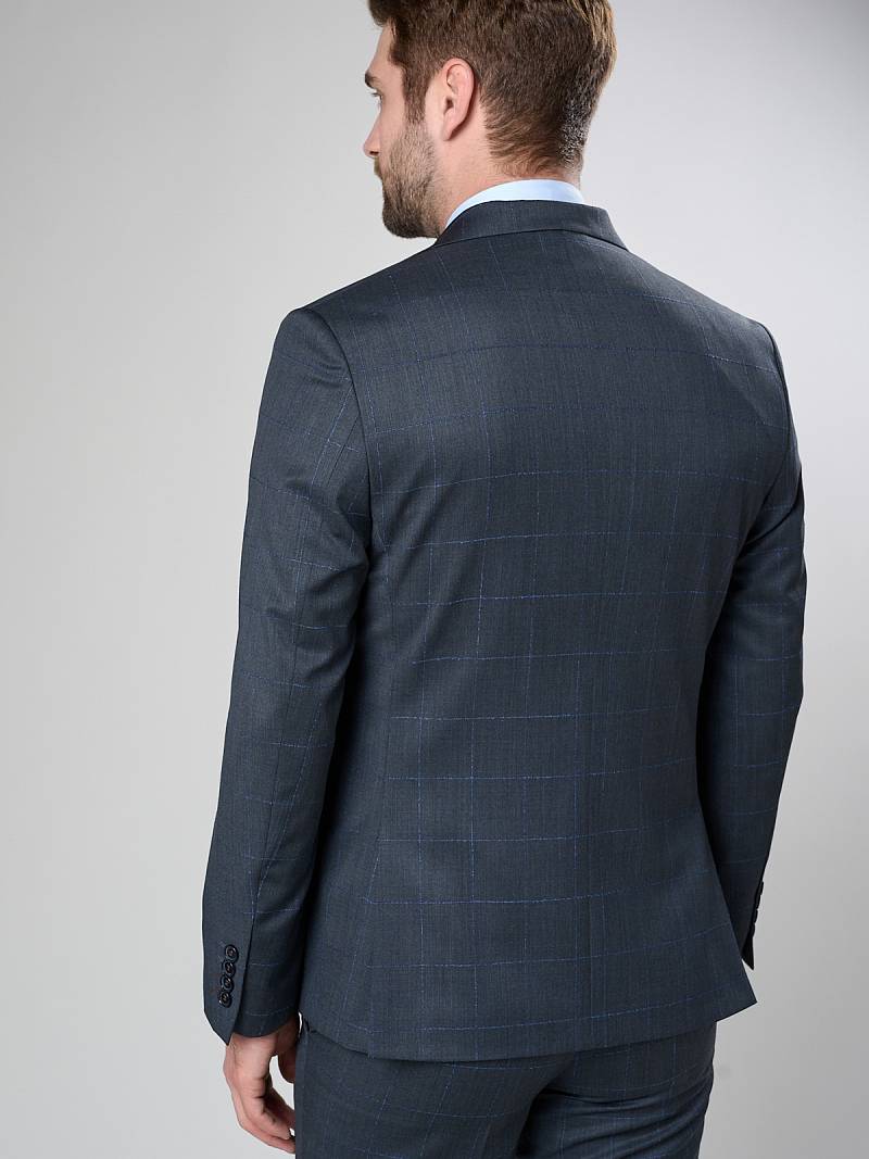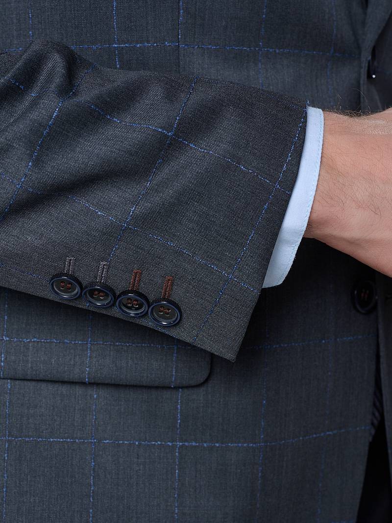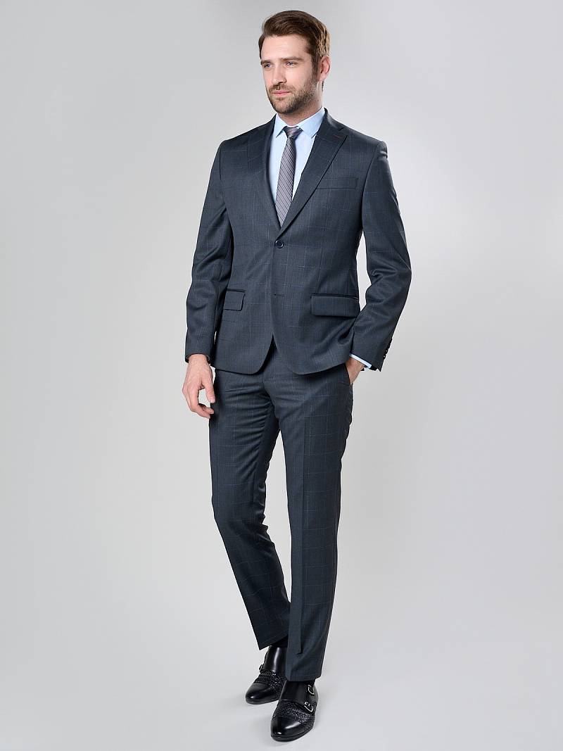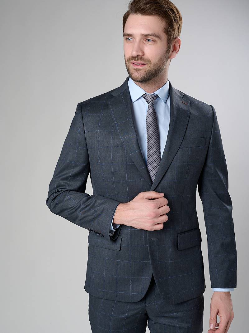Классический костюм двойка Classic fit. Пиджак на две пуговицы, с боковыми и нагрудным карманами, по спинке две шлицы. Брюки без защипов с боковыми и одним задним карманом.
