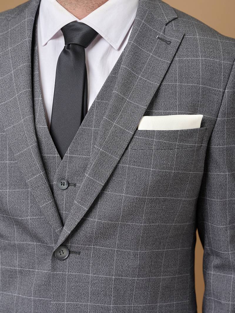 Slim fit (ПРИЛЕГАЮЩИЙ СИЛУЭТ), рекомендуется брать на размер больше. Костюм двойка марки LACONI– это идеальный баланс между внешним видом и комфортом. Приталенная однобортная модель на две пуговицы сшита из ткани нейтрального серого цвета и ненавязчивой клетки, а входящая в состав ткани лайкра обеспечивает костюму дополнительный комфорт и удобство. Пиджак с классической шириной лацкана и мягкой линией плеч дополнили сзади двумя шлицами, поэтому он садится точно по фигуре. Внутри пиджак обработан на подкладке с двумя внутренними карманами. Брюки прямого кроя со стрелками и заниженной посадкой, с боковыми наклонными карманами и одним задним карманом "в рамку". Верхний срез брюк обработан поясом с корсажной лентой и шлевками под ремень. Дизайнеры марки LACONI тщательно подходят к выбору материалов. Пуговицы подбираются и красятся индивидуально под каждую ткань, а прикладные материалы используют только от передовых производителей. Костюм мужской, классический, нарядный, повседневный, молодежный, casual, для ра