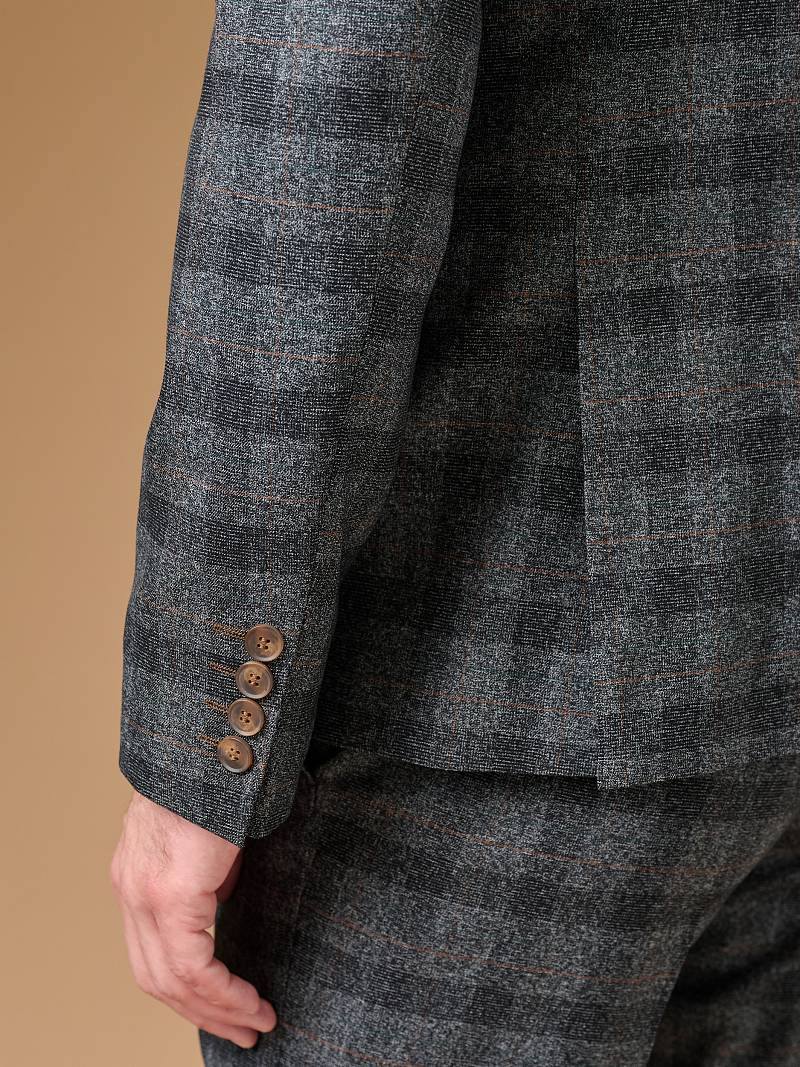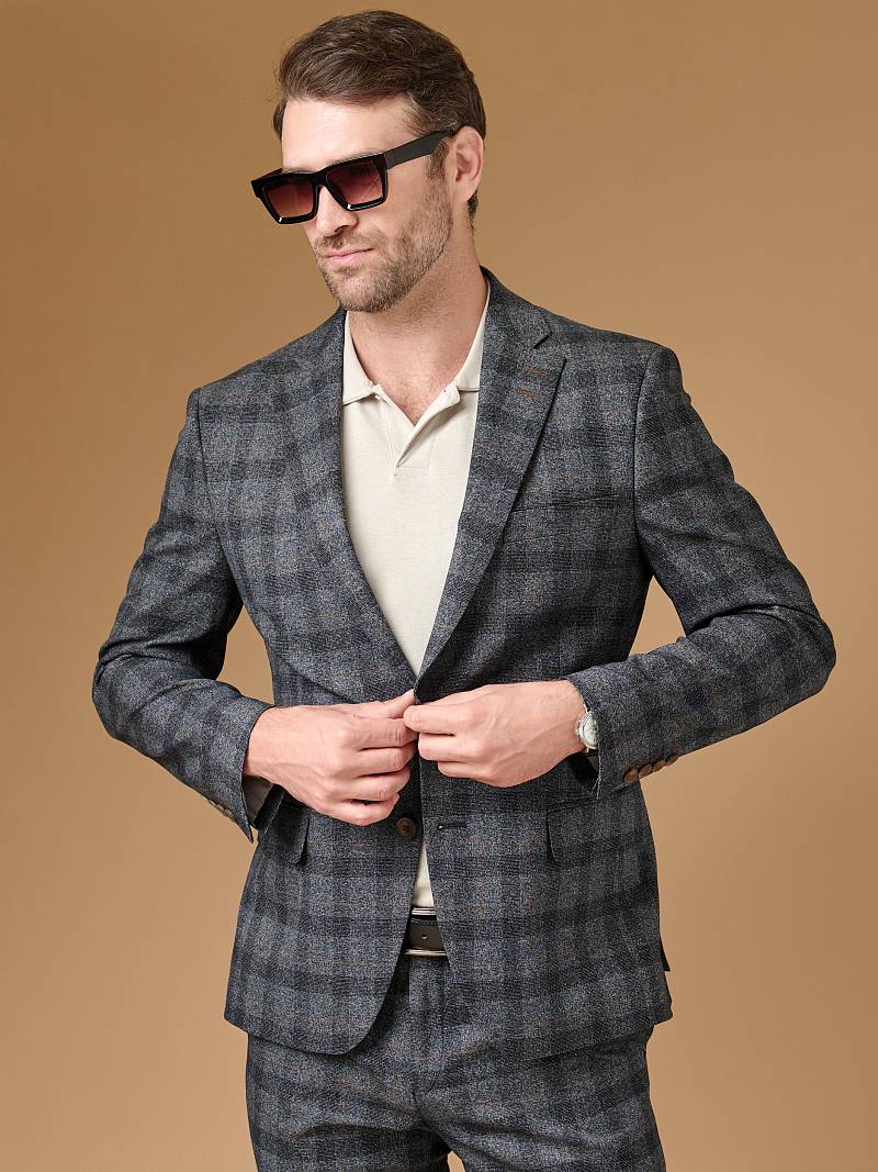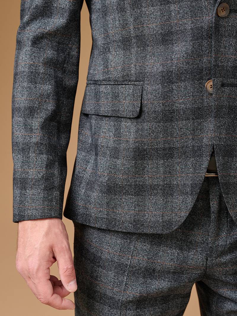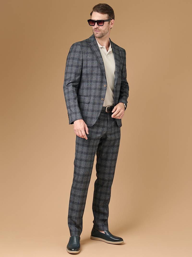 Классический костюм двойка Slim fit (ПРИЛЕГАЮЩИЙ СИЛУЭТ), рекомендуется брать на размер больше.Пиджак однобортный на две пуговицы, с двумя боковыми карманами с клапанами и нагрудной листочкой. Рукава втачные, двухшовные со шлицей и четырьмя декоративными пуговицами. По спинке расположены две шлицы. Пиджак на подкладке, с двумя внутренними карманами. Брюки без защипов, с боковыми наклонными карманами и двумя задними карманами «в рамку». Передние половинки на подкладке. Верхний срез брюк обработан поясом с корсажной лентой и шлевками под ремень. Застежка обработана на тесьму-молнию, с петлей-пуговицей на поясе и усилен металлическим крючком.