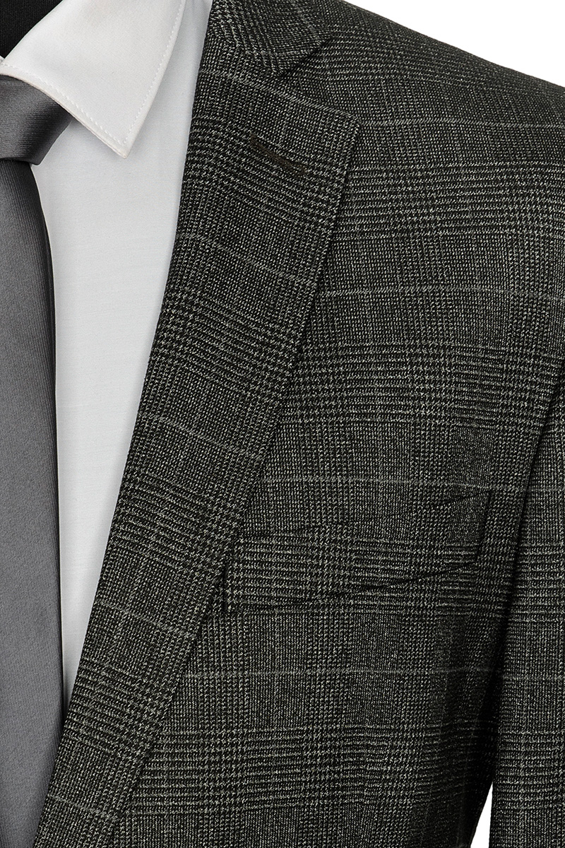 Slim fit, две пуговицы, одна шлица. Контрастные петли.