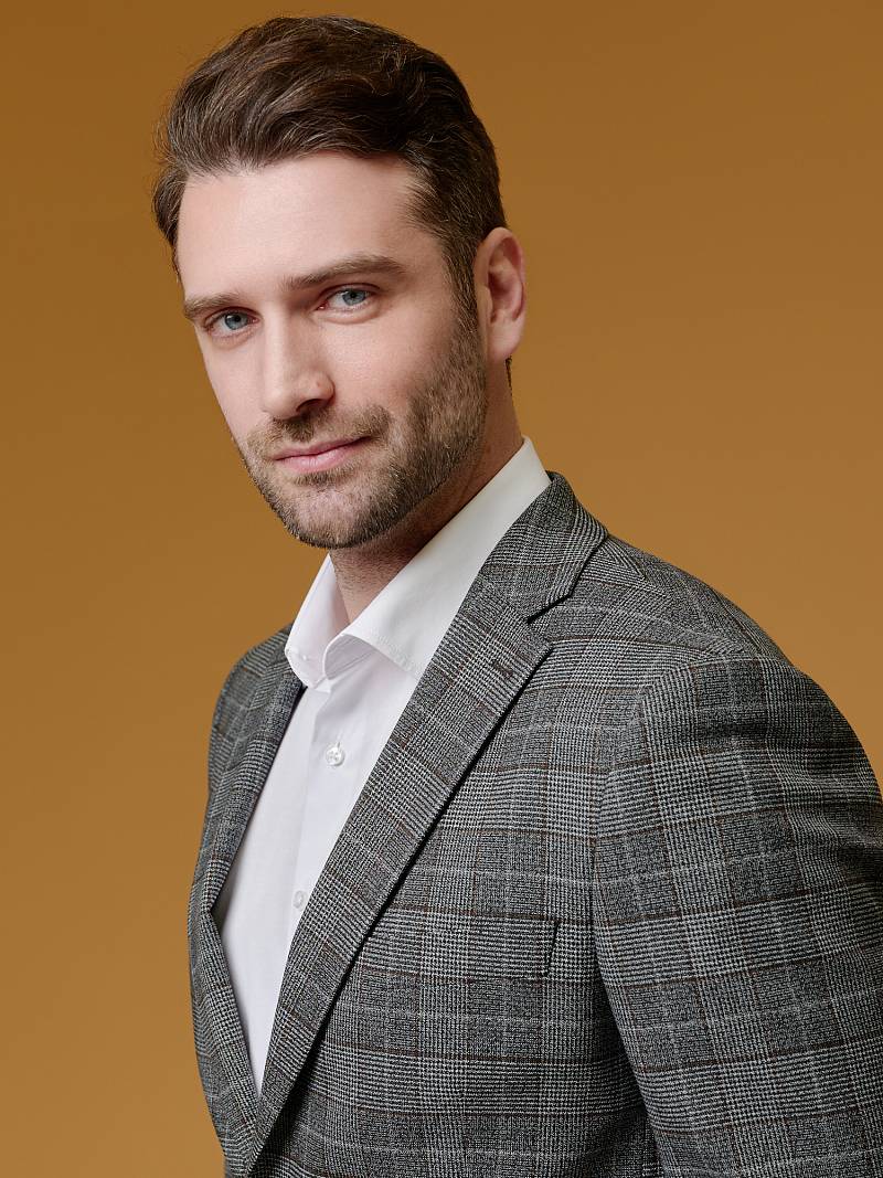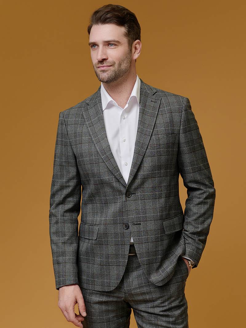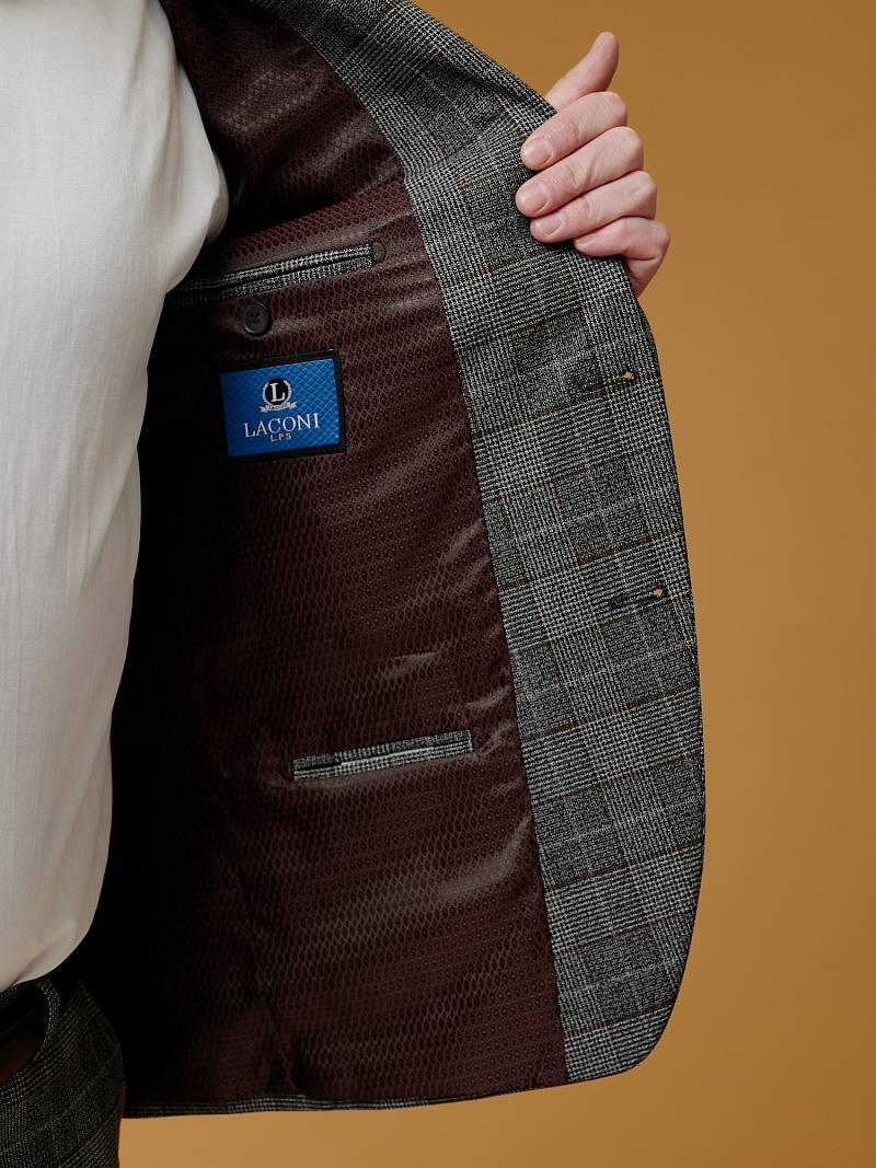 Классический костюм двойка Slim fit (ПРИЛЕГАЮЩИЙ СИЛУЭТ), рекомендуется брать на размер больше.Пиджак однобортный на две пуговицы, с двумя боковыми карманами с клапанами и нагрудной листочкой. Рукава втачные, двухшовные со шлицей и четырьмя декоративными пуговицами. По спинке расположены две шлицы. Пиджак на подкладке, с двумя внутренними карманами. Брюки без защипов, с боковыми наклонными карманами и одним задним карманом «в рамку». Передние половинки на подкладке. Верхний срез брюк обработан поясом с корсажной лентой и шлевками под ремень. Застежка обработана на тесьму-молнию, с петлей-пуговицей на поясе и усилен металлическим крючком.
