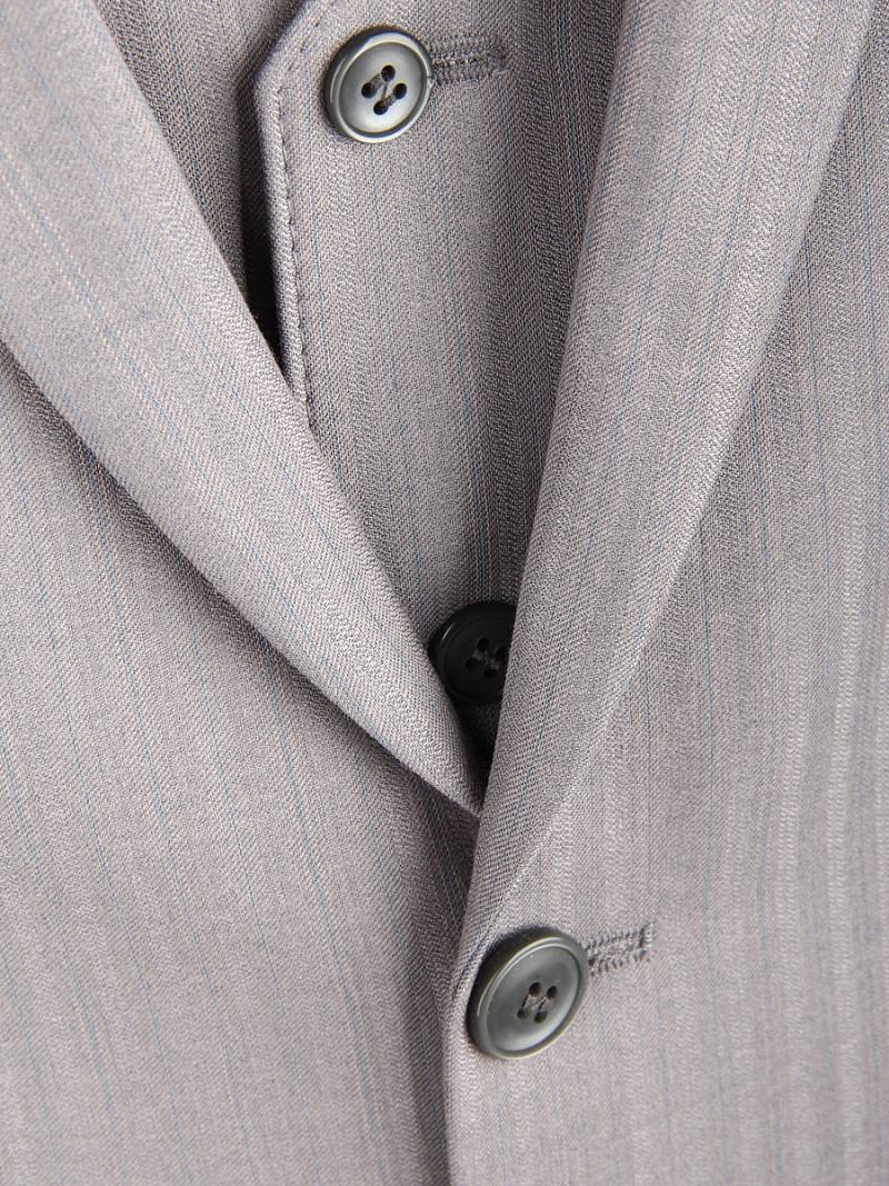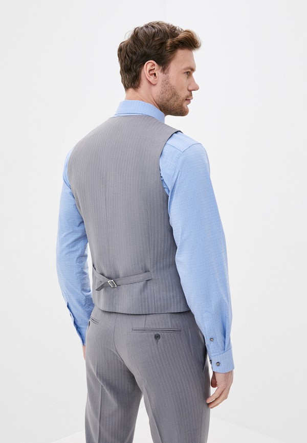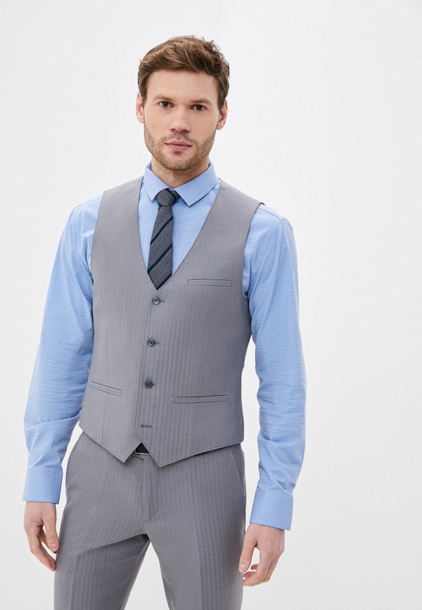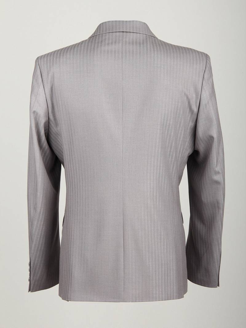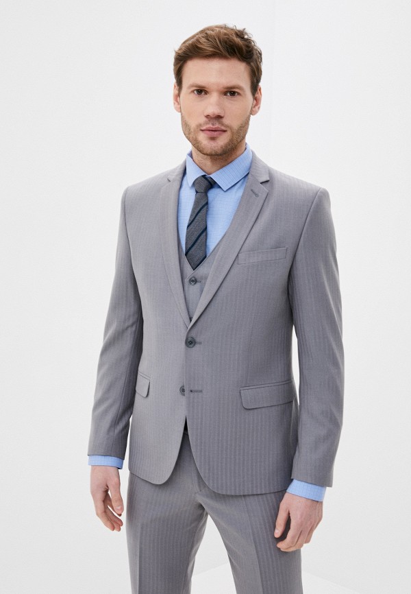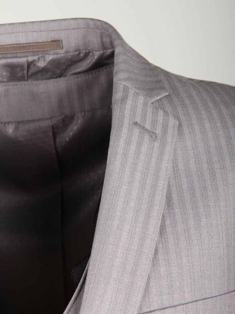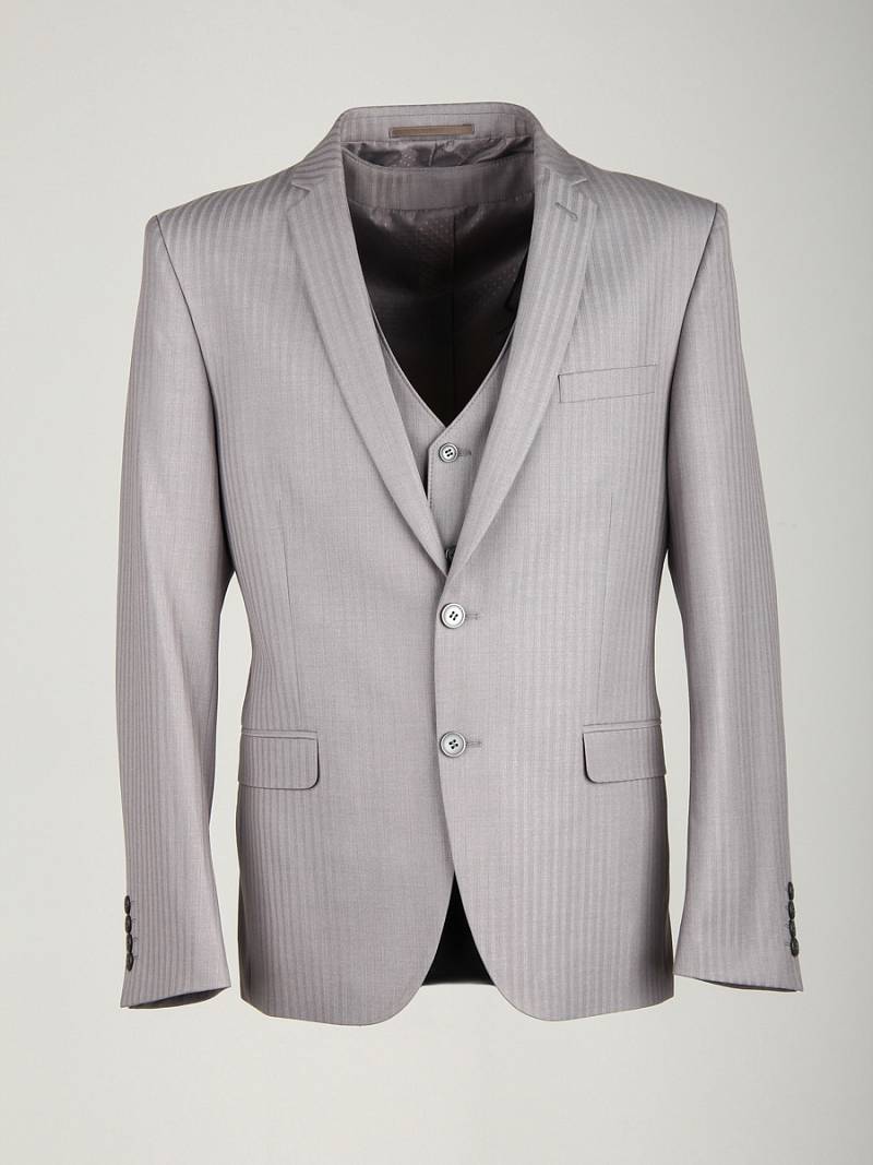 Костюм мужской тройка. Slim fit, 2 пуговицы, 2 шлицы, Пиджак, брюки и жилет из ткани в полоску. Спинка жилета полностью из ткани.