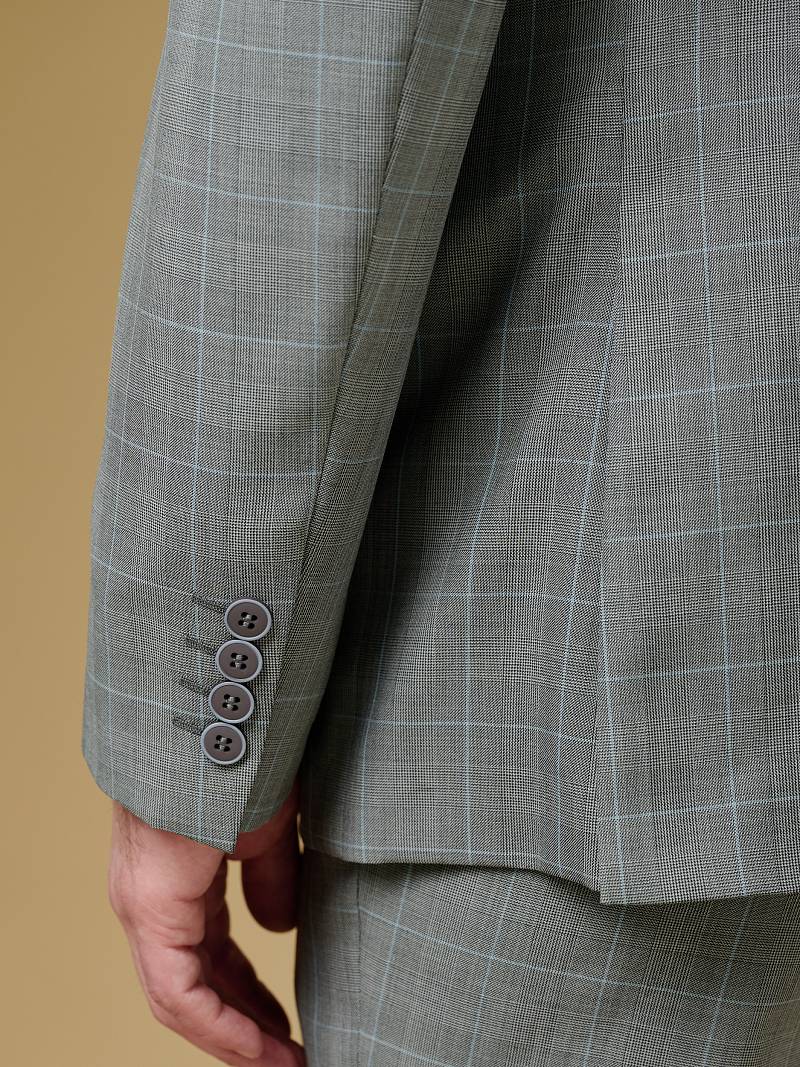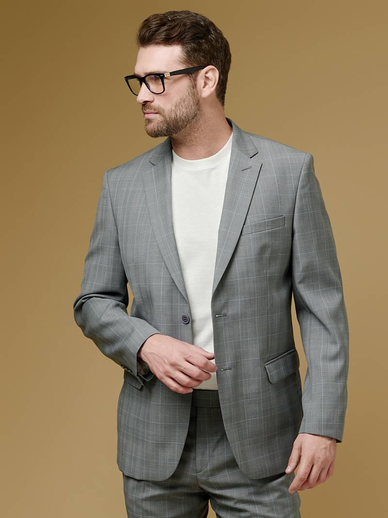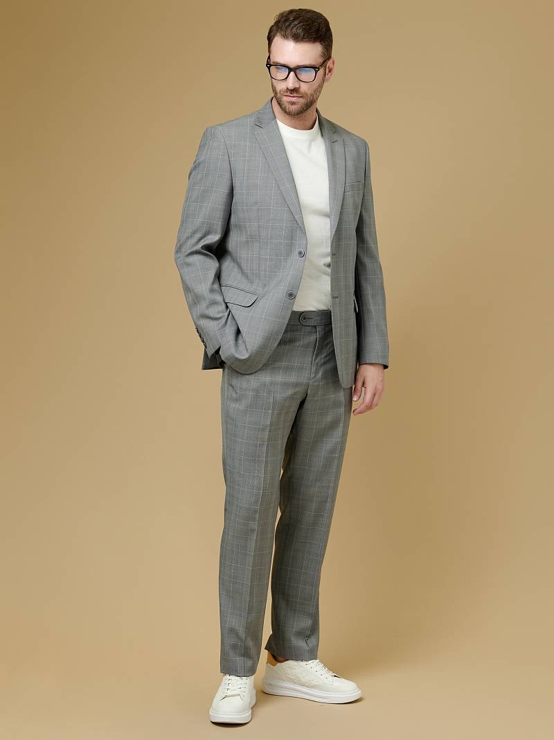 Классический костюм двойка Classic fit . Пиджак на две пуговицы, с боковыми и нагрудным карманами, по спинке две шлицы. Брюки без защипов с боковыми и одним задним карманом.