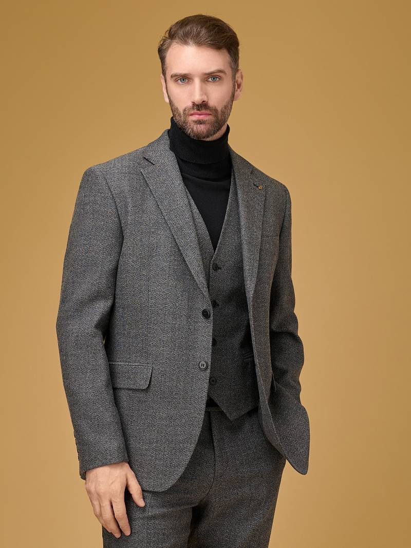 Classic fit (ПОЛУПРИЛЕГАЮЩИЙ СИЛУЭТ). Классический костюм двойка марки BAZIONI– это идеальное сочетание стиля и комфорта для мужчин. Для пошива лаконичного костюма использовали премиальную шерсть высокого качества. Пиджак с классической шириной лацкана и мягкой линией плеч отлично сядет по фигуре, а расположенные по спинке две шлицы обеспечат дополнительный комфорт и свободу движения. Для придания образу торжественности подкладку нагрудного кармана можно использовать как платок-паше. Лацканы украсили небольшим значком в виде эмблемы бренда. Обработан пиджак шелковой подкладкой с двумя внутренними карманами. Брюки прямого кроя со стрелками и заниженной посадкой, с боковыми наклонными карманами и двумя задними карманами "в рамку". Верхний срез брюк обработан поясом с корсажной лентой и шлевками под ремень. Дизайнеры марки BAZIONI тщательно подходят к выбору материалов. Пуговицы подбираются и красятся индивидуально под каждую ткань, а прикладные материалы используют только от передовых производителей. Костюм мужской, классический, нарядный, повседневный, молодежный, для работы в офисе, модный, для мужа, сына, брата, на праздник.