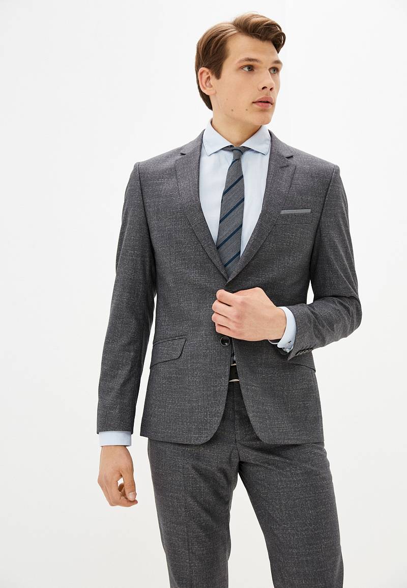 Классический костюм двойка Slim fit . Пиджак на две пуговицы, с боковыми карманами и одним нагрудным, по спинке две шлицы, в нагрудном кармане съемный декоративный платок. Брюки без защипов с одним задним карманом.
