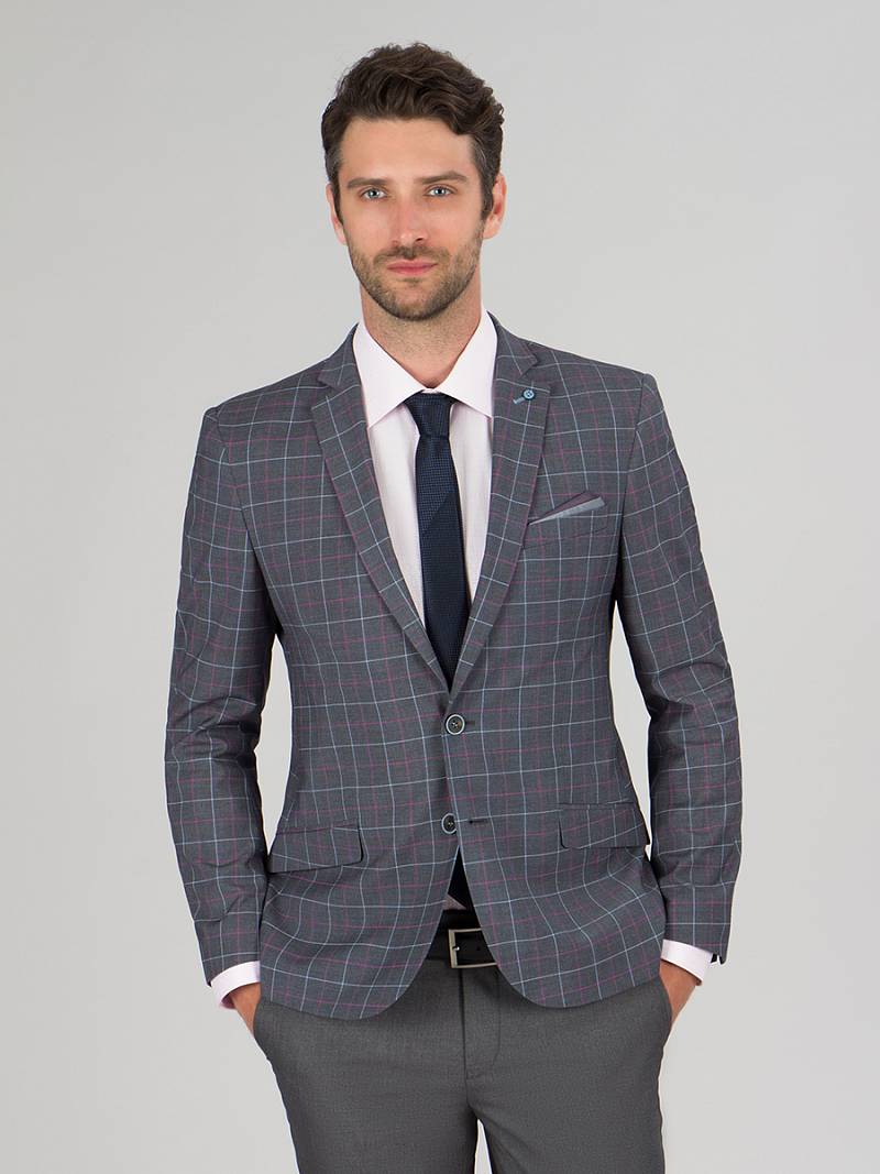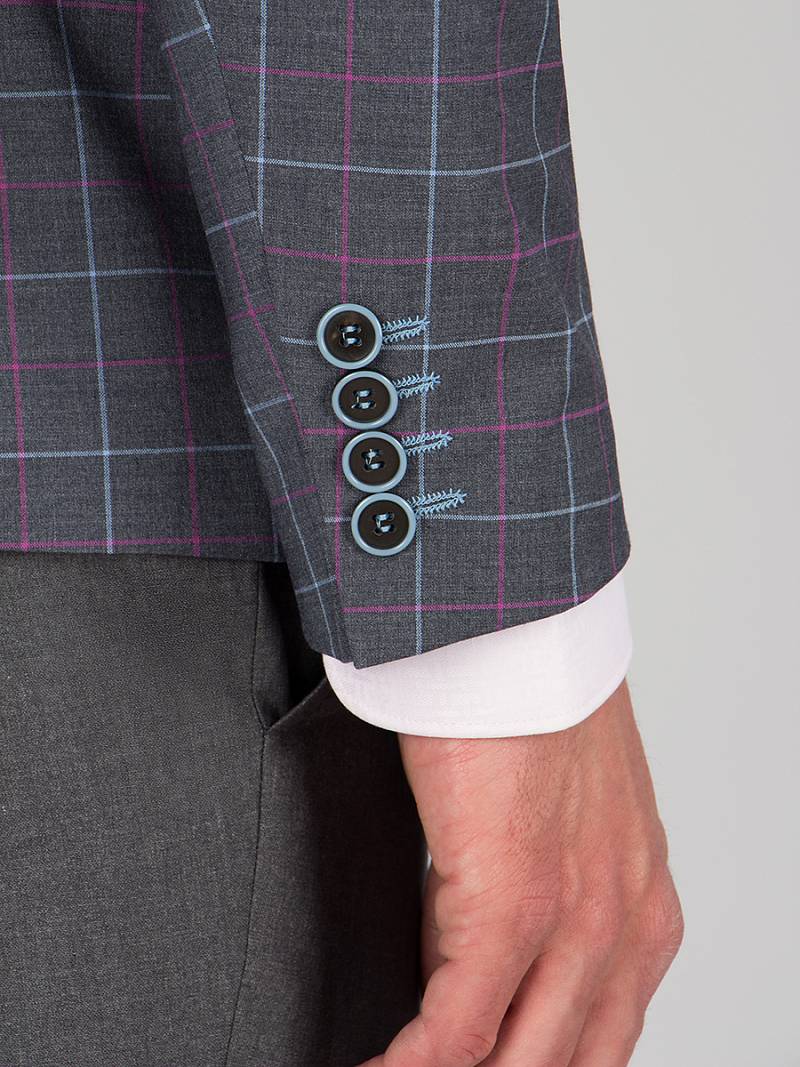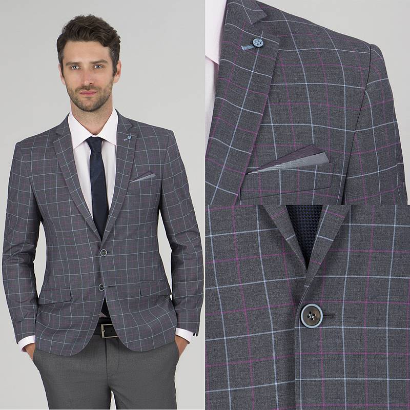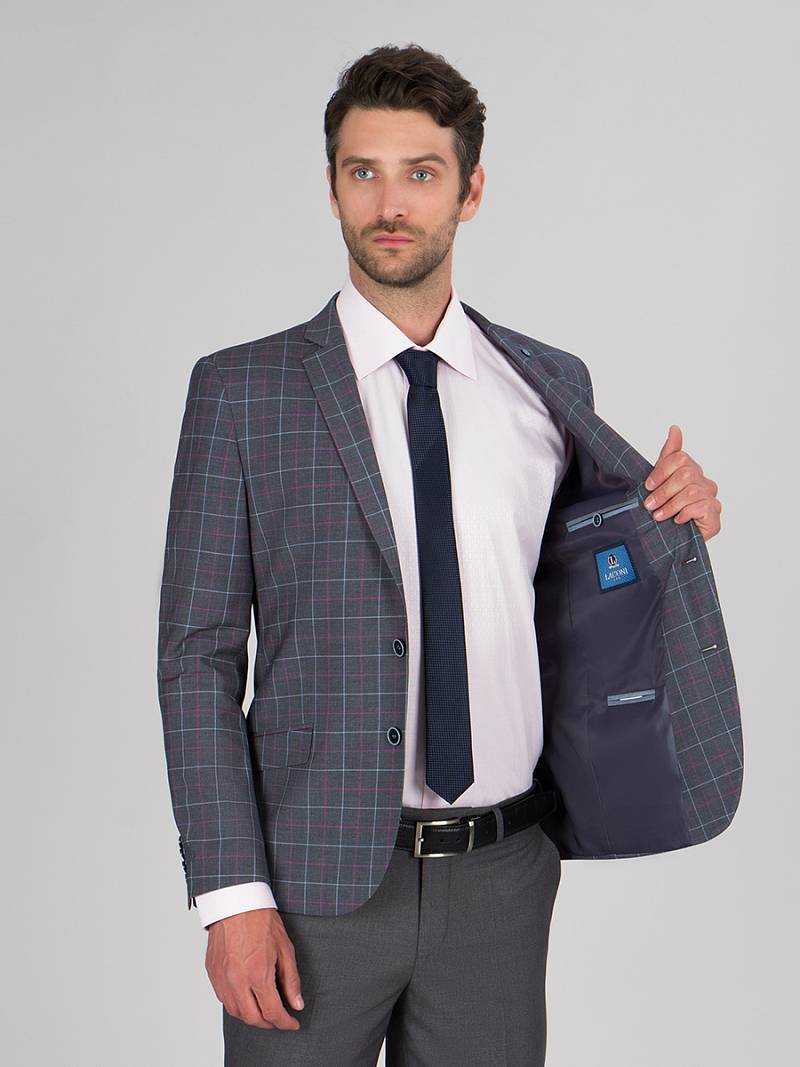 Классический костюм двойка Slim fit. Пиджак на две пуговицы, с боковыми и нагрудным карманами, по спинке две шлицы, в нагрудном кармане расположен декоративный платок, контрастные петли, в фасонной петле декоративная пуговица. Брюки без защипов с боковыми и одним задним карманом, выпонены из ткани компаньона.