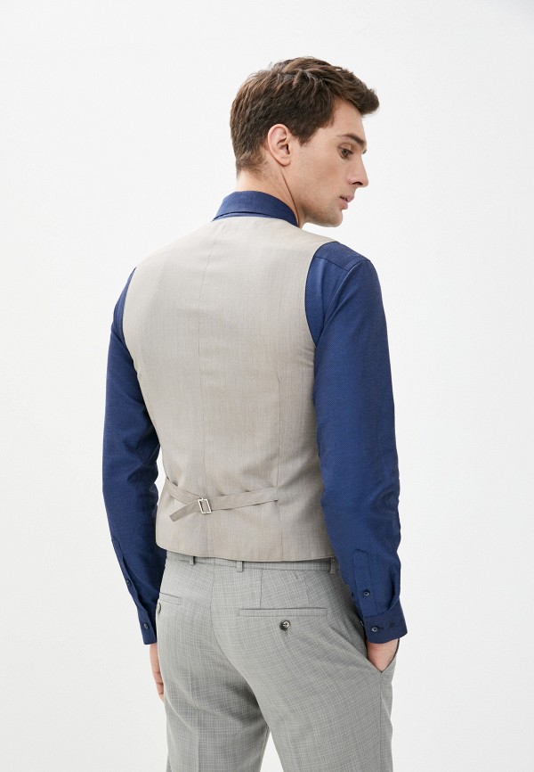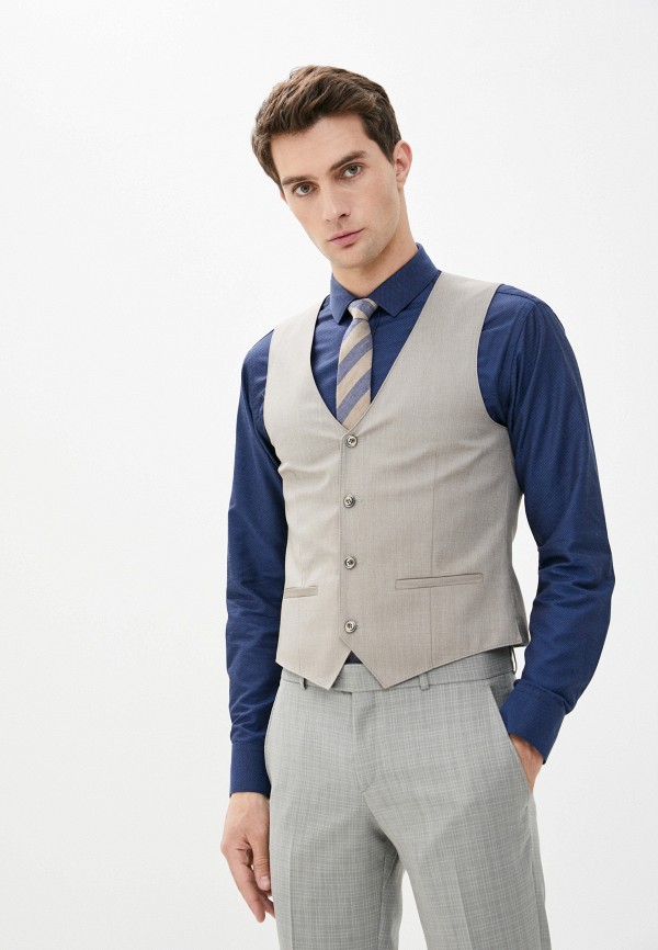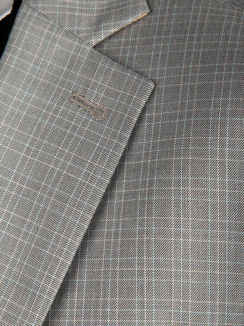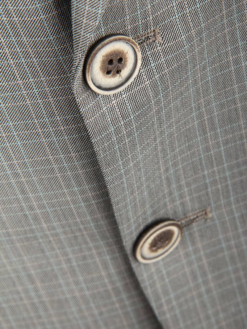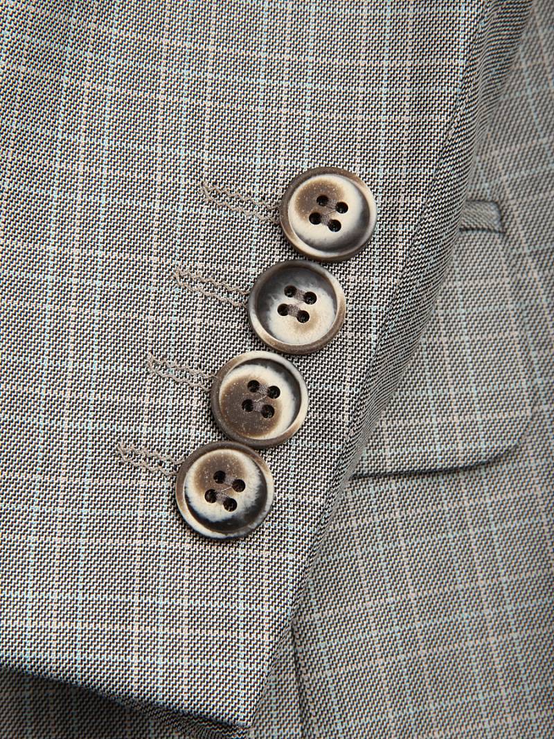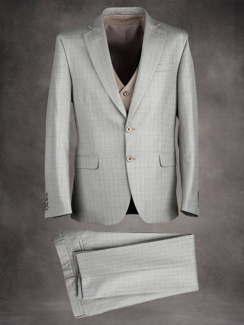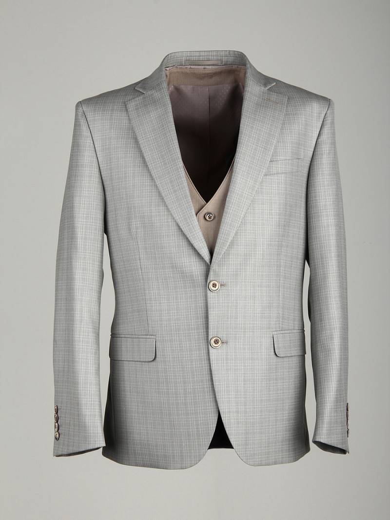 Костюм мужской тройка. Slim fit, 2 пуговицы, 2 шлицы, Пиджак и брюки из ткани в клетку Жилет из однотонной ткани "компаньон. Спинка жилета полностью из ткани.