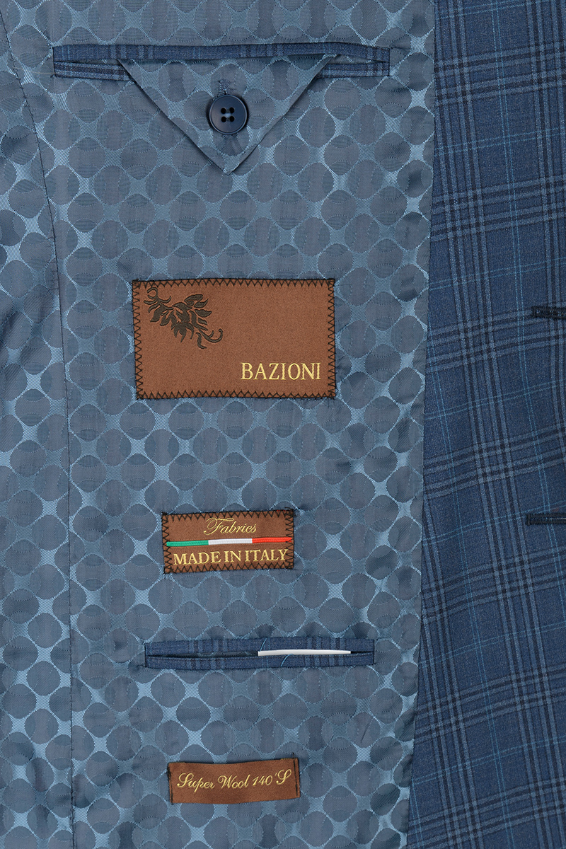 Slim fit, две пуговицы, одна шлица. BAZIONI. Брюки из ткани компаньона.