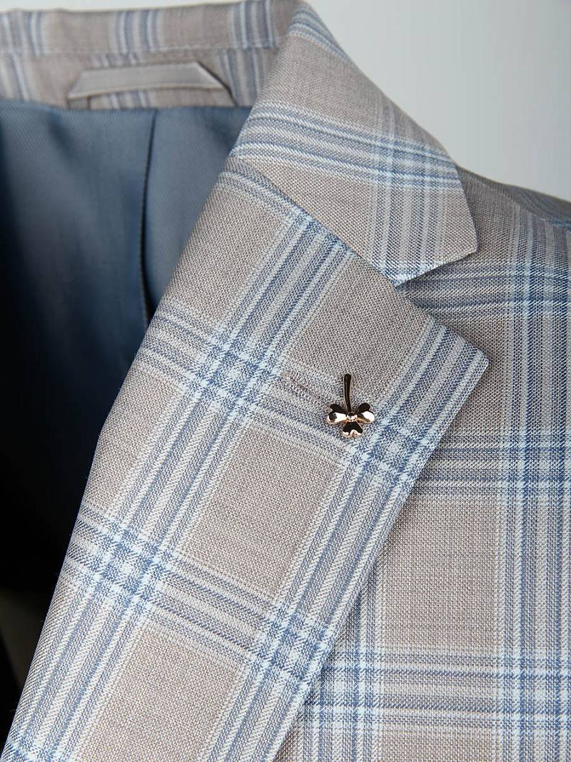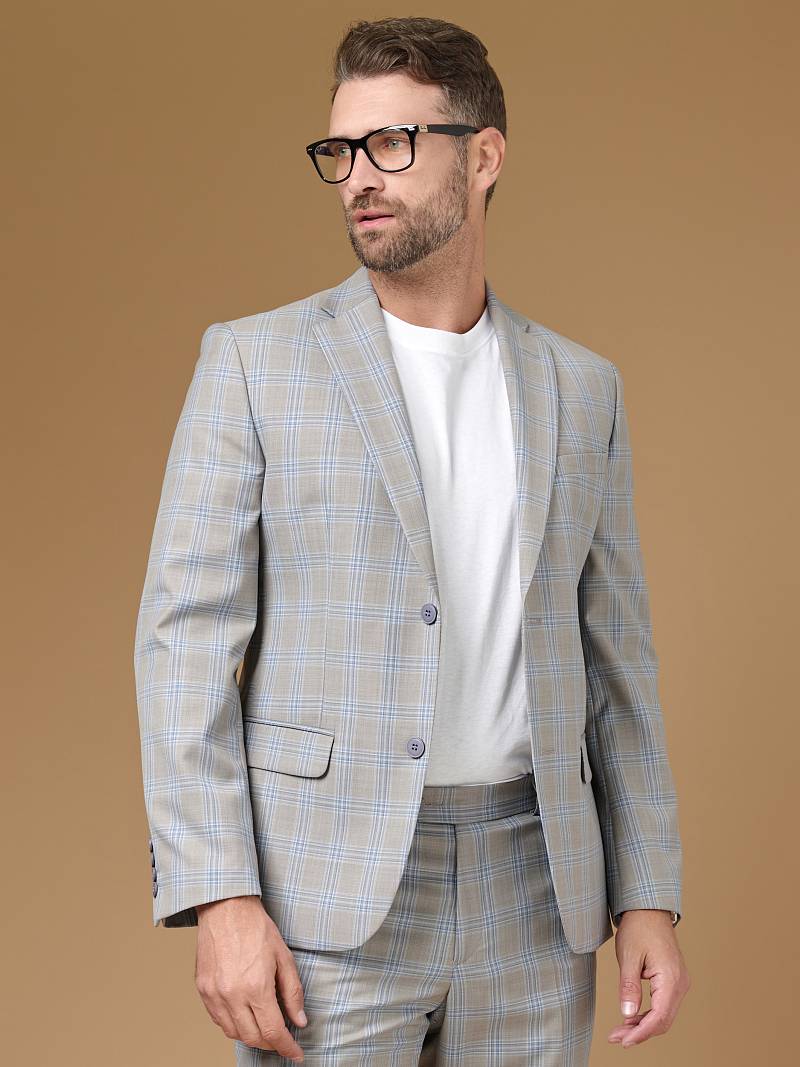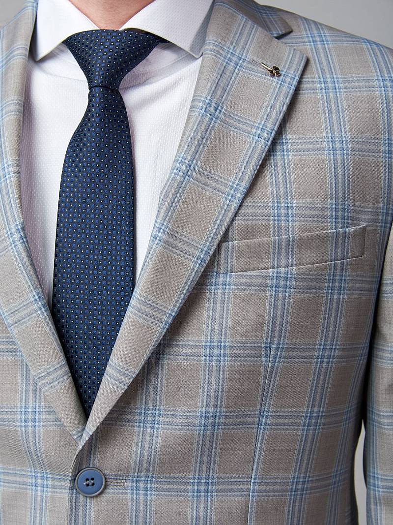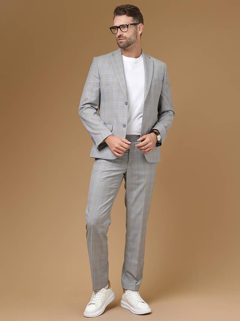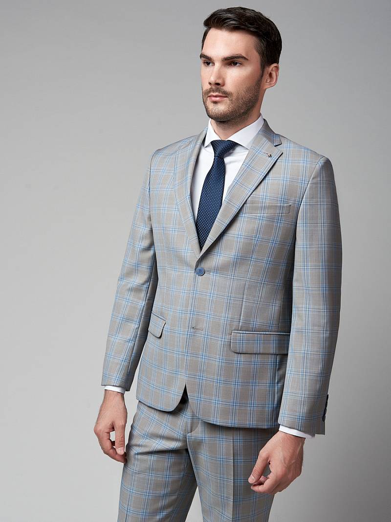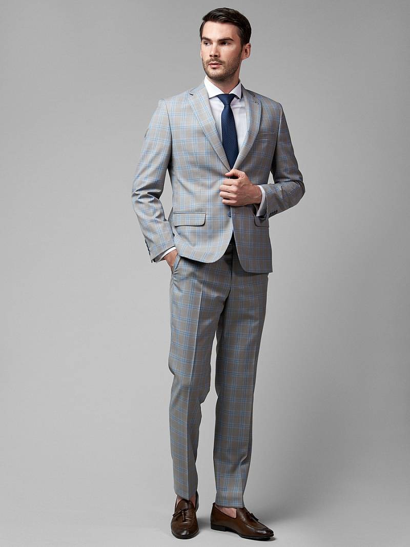 Классический костюм двойка Classic fit . Пиджак на две пуговицы, с боковыми и нагрудным карманами, по спинке две шлицы. Брюки без защипов с боковыми и одним задним карманом.