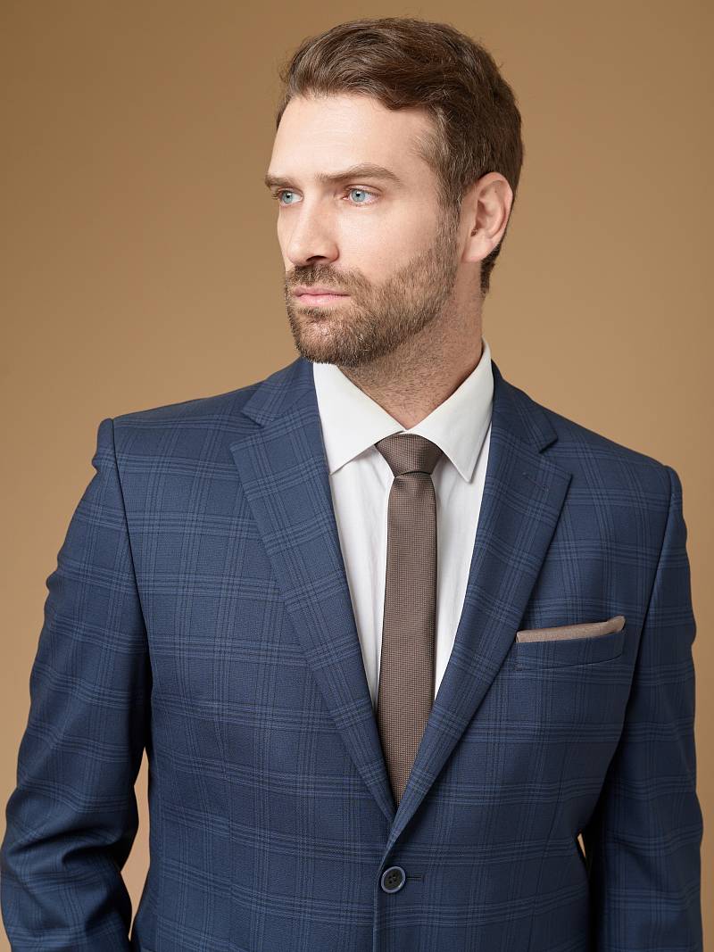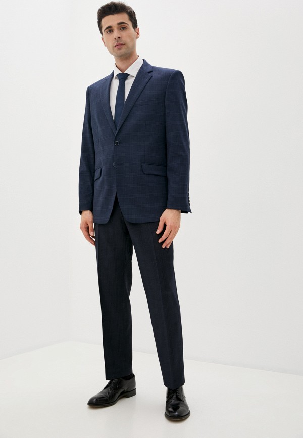 Классический костюм двойка Classic fit. Пиджак на две пуговицы, с боковыми и нагрудным карманами, по спинке две шлицы. Брюки без защипов с боковыми и одним задним карманом, выполнены из ткани компаньoна.