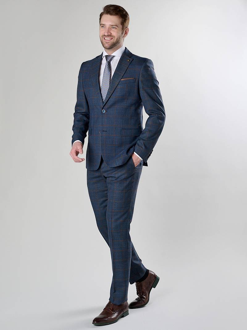Классический костюм двойка Classic fit (ПОЛУПРИЛЕГАЮЩИЙ СИЛУЭТ). Пиджак на две пуговицы, с боковыми и нагрудным карманами, по спинке две шлицы. Брюки без защипов с боковыми и одним задним карманом