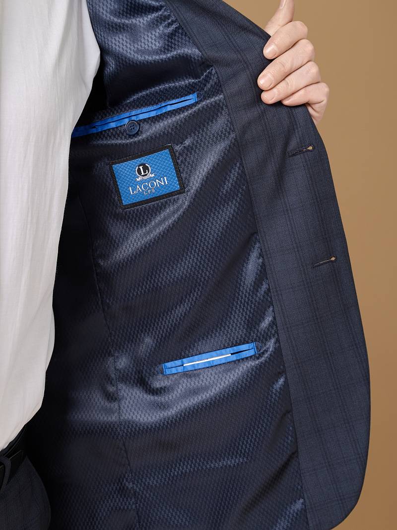 Classic fit (ПОЛУПРИЛЕГАЮЩИЙ СИЛУЭТ). Универсальный костюм двойка марки LACONI– это идеальный баланс между внешним видом и комфортом. Слегка приталенная однобортная модель на две пуговицы сшита из ткани спокойного серого цвета и ненавязчивой клетки. Пиджак с широкими лацканами и мягкой линией плеч дополнили сзади двумя шлицами, поэтому он садится точно по фигуре. Внутри пиджак обработан на подкладке с двумя внутренними карманами. Для придания образу торжественности подкладку нагрудного кармана можно использовать как платок. Брюки прямого кроя со стрелками и классической посадкой, с боковыми наклонными карманами и одним задним карманом "в рамку". Верхний срез брюк обработан поясом с корсажной лентой и шлевками под ремень. Дизайнеры марки LACONI тщательно подходят к выбору материалов. Пуговицы подбираются и красятся индивидуально под каждую ткань, а прикладные материалы используют только от передовых производителей.