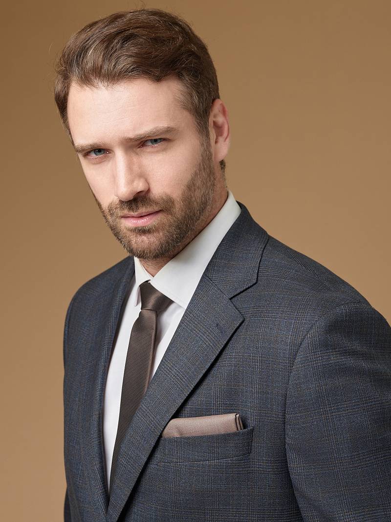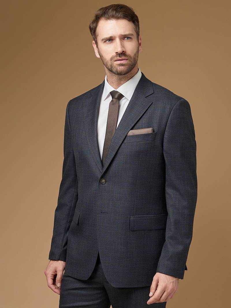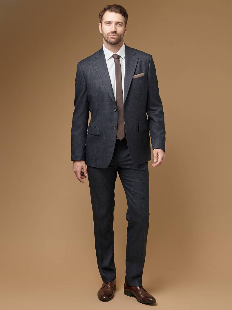Классический костюм двойка Classic fit (ПОЛУПРИЛЕГАЮЩИЙ СИЛУЭТ). Костюм двойка марки LACONI.– это идеальный баланс между внешним видом и комфортом. Приталенная однобортная модель на две пуговицы сшита из плотной ткани с ненавязчивой клеткой. Пиджак с классической шириной лацкана и мягкой линией плеч дополнили сзади двумя шлицами, поэтому он садится точно по фигуре. Внутри пиджак обработан на подкладке с двумя внутренними карманами. Брюки прямого кроя со стрелками и заниженной посадкой, с боковыми наклонными карманами и одним задним карманом "в рамку". Верхний срез брюк обработан поясом с корсажной лентой и шлевками под ремень. Дизайнеры марки LACONI тщательно подходят к выбору материалов. Пуговицы подбираются и красятся индивидуально под каждую ткань, а прикладные материалы используют только от передовых производителейодят к выбору материалов. Пуговицы подбираются и красятся индивидуально под каждую ткань, а прикладные материалы используют только от передовых производителей. Костюм мужской, классический, нарядный, повседневный, молодежный, casual, для работы в офисе, модный, для мужа, сына, брата, на праздник.