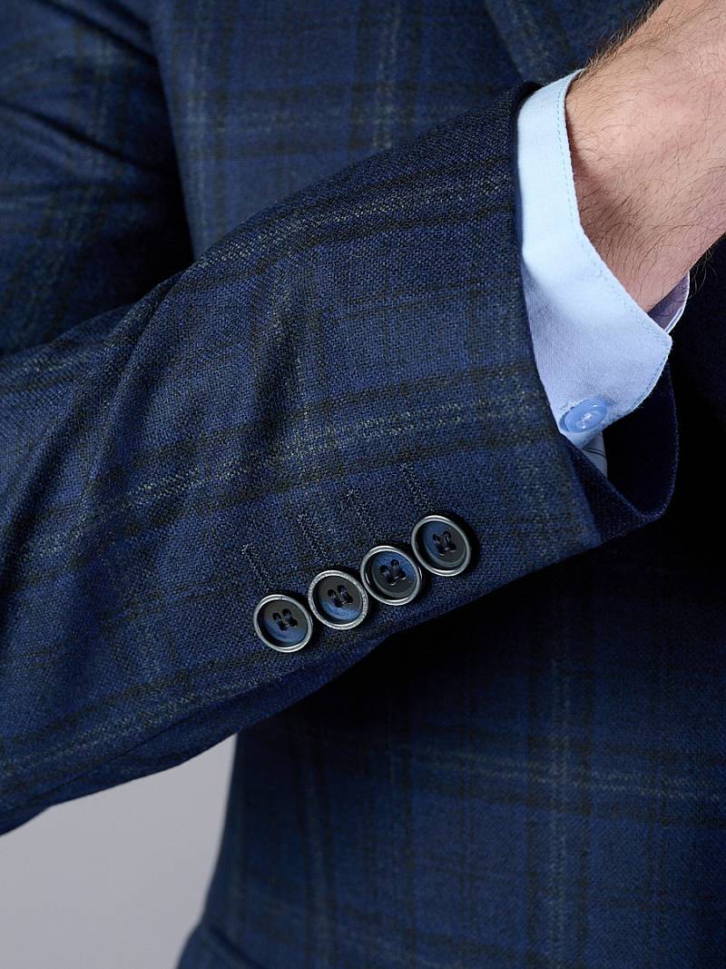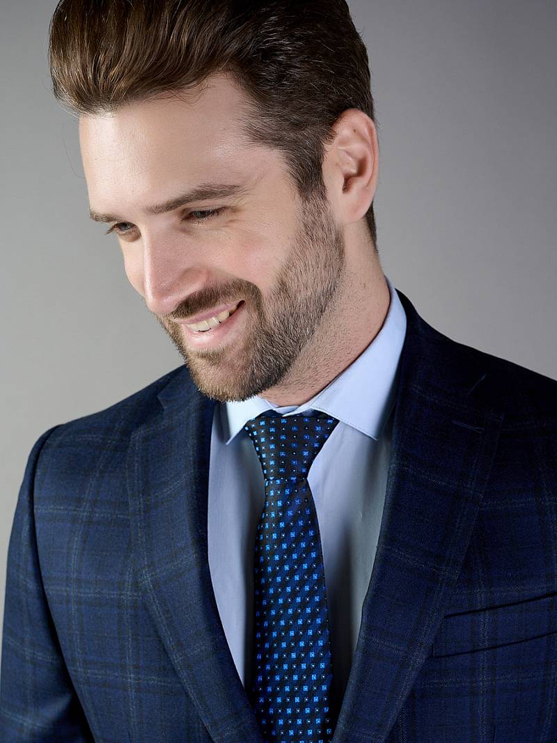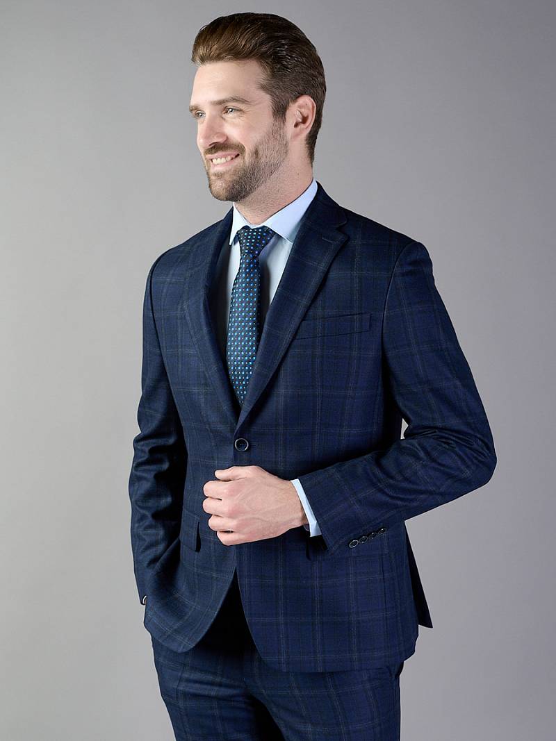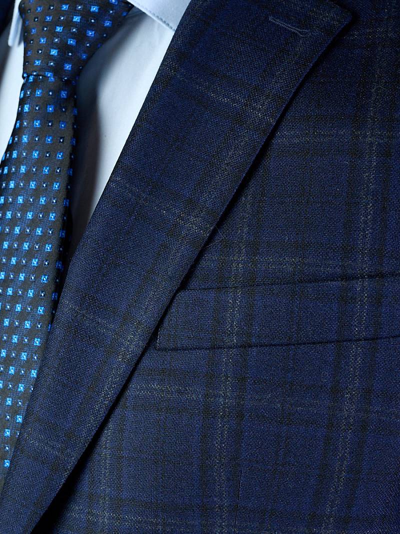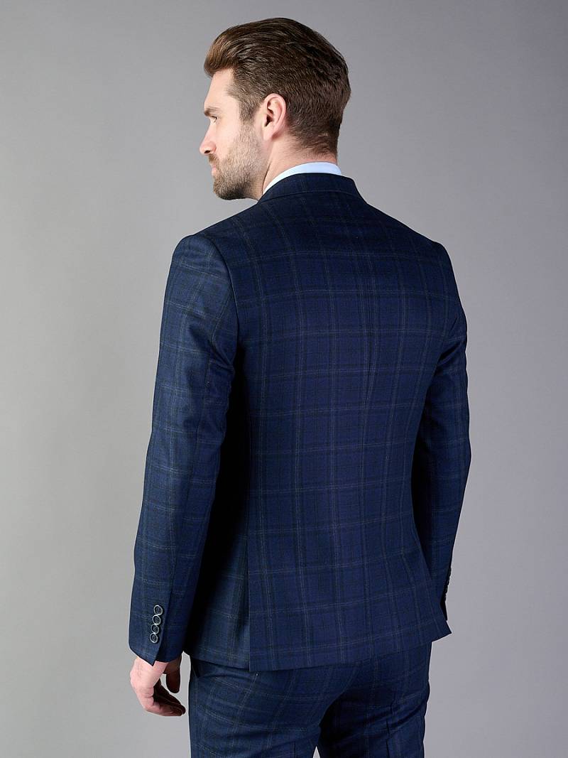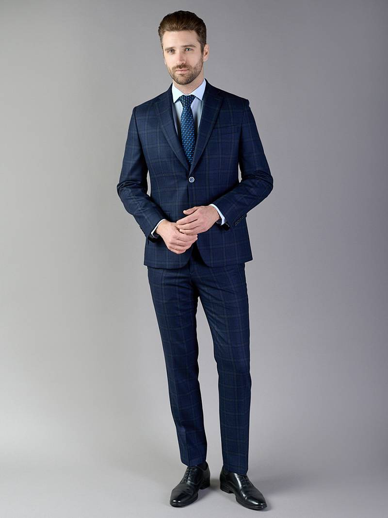 Классический костюм двойка Classic fit. Пиджак на две пуговицы, с боковыми и нагрудным карманами, по спинке две шлицы. Брюки без защипов с боковыми и одним задним карманом.