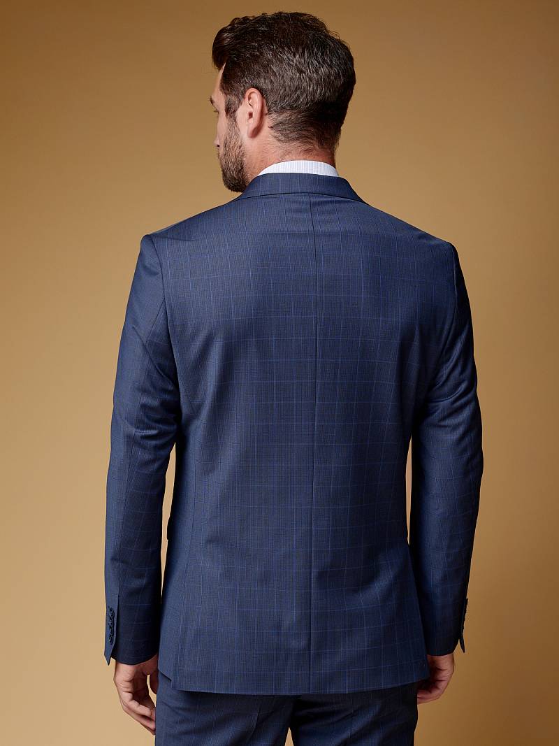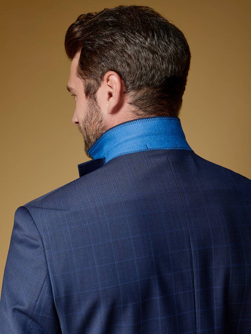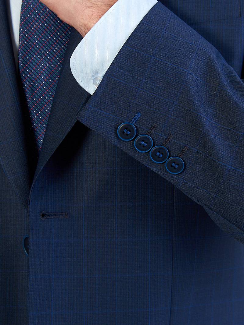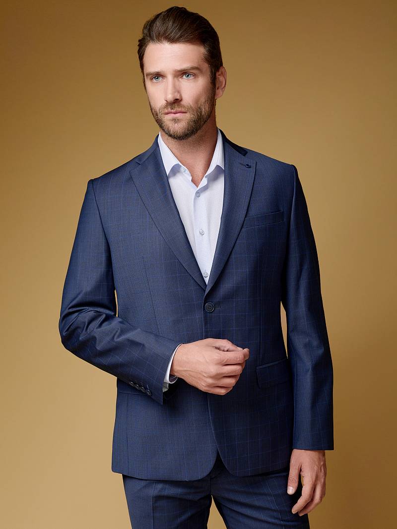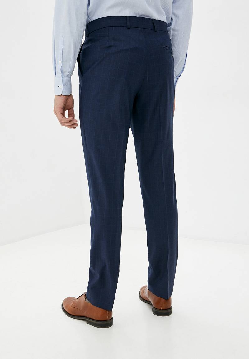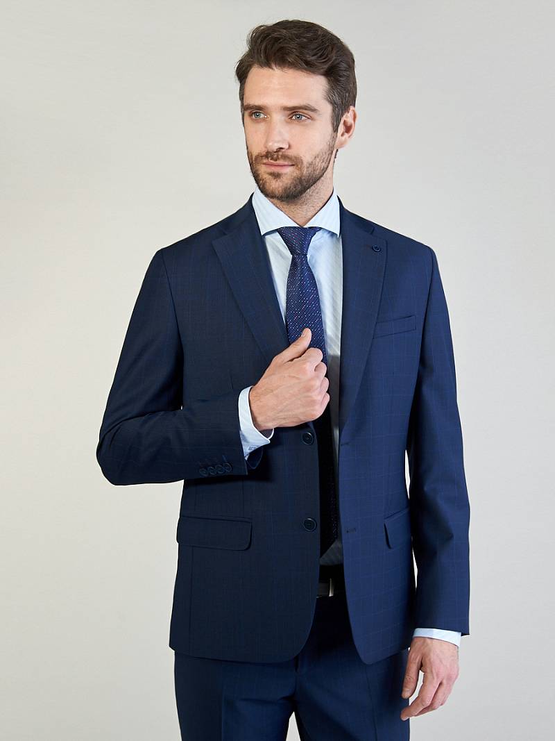 Классический костюм двойка Classic fit. Пиджак на две пуговицы, с боковыми и нагрудным карманами, по спинке две шлицы. Брюки без защипов с боковыми и одним задним карманом.