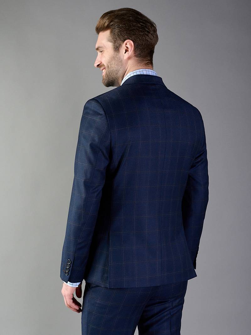 Классический костюм двойка Classic fit. Пиджак на две пуговицы, с боковыми и нагрудным карманами, по спинке две шлицы. Брюки без защипов с боковыми и одним задним карманом.