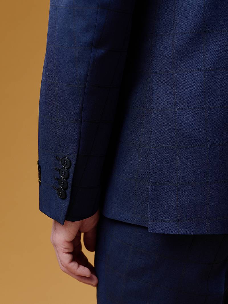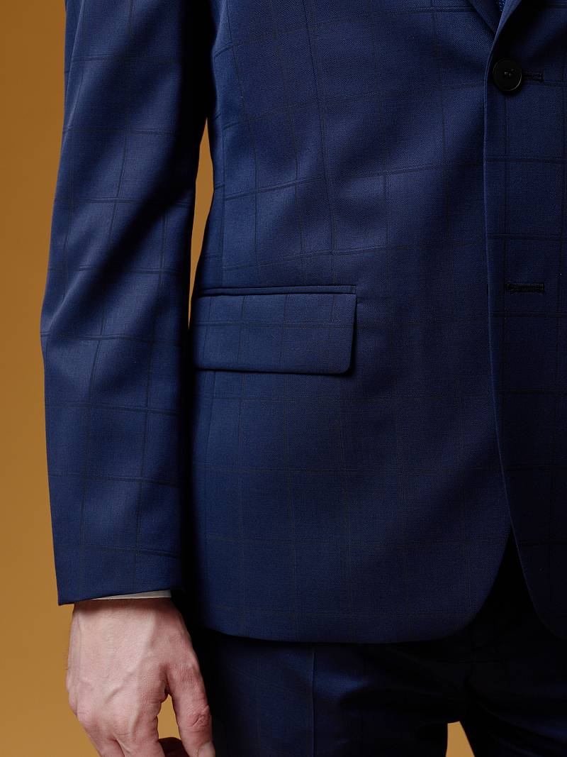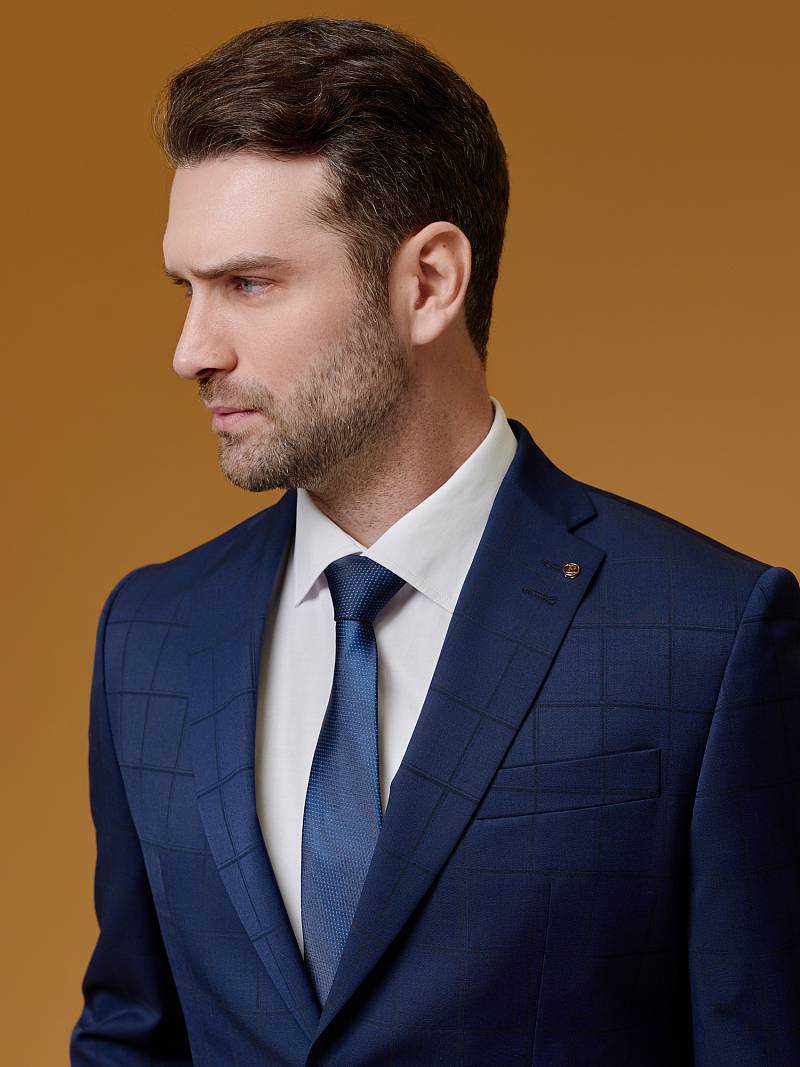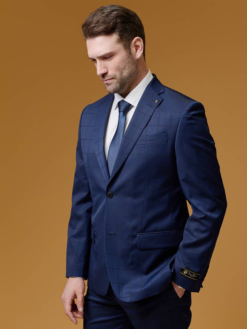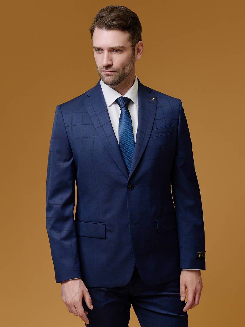 Классический костюм двойка Classic fit (ПОЛУПРИЛЕГАЮЩИЙ СИЛУЭТ). Пиджак однобортный на две пуговицы, с двумя боковыми карманами с клапанами и нагрудной листочкой. Рукава втачные, двухшовные со шлицей и четырьмя декоративными пуговицами. По спинке расположены две шлицы. Пиджак на подкладке, с двумя внутренними карманами. Брюки без защипов, с боковыми наклонными карманами и двумя задними карманами «в рамку». Передние половинки на подкладке. Верхний срез брюк обработан поясом с корсажной лентой и шлевками под ремень. Застежка обработана на тесьму-молнию, с петлей-пуговицей на поясе и усилен металлическим крючком.
