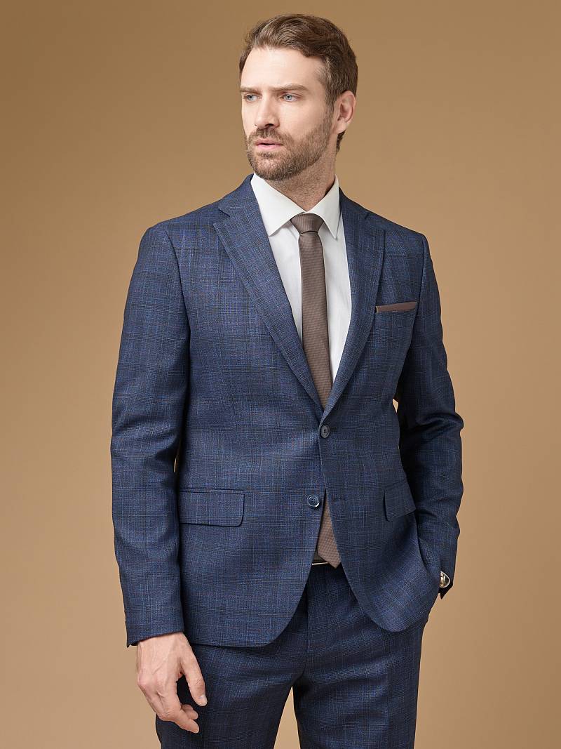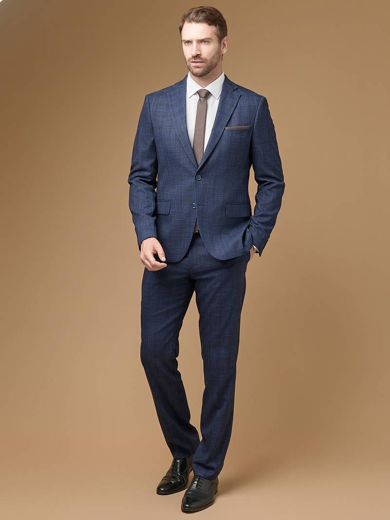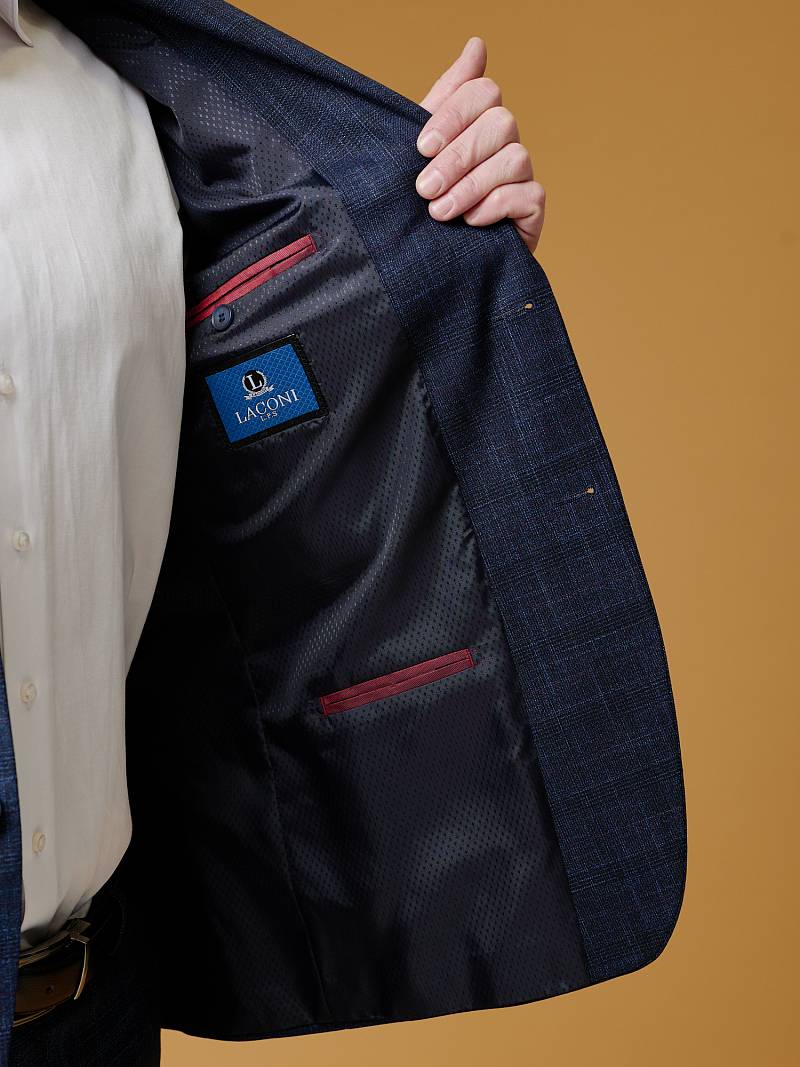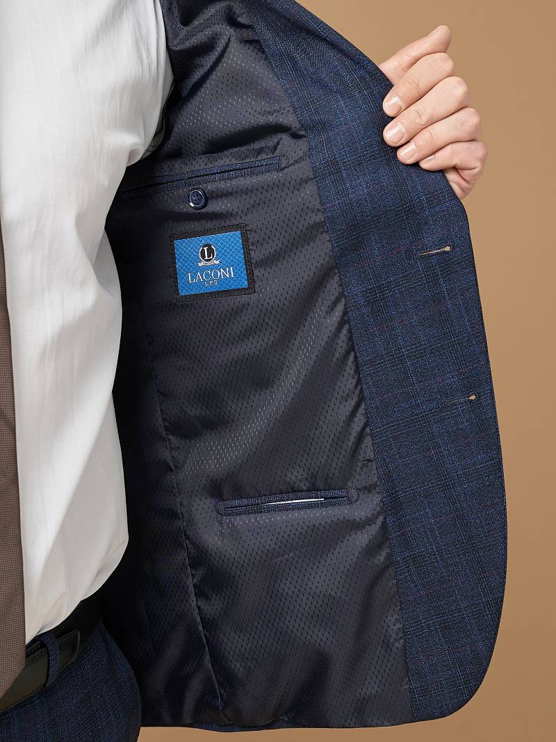 Классический костюм двойка Classic fit (ПОЛУПРИЛЕГАЮЩИЙ СИЛУЭТ). Костюм двойка марки LACONI.– это идеальный баланс между внешним видом и комфортом. Приталенная однобортная модель на две пуговицы сшита из плотной ткани с ненавязчивой клеткой. Пиджак с классической шириной лацкана и мягкой линией плеч дополнили сзади двумя шлицами, поэтому он садится точно по фигуре. Внутри пиджак обработан на подкладке с двумя внутренними карманами. Брюки прямого кроя со стрелками и заниженной посадкой, с боковыми наклонными карманами и одним задним карманом "в рамку". Верхний срез брюк обработан поясом с корсажной лентой и шлевками под ремень. Дизайнеры марки LACONI тщательно подходят к выбору материалов. Пуговицы подбираются и красятся индивидуально под каждую ткань, а прикладные материалы используют только от передовых производителейодят к выбору материалов. Пуговицы подбираются и красятся индивидуально под каждую ткань, а прикладные материалы используют только от передовых производителей. Костюм мужской, классический, нарядный, повседневный, молодежный, casual, для работы в офисе, модный, для мужа, сына, брата, на праздник.