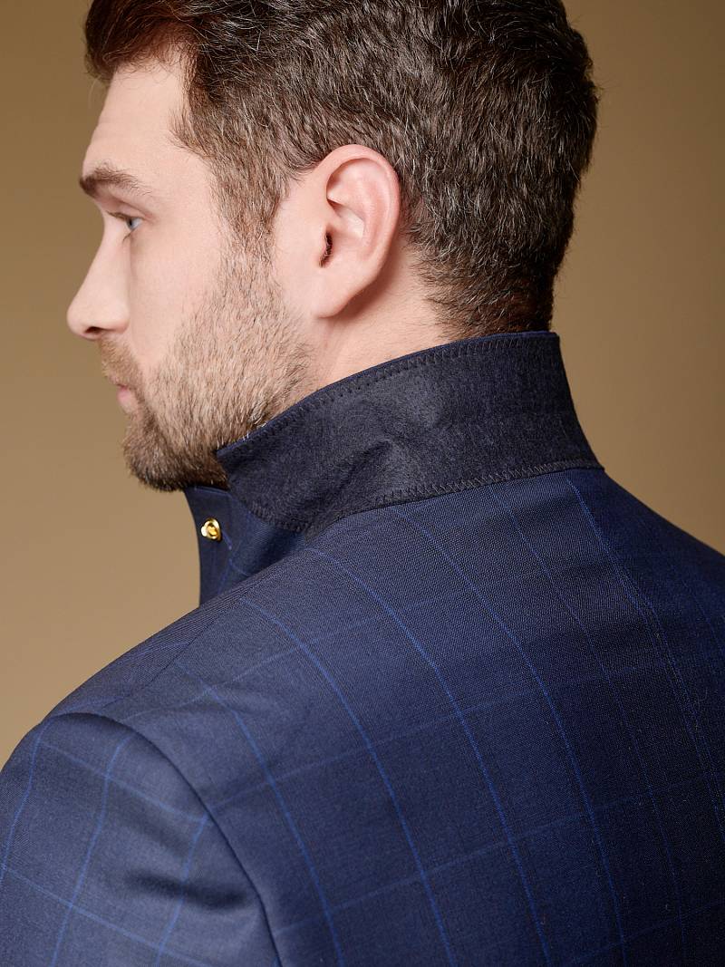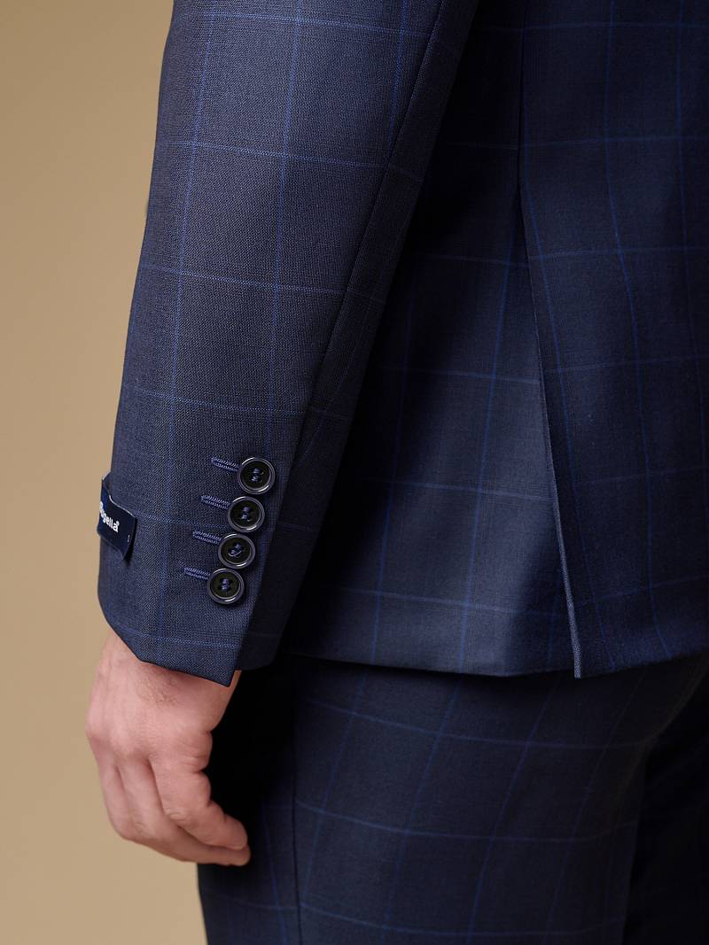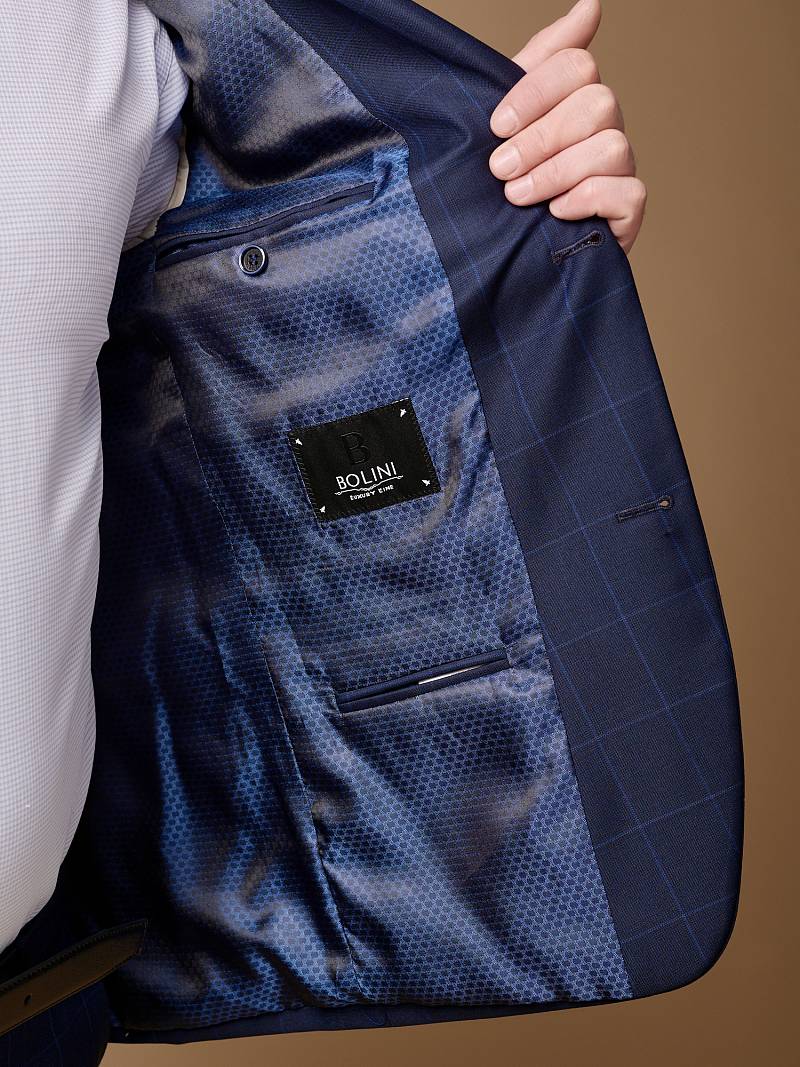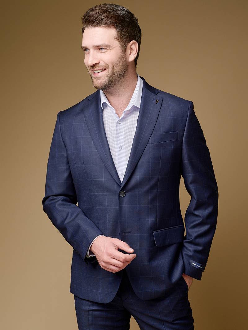Классический костюм двойка Classic fit (ПОЛУПРИЛЕГАЮЩИЙ СИЛУЭТ). Пиджак однобортный на две пуговицы, с двумя боковыми карманами с клапанами и нагрудной листочкой. Рукава втачные, двухшовные со шлицей и четырьмя декоративными пуговицами. По спинке расположены две шлицы. Пиджак на подкладке, с двумя внутренними карманами. Брюки без защипов, с боковыми наклонными карманами и двумя задними карманами «в рамку». Передние половинки на подкладке. Верхний срез брюк обработан поясом с корсажной лентой и шлевками под ремень. Застежка обработана на тесьму-молнию, с петлей-пуговицей на поясе и усилен металлическим крючком.