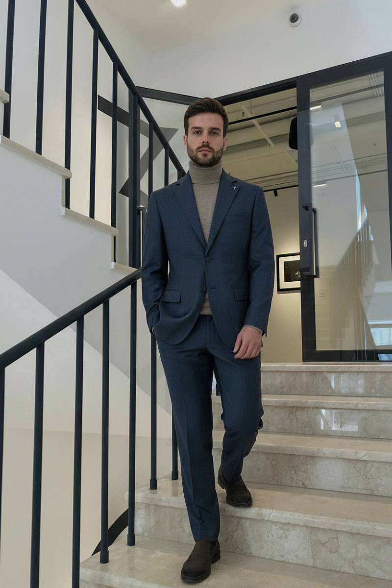 Классический костюм двойка марки BOLINI– это идеальное сочетание стиля и комфорта для мужчин, которые ценят качественный пошив и изысканный дизайн. Для пошива костюма использовали премиальную шерсть c кашемиром, которая подчеркивает респектабельность, а безупречная посадка обеспечивает комфорт владельцу. Пиджак с классической шириной лацкана и мягкой линией плеч дополнили сзади двумя шлицами, модель садится точно по фигуре и прекрасно впишется в офисный образ. Пиджак на шелковой подкладке с двумя внутренними карманами. Брюки прямого кроя со стрелками, средней посадкой, с боковыми наклонными карманами и двумя задними карманами "в рамку". Верхний срез брюк обработан поясом с корсажной лентой и шлевками под ремень. Дизайнеры марки BOLINI тщательно подходят к выбору материалов. Пуговицы подбираются и красятся индивидуально под каждую ткань, а прикладные материалы используют только от передовых производителей.