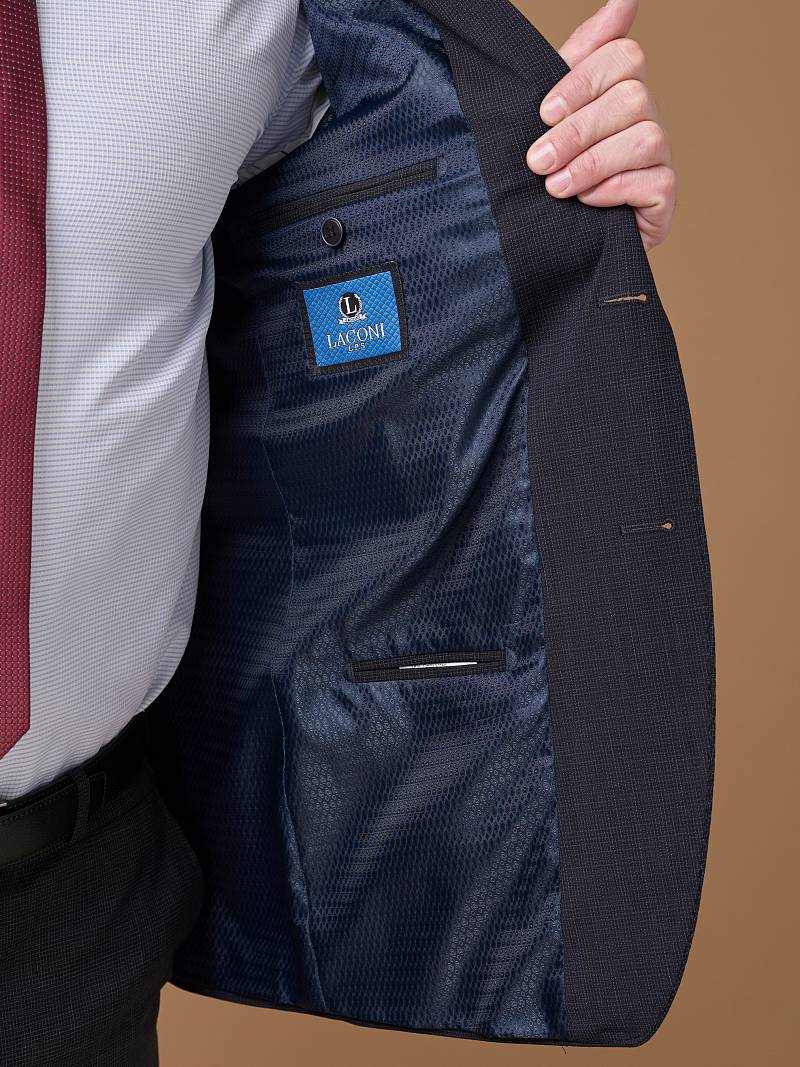 Classic fit (ПОЛУПРИЛЕГАЮЩИЙ СИЛУЭТ). Классический костюм двойка марки LACONI. Для пошива лаконичного классического костюма использовали ткань с содержанием лайкры, которые придают ей эластичность и обеспечивают дополнительный комфорт и удобство. Слегка приталенный однобортный пиджак с широкими лацканами и с мягкой линией плеч дополнен сзади двумя шлицами, поэтому он садится по фигуре и подходит для повседневной носки. Пиджак обработан на подкладке с двумя внутренними карманами. Для придания образу торжественности подкладку нагрудного кармана можно использовать как платок. Брюки прямого кроя со стрелками и классической посадкой, с боковыми наклонными карманами и одним задними карманом "в рамку". Верхний срез брюк обработан поясом с корсажной лентой и шлевками под ремень. Дизайнеры марки LACONI тщательно подходят к выбору материалов. Пуговицы подбираются и красятся индивидуально под каждую ткань, а прикладные материалы используют только от передовых производителей. Костюм мужской, классический, нарядный, повседневный, молодежный, casual, для работы в офисе, модный, для мужа, сына, брата, на праздник.