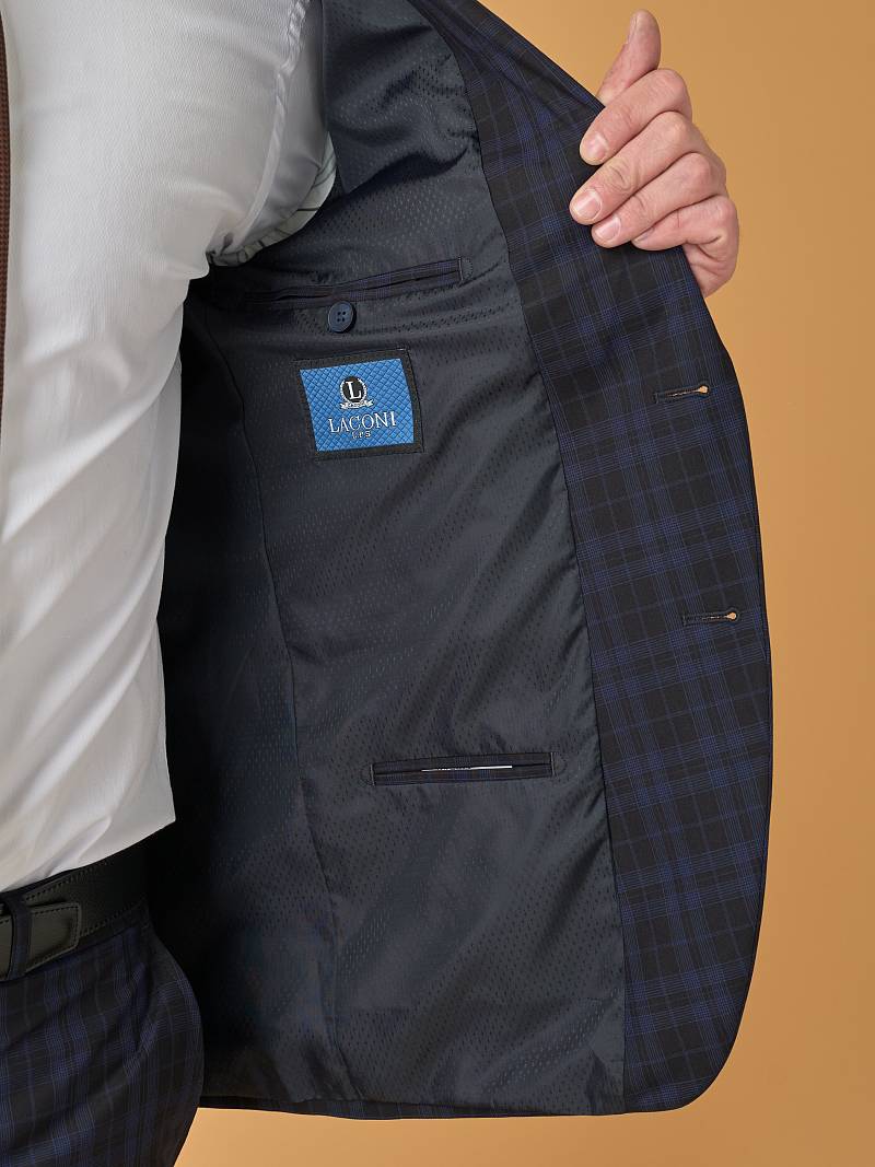 Slim fit (ПРИЛЕГАЮЩИЙ СИЛУЭТ), рекомендуется брать на размер больше. Костюм двойка марки LACONI.– это идеальный баланс между внешним видом и комфортом. Приталенная однобортная модель на две пуговицы сшита ткани с ненавязчивой клеткой. Пиджак с классической шириной лацкана и мягкой линией плеч дополнили сзади двумя шлицами, поэтому он садится точно по фигуре. Внутри пиджак обработан на подкладке с двумя внутренними карманами. Брюки прямого кроя со стрелками и заниженной посадкой, с боковыми наклонными карманами и одним задним карманом "в рамку". Верхний срез брюк обработан поясом с корсажной лентой и шлевками под ремень. Дизайнеры марки LACONI тщательно подходят к выбору материалов. Пуговицы подбираются и красятся индивидуально под каждую ткань, а прикладные материалы используют только от передовых производителейодят к выбору материалов. Пуговицы подбираются и красятся индивидуально под каждую ткань, а прикладные материалы используют только от передовых производителей. Костюм мужской, классический, нарядный, повседневный, молодежный, casual, для работы в офисе, модный, для мужа, сына, брата, на праздник.