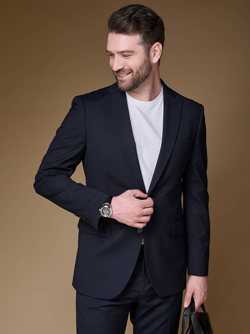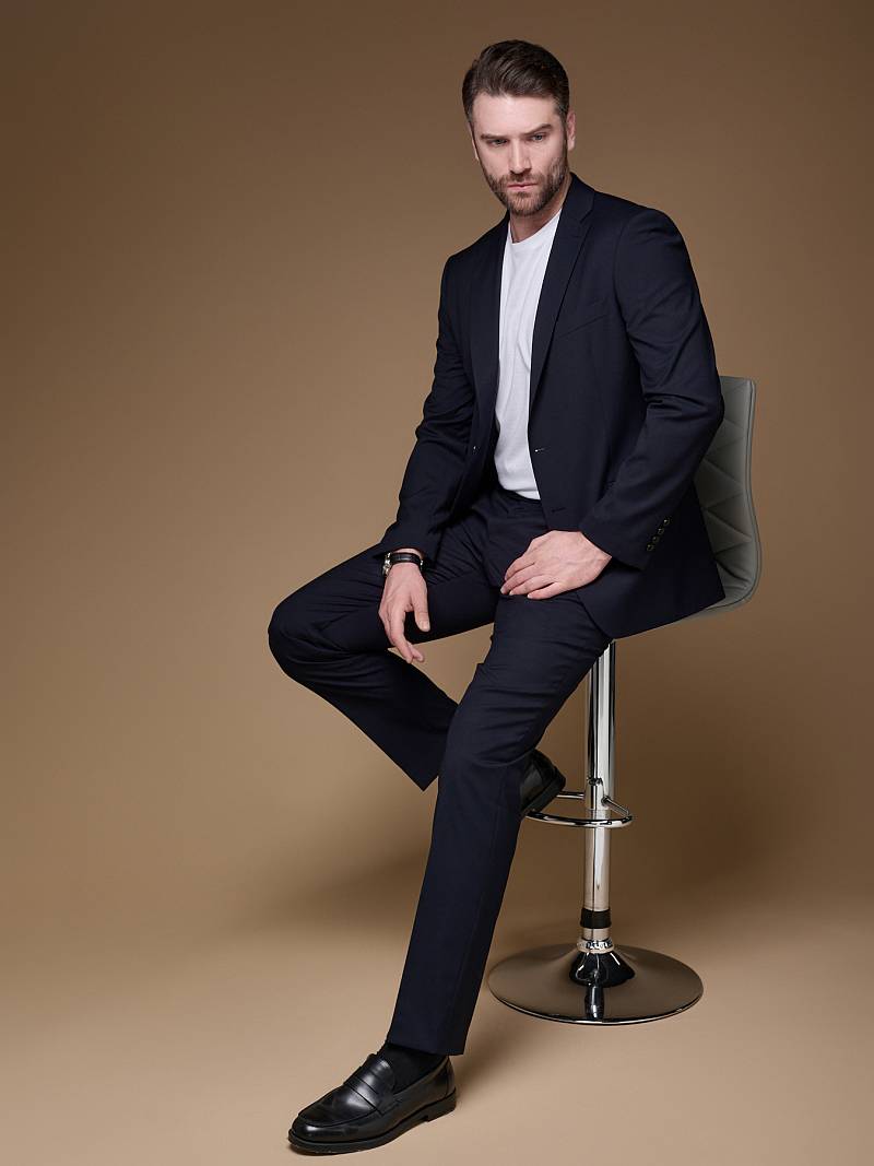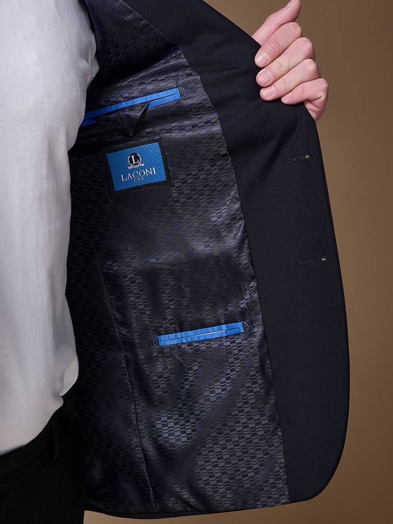 Slim fit (ПРИЛЕГАЮЩИЙ СИЛУЭТ), рекомендуется брать на размер больше. Для пошива темно-синего однотонного, классического костюма марки LACONI использовали ткань с содержанием волокон лайкры, которые не сковывают движение и обеспечивает дополнительный комфорт и удобство. Приталенный однобортный пиджак с широкими лацканами с мягкой линией плеч дополнили сзади двумя шлицами, поэтому он отлично садится точно по фигуре, таким образом подчеркивая ее достоинства и подходит для любого случая в жизни. Пиджак обработан яркой подкладкой с двумя внутренними карманами. Для придания образу торжественности подкладку нагрудного кармана можно использовать как платок. Брюки прямого кроя со стрелками и заниженной посадкой, с боковыми наклонными карманами и одним задними карманом "в рамку". Верхний срез брюк обработан поясом с корсажной лентой и шлевками под ремень. Дизайнеры марки LACONI тщательно подходят к выбору материалов. Пуговицы подбираются и красятся индивидуально под каждую ткань, а прикладные материалы используют только от передовых производителей. Костюм мужской, классический, нарядный, повседневный, молодежный, casual, для работы в офисе, модный, для мужа, сына, брата, на праздник.