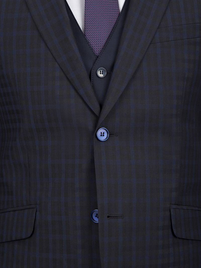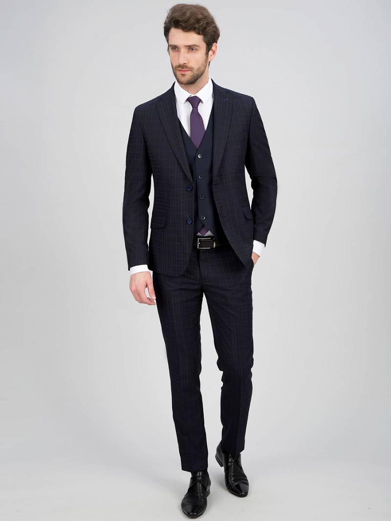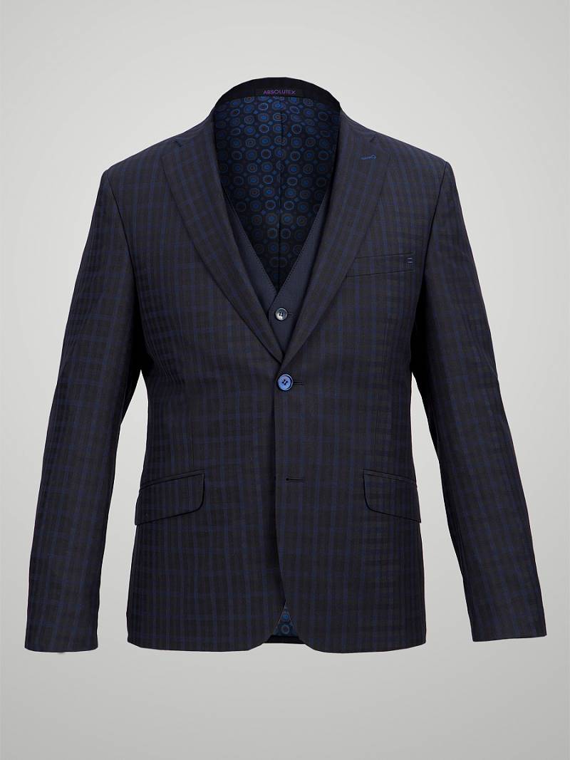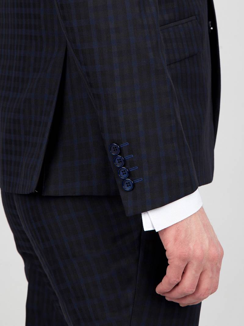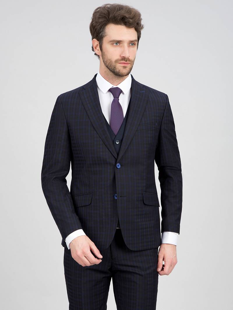 Slim fit, две пуговицы, две шлицы. Контрастные петли.