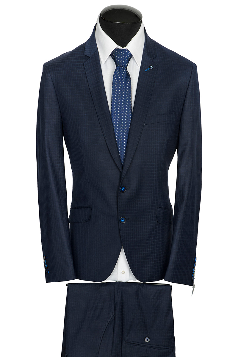 Костюм мужской Slim fit 2пуговицы, 2 шлицы. Вспушка по воротнику, лацканам, нагрудной листочке и клапанам.