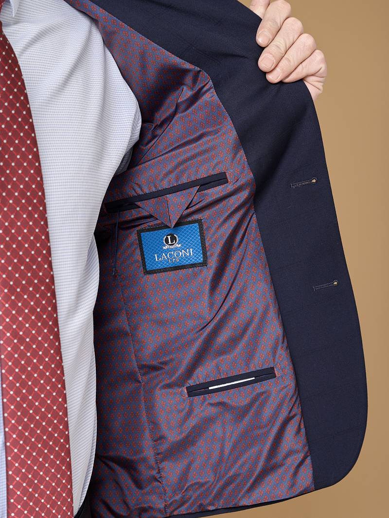 Ultra slim fit (ОЧЕНЬ ПРИЛЕГАЮЩИЙ СИЛУЭТ), рекомендуется брать на размер больше. Классический костюм двойка марки LACONI– это идеальное сочетание стиля и комфорта для мужчин, которые ценят качественный пошив и изысканный дизайн. Для пошива лаконичного, однотонного классического костюма использовали ткань с содержанием прочных волокон лайкры, которые не сковывают движение и обеспечивает дополнительный комфорт и удобство. Пиджак с классической шириной лацкана и мягкой линией плеч дополнили сзади двумя шлицами, модель садится точно по фигуре и отлично подходит для любого случая в жизни. Пиджак обработан на подкладке с двумя внутренними карманами. Для придания образу торжественности подкладку нагрудного кармана можно использовать как платок. Брюки прямого кроя со стрелками и заниженной посадкой, с боковыми наклонными карманами и одним задним карманом "в рамку". Верхний срез брюк обработан поясом с корсажной лентой и шлевками под ремень. Дизайнеры марки LACONI тщательно подходят к выбору материалов. Пуговицы подб