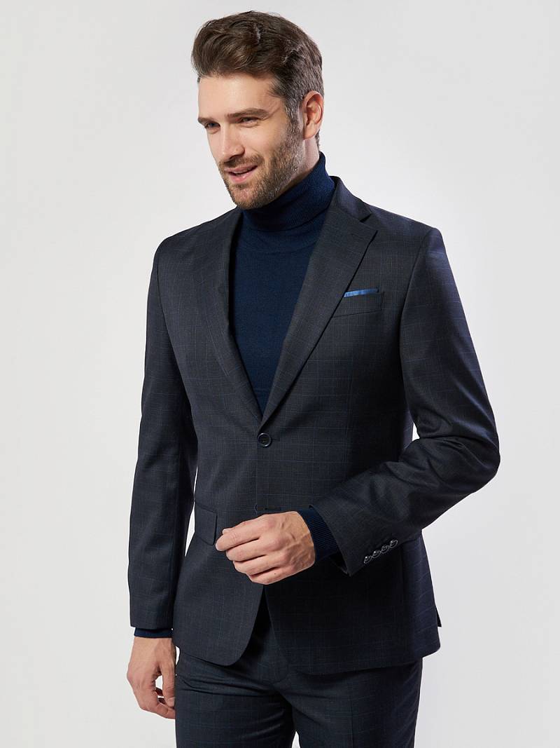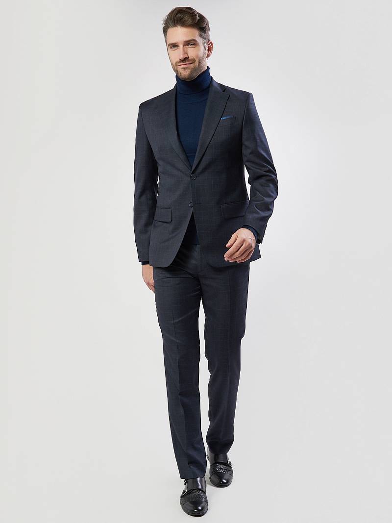 Классический костюм двойка Slim fit (ПРИЛЕГАЮЩИЙ СИЛУЭТ), рекомендуется брать на размер больше. Пиджак на две пуговицы, с боковыми и нагрудным карманами, по спинке две шлицы. Брюки без защипов с боковыми и двумя задними карманами.