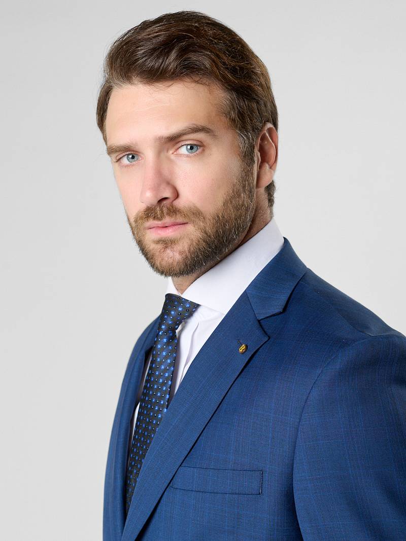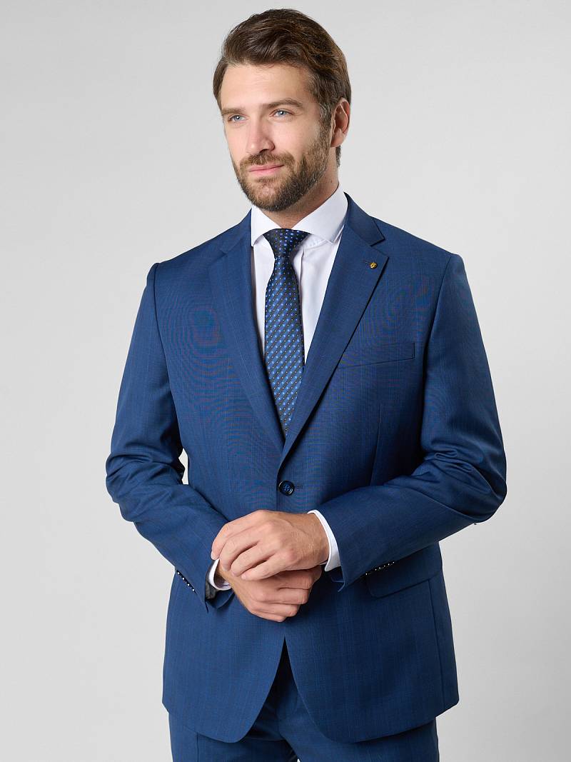 Классический костюм двойка Classic fit (ПОЛУПРИЛЕГАЮЩИЙ СИЛУЭТ). Пиджак на две пуговицы, с боковыми и нагрудным карманами, по спинке две шлицы. Брюки без защипов с боковыми и двумя задними карманами.