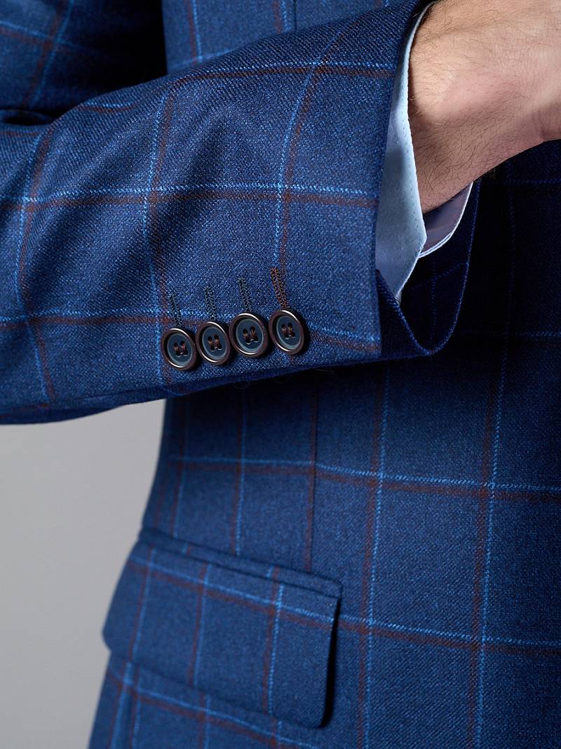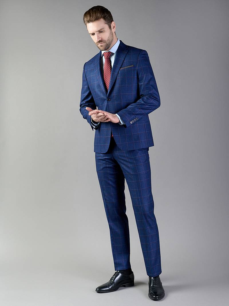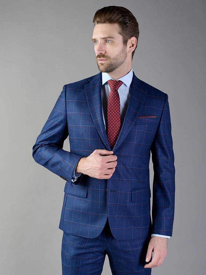Классический костюм двойка Classic fit. Пиджак на две пуговицы, с боковыми и нагрудным карманами, по спинке две шлицы. Брюки без защипов с боковыми и одним задним карманом.