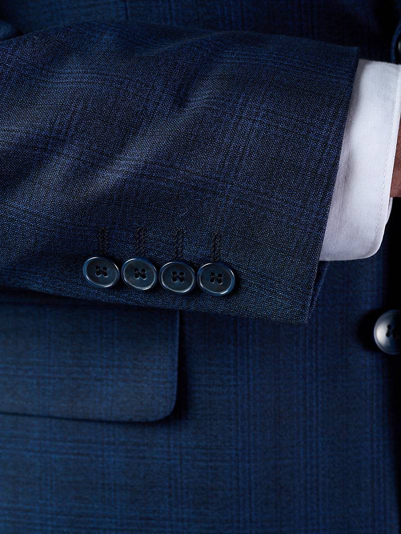 Классический костюм двойка Classic fit. Пиджак на две пуговицы, с боковыми и нагрудным карманами, по спинке две шлицы. Брюки без защипов с боковыми и двумя задними карманами.