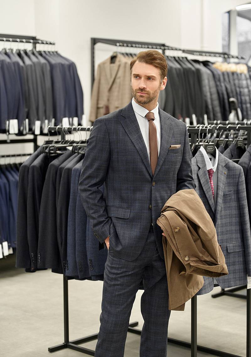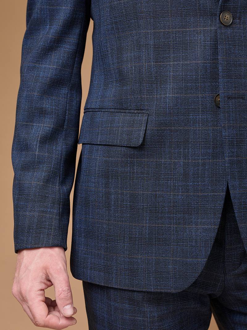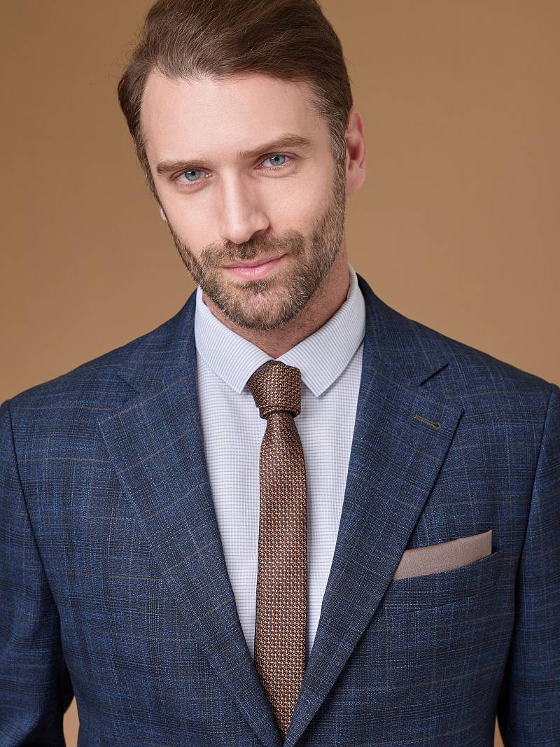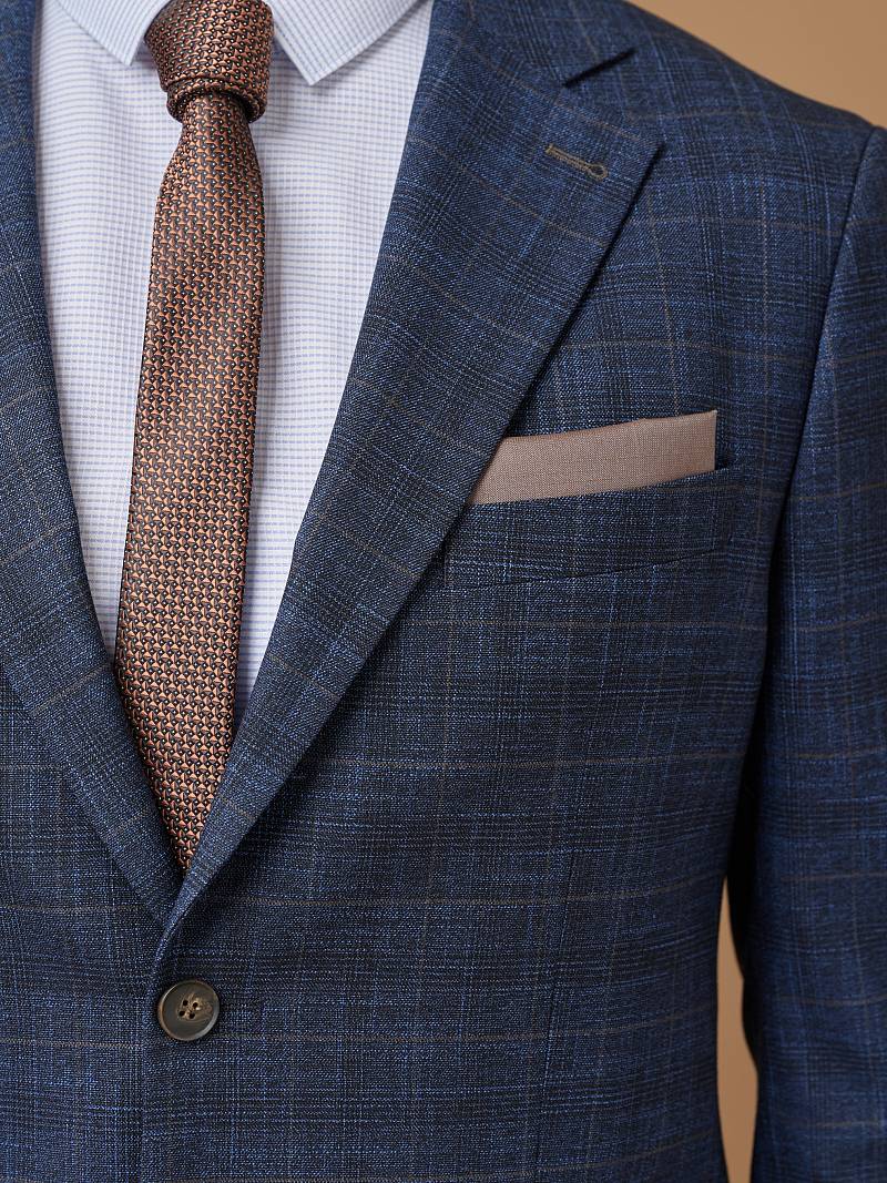 Classic fit (ПОЛУПРИЛЕГАЮЩИЙ СИЛУЭТ). Универсальный костюм двойка марки LACONI– это идеальный баланс между внешним видом и комфортом. Слегка приталенная однобортная модель на две пуговицы сшита из ткани спокойного синего цвета и ненавязчивой клетки. Пиджак с широкими лацканами и мягкой линией плеч дополнили сзади двумя шлицами, поэтому он садится точно по фигуре. Внутри пиджак обработан на подкладке с двумя внутренними карманами. Для придания образу торжественности подкладку нагрудного кармана можно использовать как платок. Брюки прямого кроя со стрелками и классической посадкой, с боковыми наклонными карманами и одним задним карманом "в рамку". Верхний срез брюк обработан поясом с корсажной лентой и шлевками под ремень. Дизайнеры марки LACONI тщательно подходят к выбору материалов. Пуговицы подбираются и красятся индивидуально под каждую ткань, а прикладные материалы используют только от передовых производителей.
