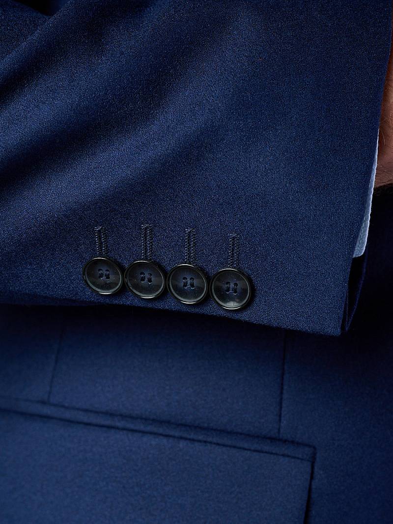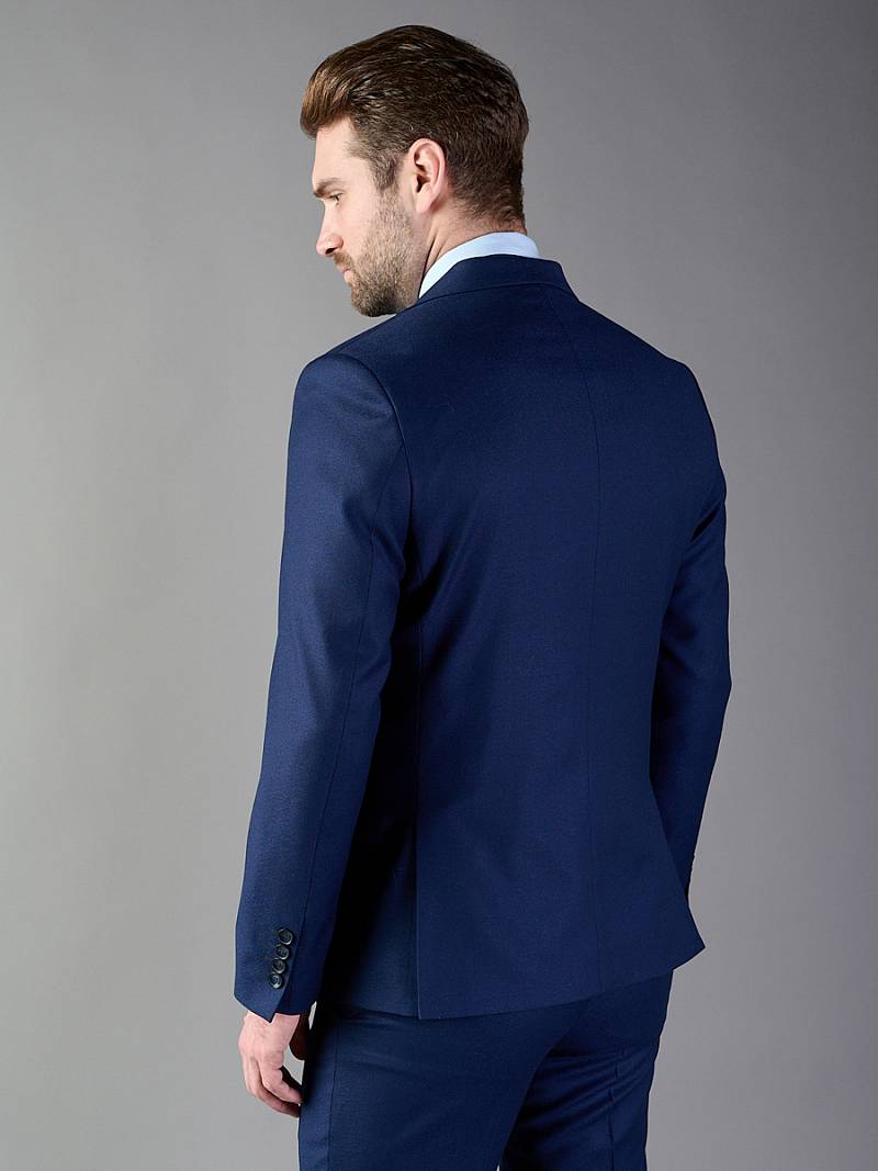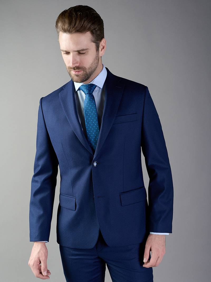 Классический костюм двойка Classic fit. Пиджак на две пуговицы, с боковыми и нагрудным карманами, по спинке две шлицы. Брюки без защипов с боковыми и одним задним карманом.