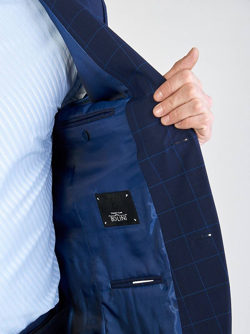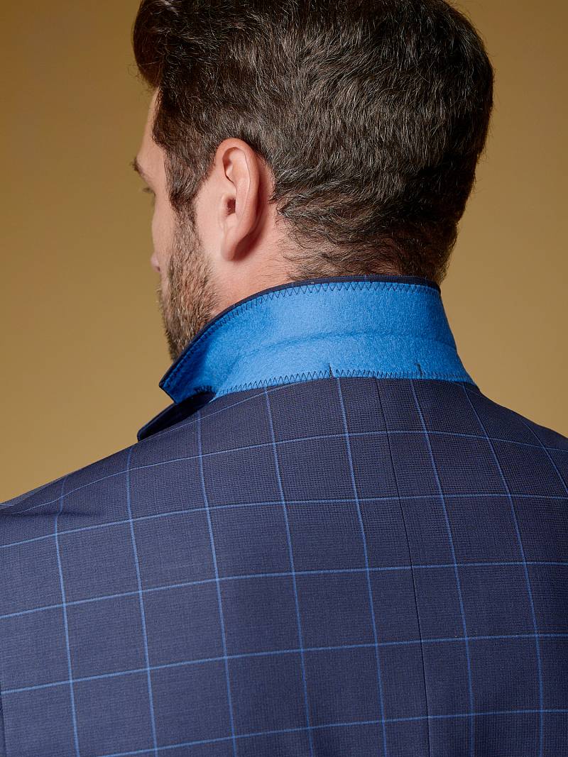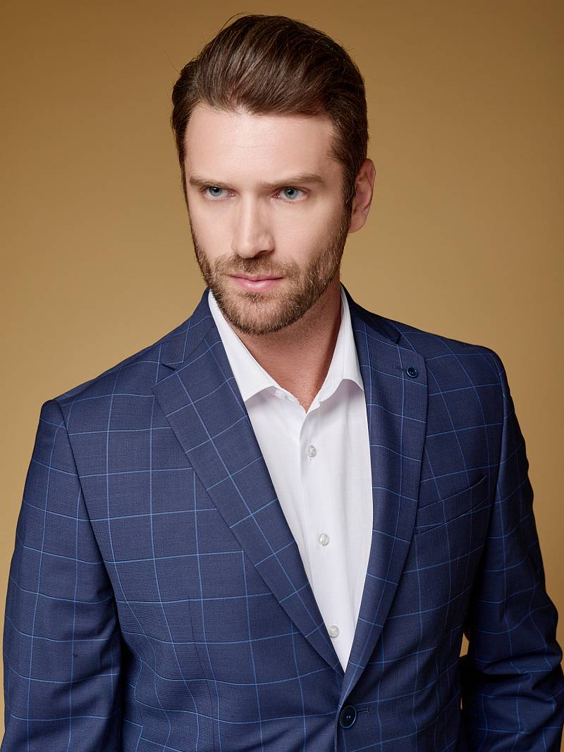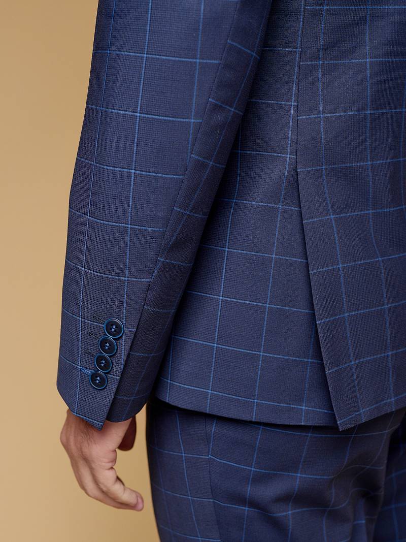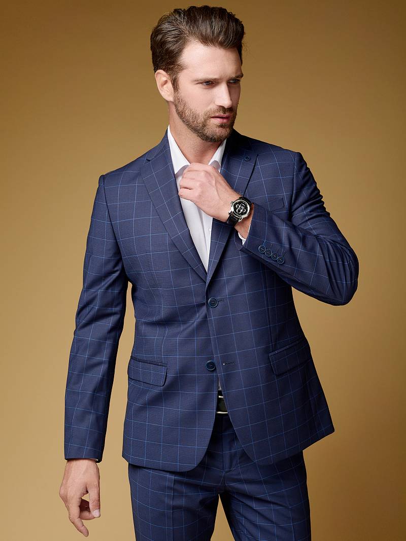 Классический костюм двойка Classic fit. Пиджак на две пуговицы, с боковыми и нагрудным карманами, по спинке две шлицы. Брюки без защипов с боковыми и одним задним карманом.