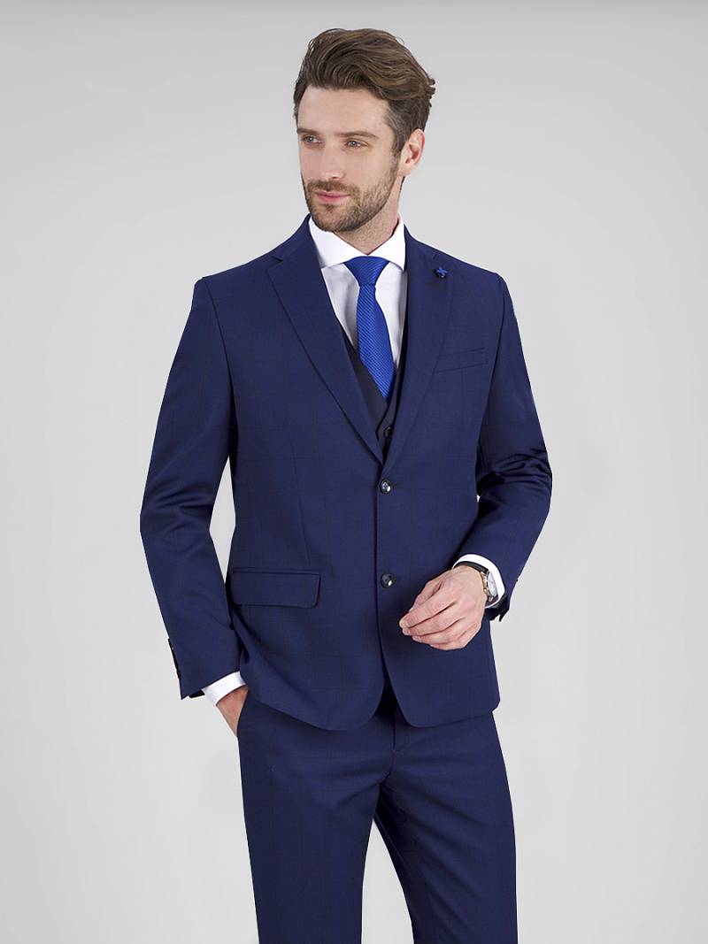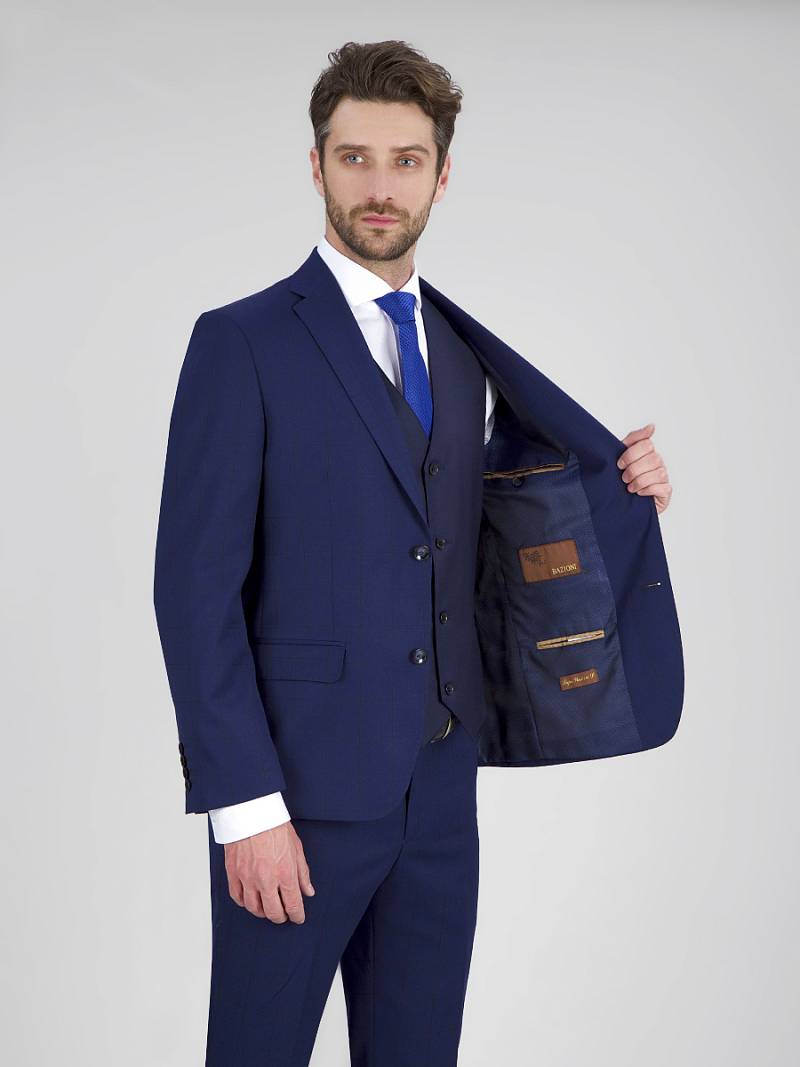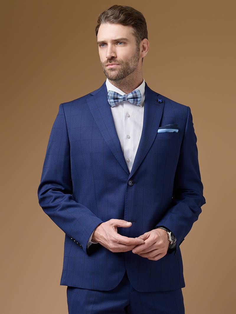 Классический костюм двойка Classic fit. Пиджак на две пуговицы, с боковыми и нагрудным карманами, по спинке две шлицы. Вспушка по воротнику, лацканам, краю борта, клапанам и нагрудной листочке Брюки без защипов с боковыми и одним задним карманом.