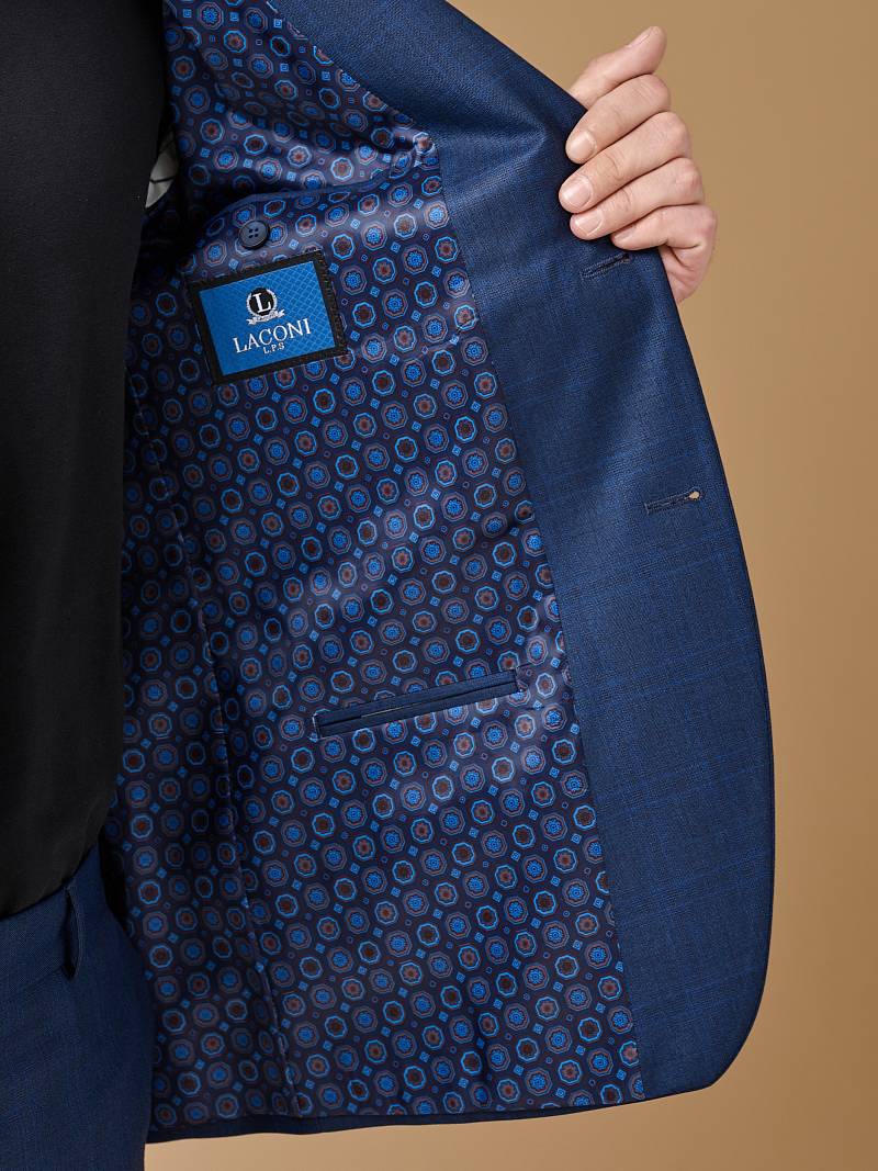 Classic fit (ПОЛУПРИЛЕГАЮЩИЙ СИЛУЭТ). Универсальный костюм двойка марки LACONI–это идеальное сочетание стиля и комфорта для мужчин, которые ценят качественный пошив. Слегка приталенная однобортная модель на две пуговицы сшита из плотной, тонкой ткани с ненавязчивой клеткой. Пиджак с широкими лацканами и мягкой линией плеч дополнили сзади двумя шлицами, поэтому он садится точно по фигуре. Для придания образу торжественности подкладку нагрудного кармана можно использовать как платок. Внутри пиджак обработан на подкладке с двумя внутренними карманами. Брюки прямого кроя со стрелками и классической посадкой, с боковыми наклонными карманами и одним задним карманом "в рамку". Верхний срез брюк обработан поясом с корсажной лентой и шлевками под ремень. Дизайнеры марки LACONI тщательно подходят к выбору материалов. Пуговицы подбираются и красятся индивидуально под каждую ткань, а прикладные материалы используют только от передовых производителей.