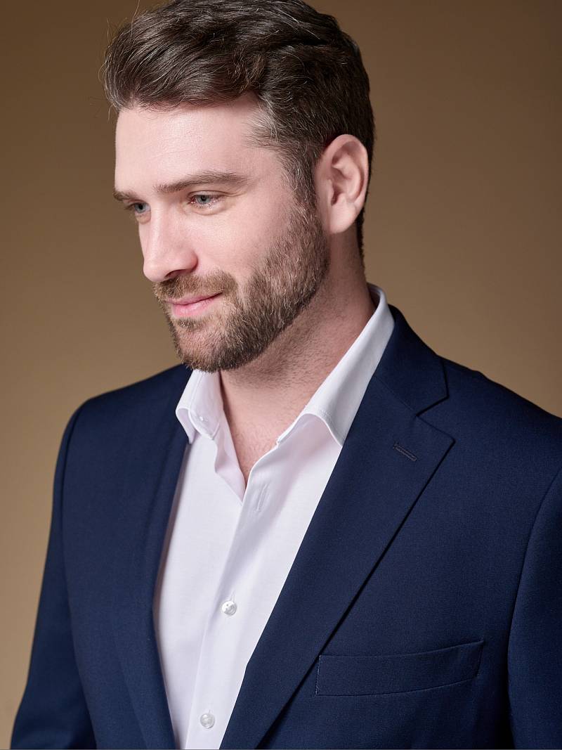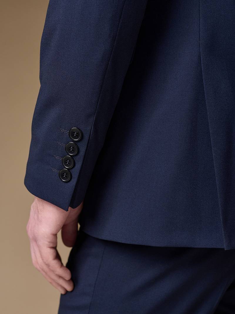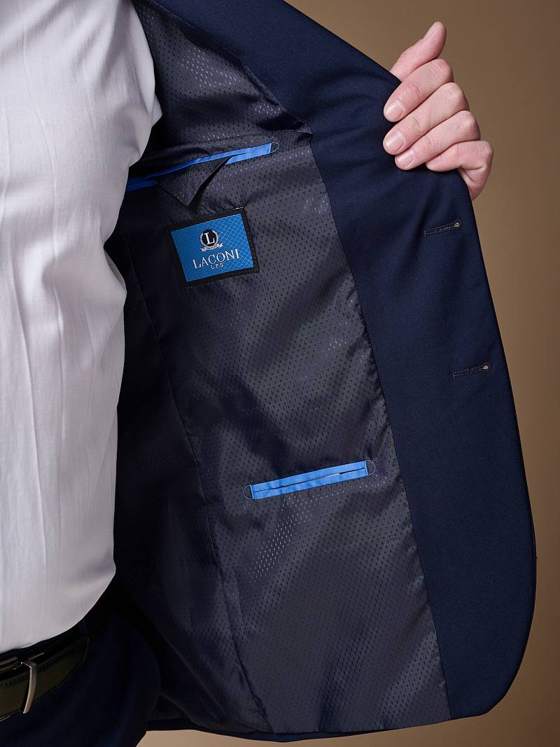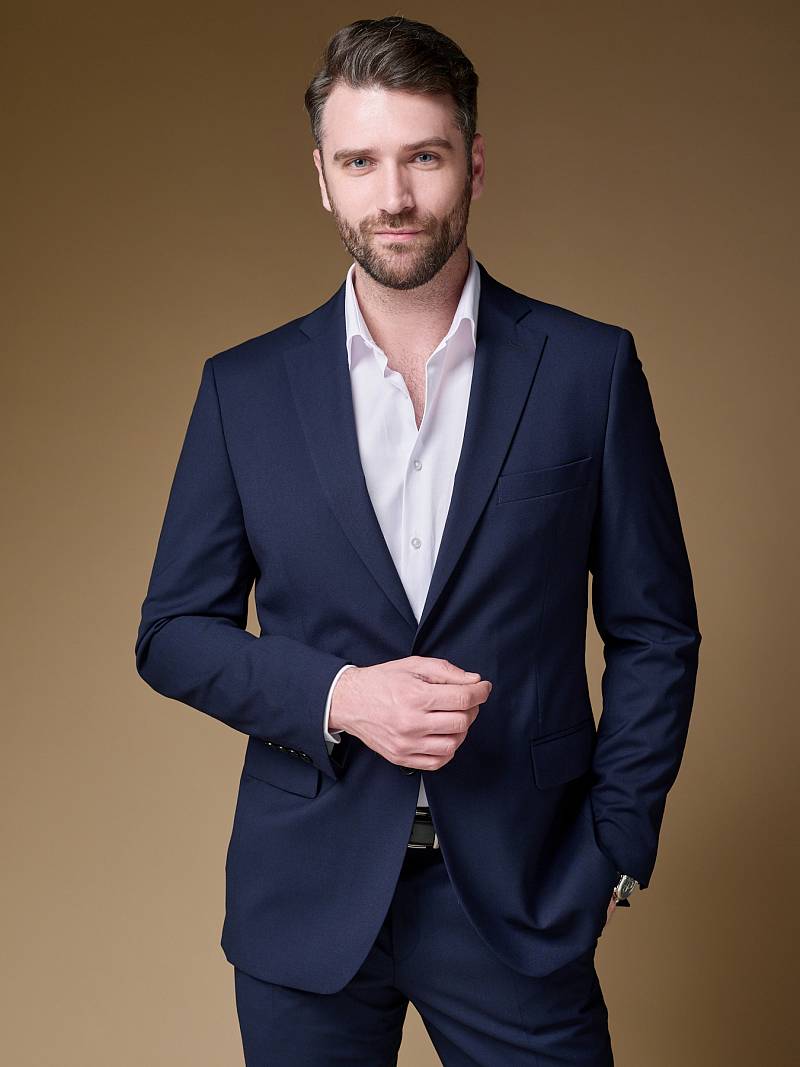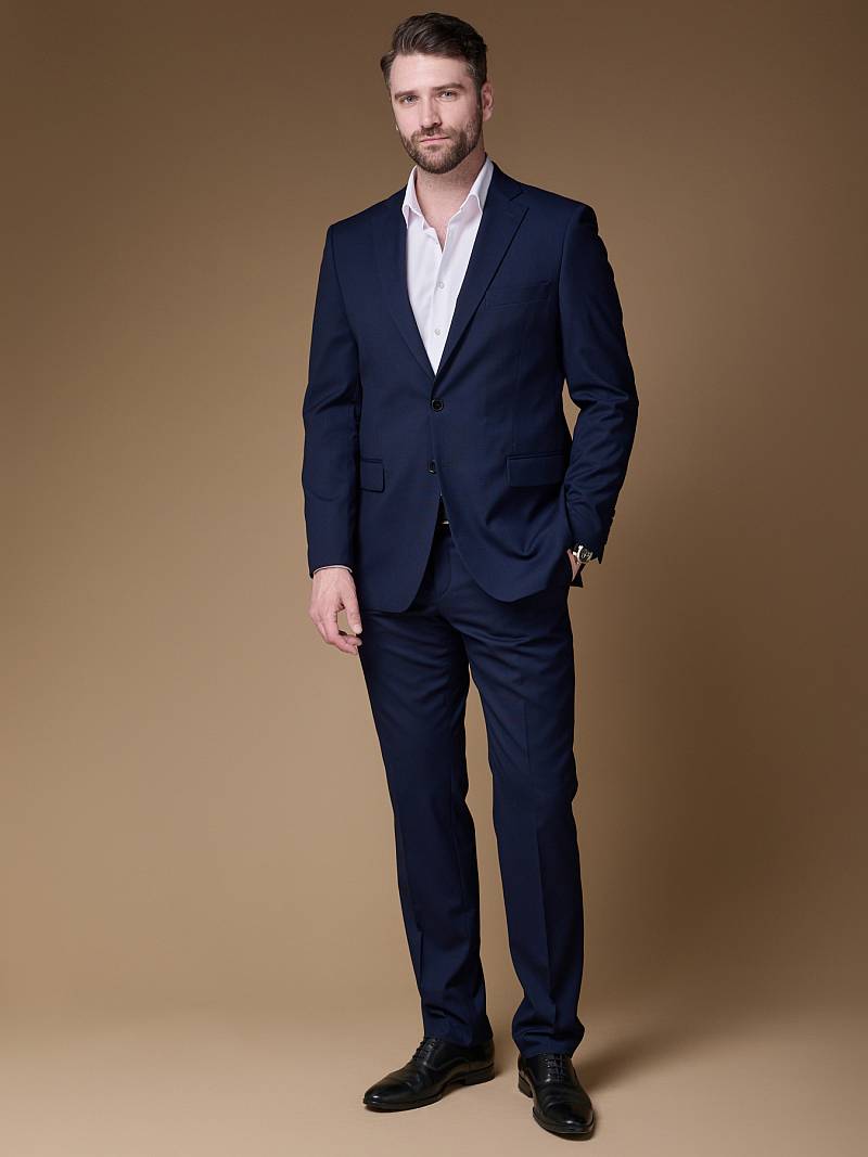 Классический костюм двойка Slim fit (ПРИЛЕГАЮЩИЙ СИЛУЭТ), рекомендуется брать на размер больше.Пиджак однобортный на две пуговицы, с двумя боковыми карманами с клапанами и нагрудной листочкой. Рукава втачные, двухшовные со шлицей и четырьмя декоративными пуговицами. По спинке расположены две шлицы. Пиджак на подкладке, с двумя внутренними карманами. Брюки без защипов, с боковыми наклонными карманами и двумя задними карманами «в рамку». Передние половинки на подкладке. Верхний срез брюк обработан поясом с корсажной лентой и шлевками под ремень. Застежка обработана на тесьму-молнию, с петлей-пуговицей на поясе и усилен металлическим крючком.